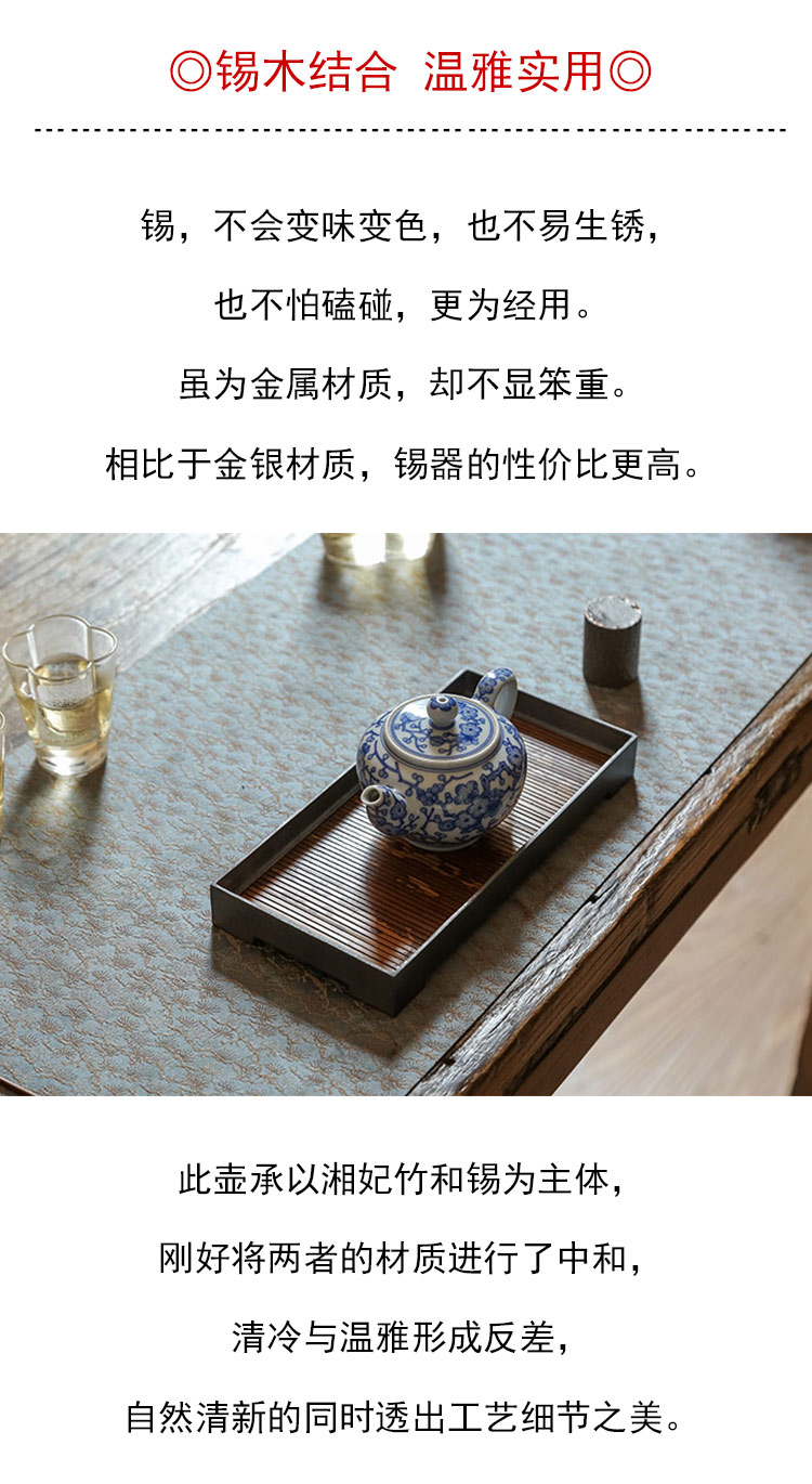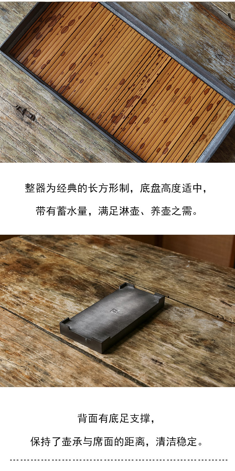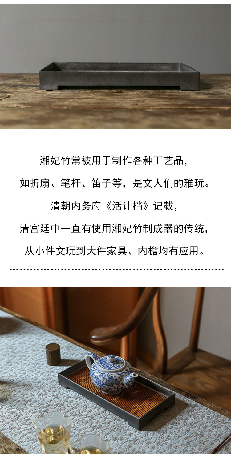 茶香记 古锡湘妃竹长方形壶承湘妃竹+锡茶盘自然灵动茶道零配