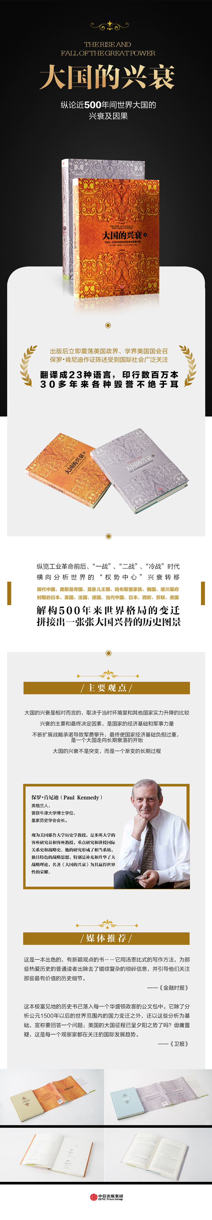 这本极富见地的历史书已落入每一个华盛顿政客的公文包中。它除了分析公元1500年以后的世界范围内的国力变迁之外,还以这些分析为基础,宣称要回答一个问题:美国的大国征程已呈夕阳之势了吗?毋庸置疑,这是每一个观察家都在关注的国际发展趋势。——卫报