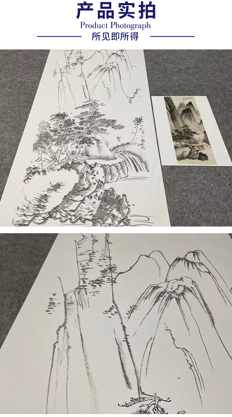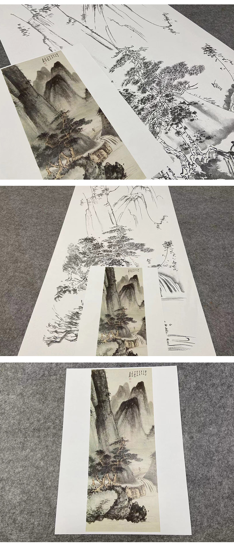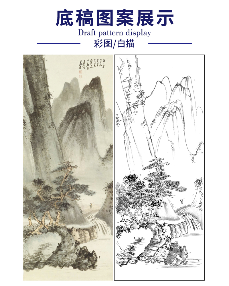 张大千竖幅工笔山水白描底稿临摹勾线高清打印稿QD08