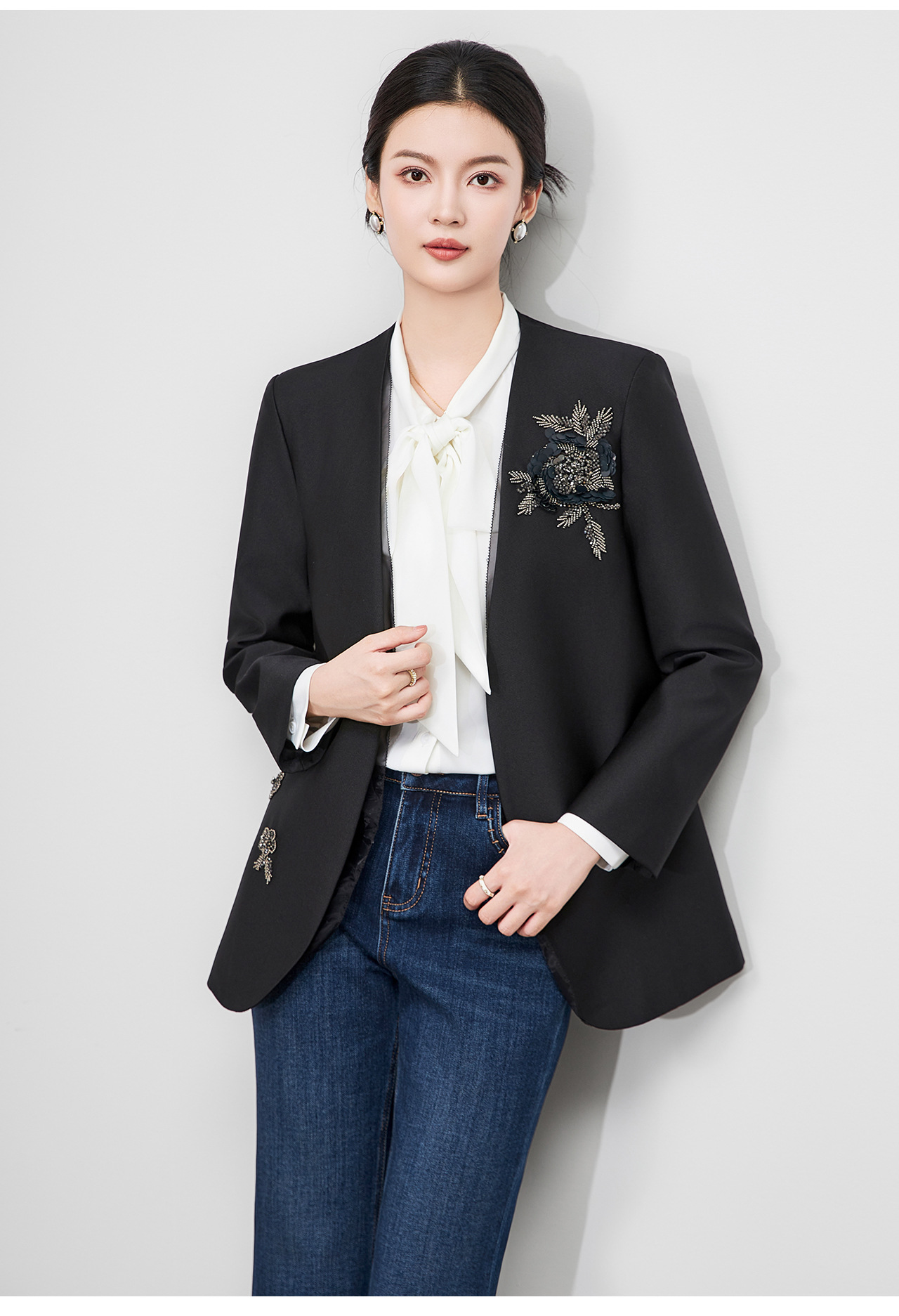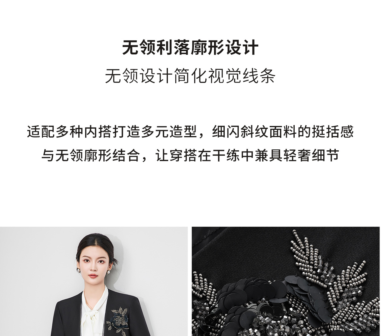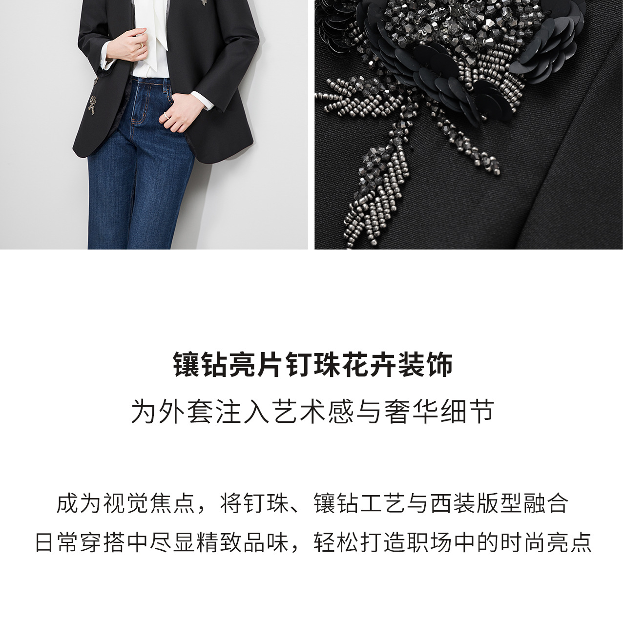 「高货wl」全新升级【铂金会员404/天猫539/差价135】(64843)洛诗琳重工手工钉珠立体花朵外套2025秋冬光泽感西装外套