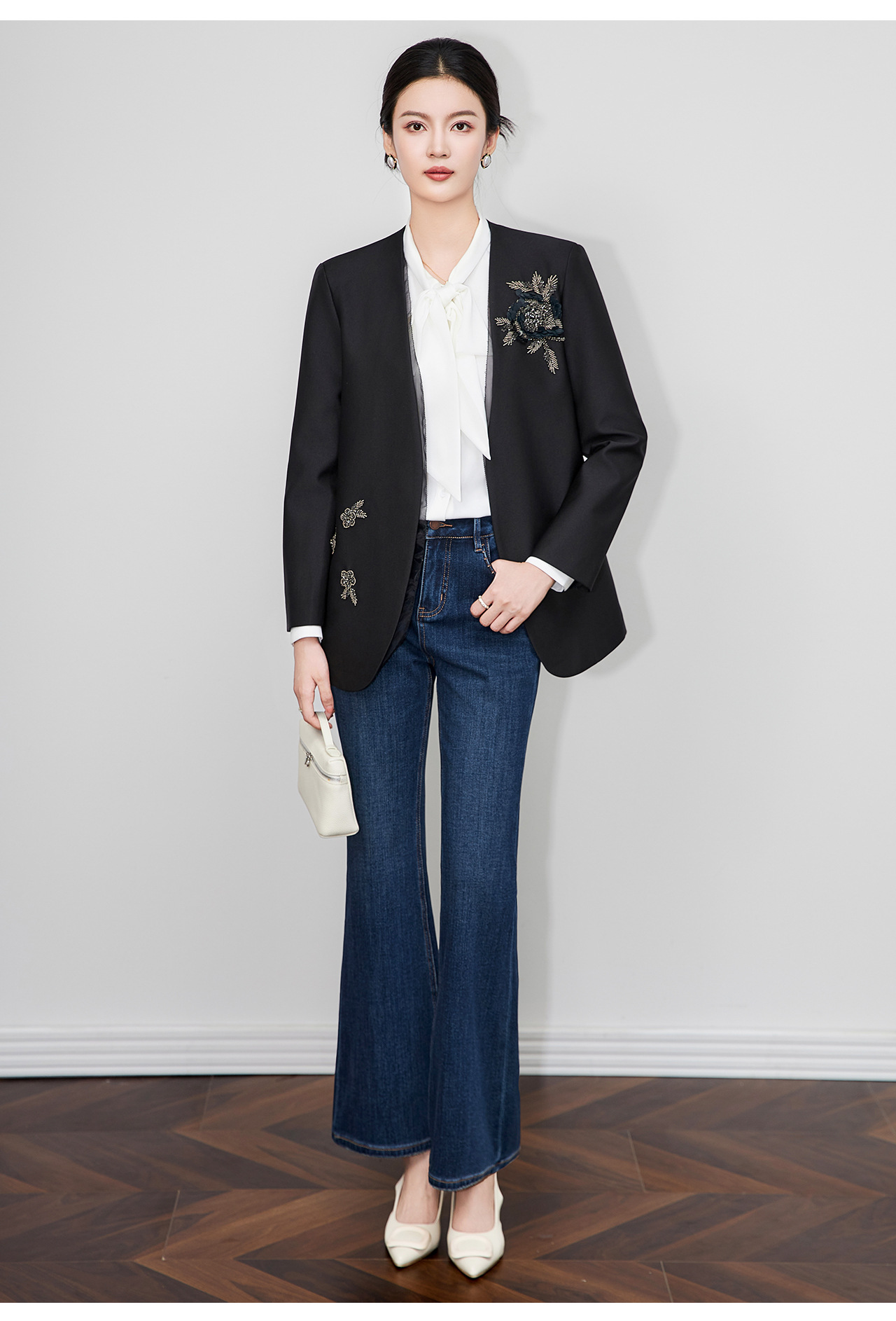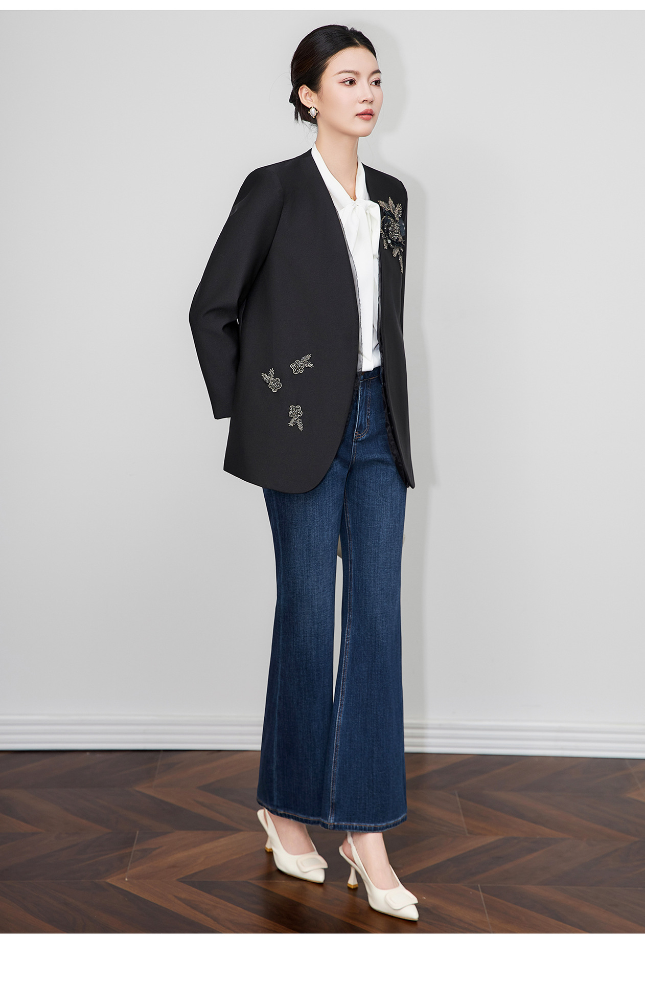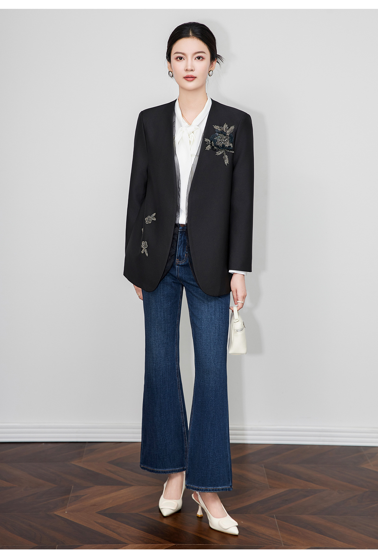 「高货wl」全新升级【铂金会员404/天猫539/差价135】(64843)洛诗琳重工手工钉珠立体花朵外套2025秋冬光泽感西装外套