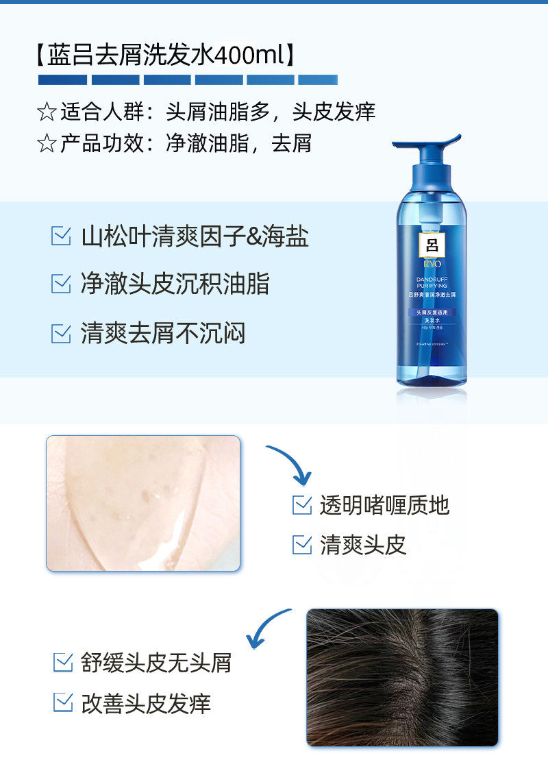 吕(Ryo) 洗发水400ml 新包装 控油洁净柔顺修护净爽去屑无硅油