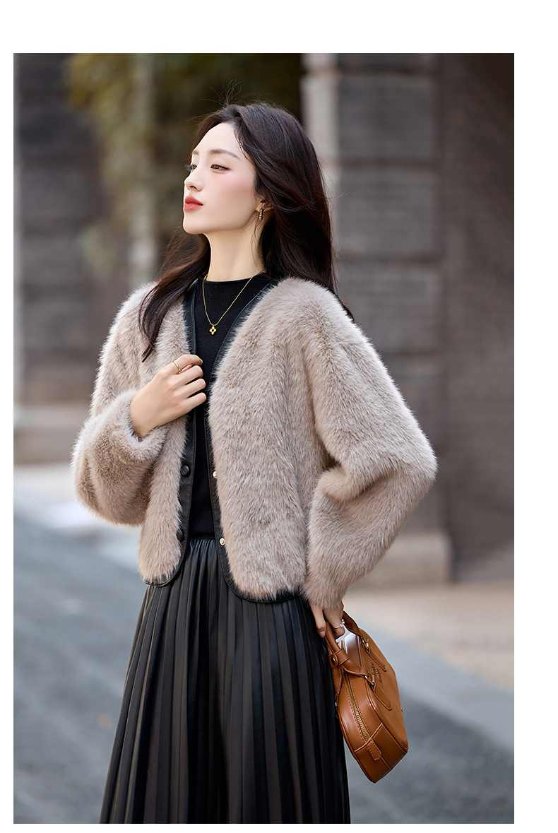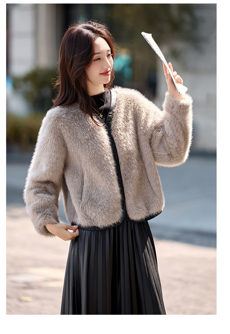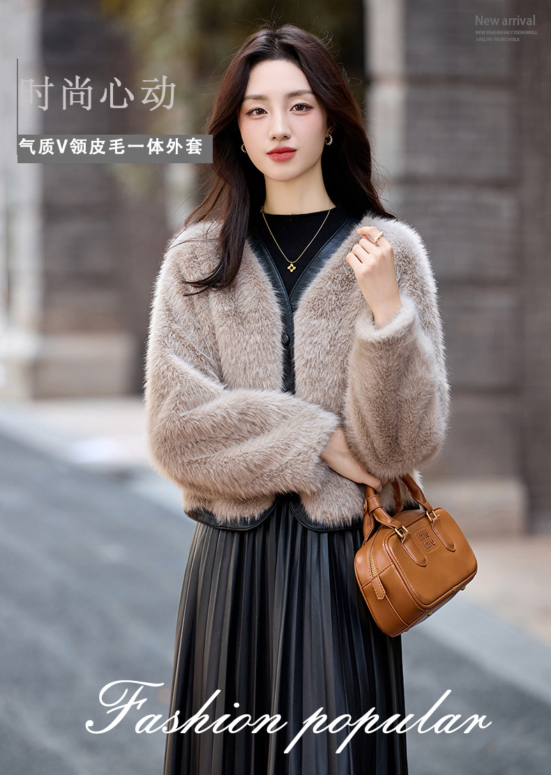 气质好看显瘦减龄时尚休闲范,加绒加厚皮毛一体外套HR-5520