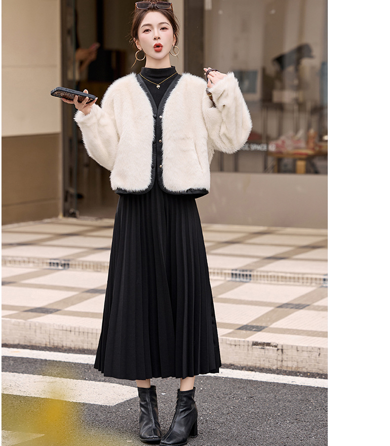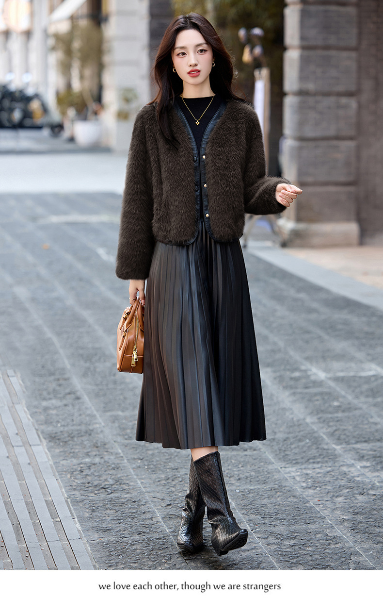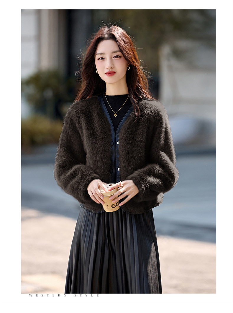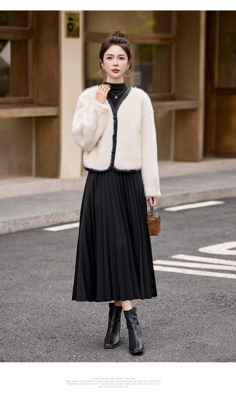 气质好看显瘦减龄时尚休闲范,加绒加厚皮毛一体外套HR-5520