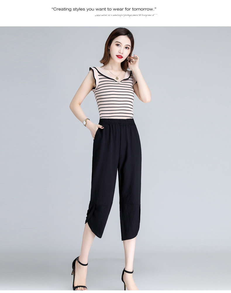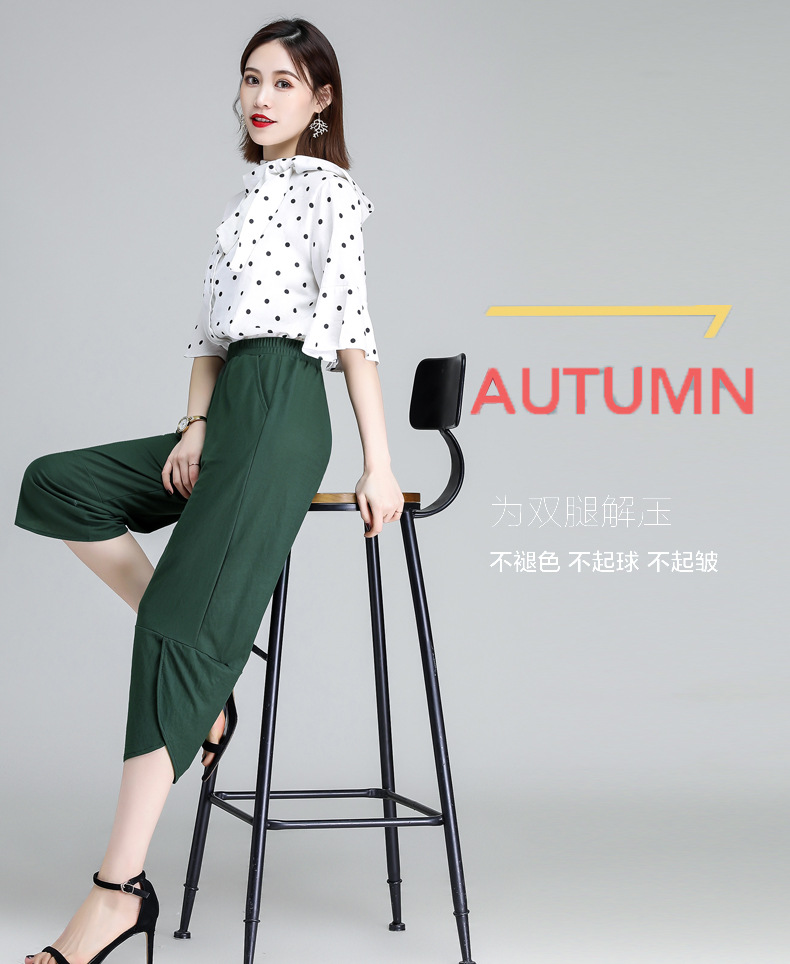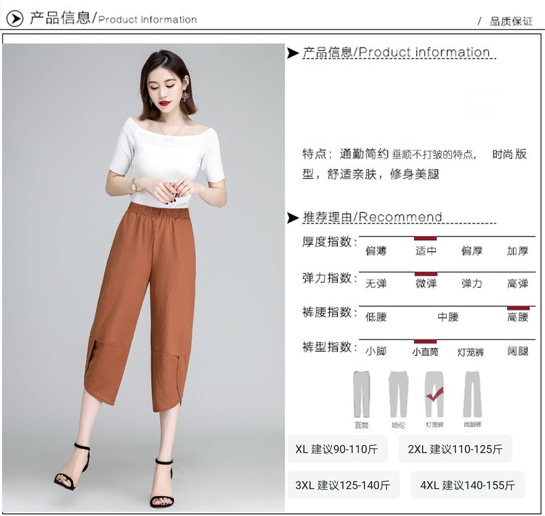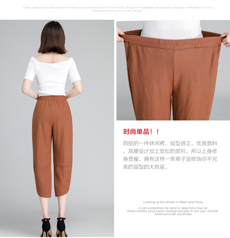 MQ-1591-4夏季大码薄款松紧腰七分休闲宽松鱼嘴裤YY