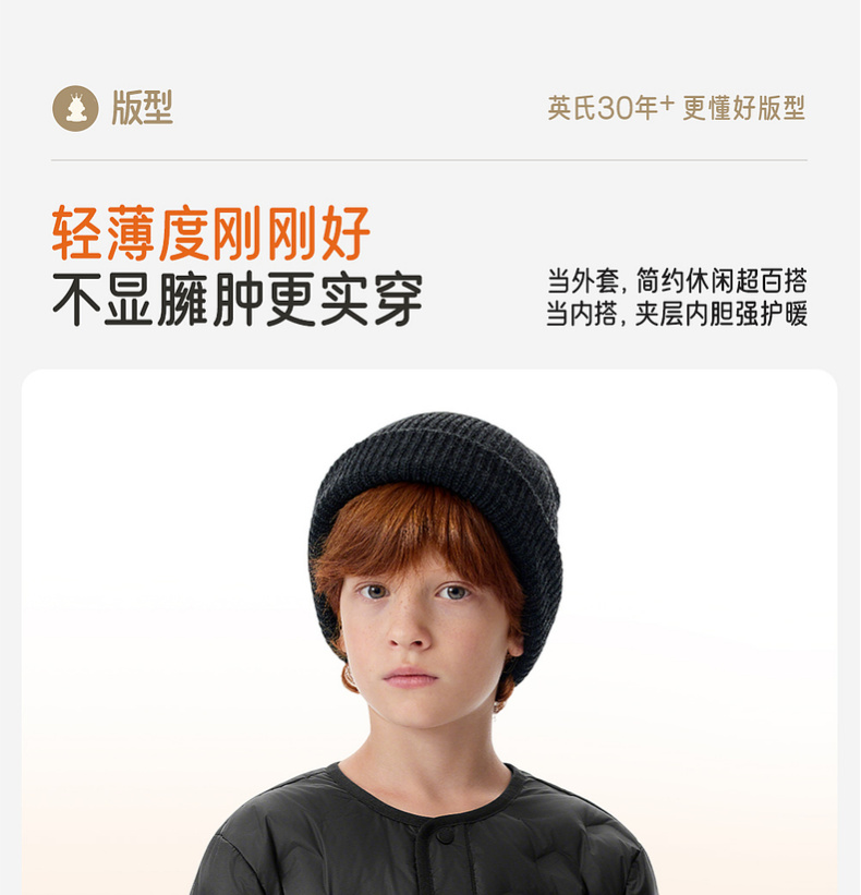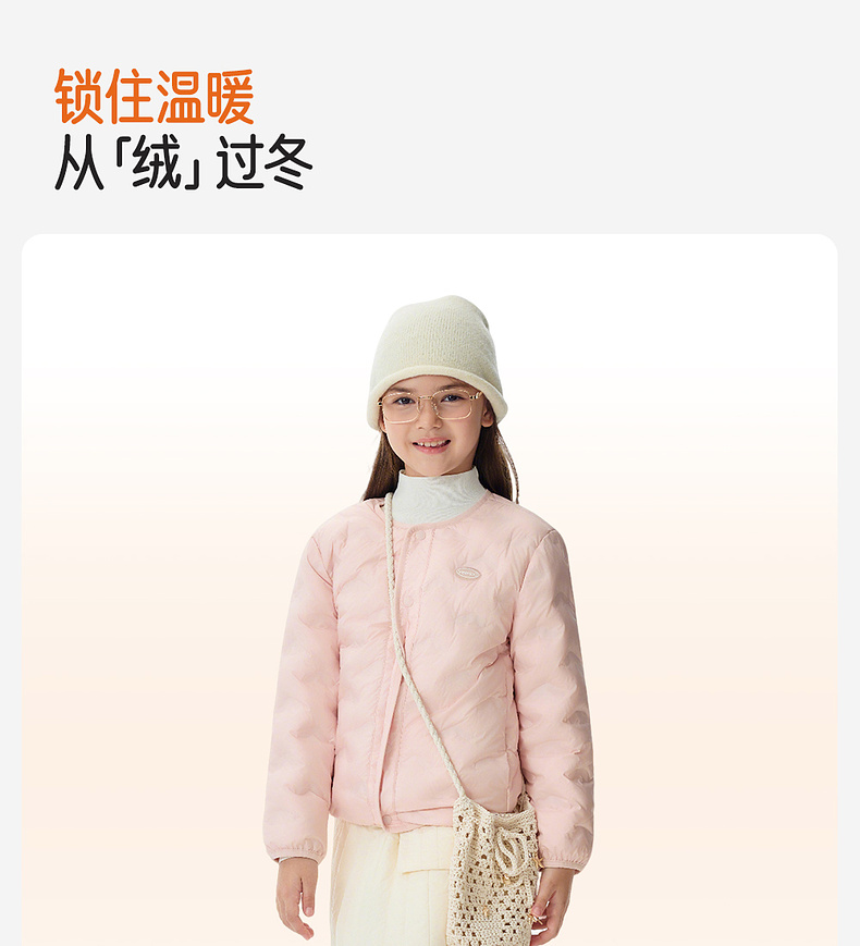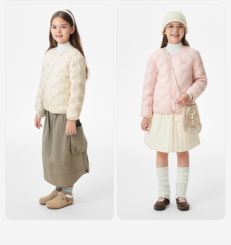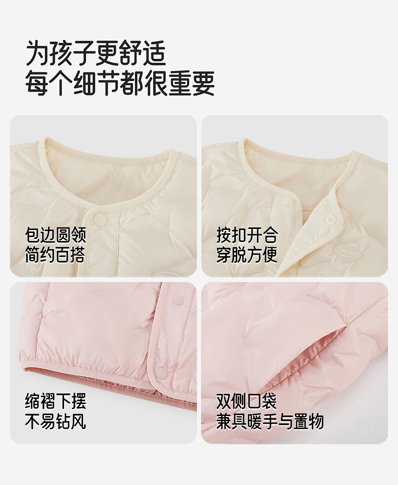 英氏儿童羽绒外套秋冬女童保暖白鸭绒薄款叠穿男童纯色休闲百搭