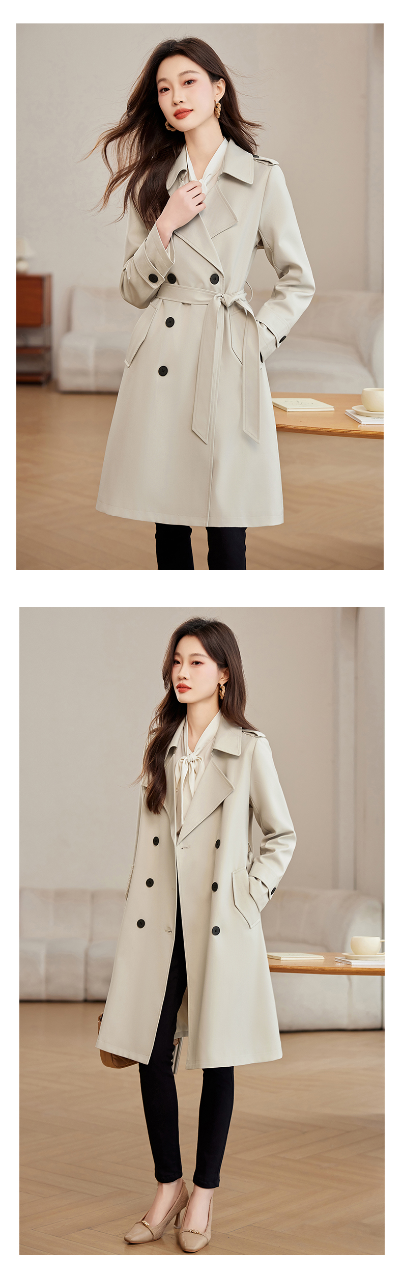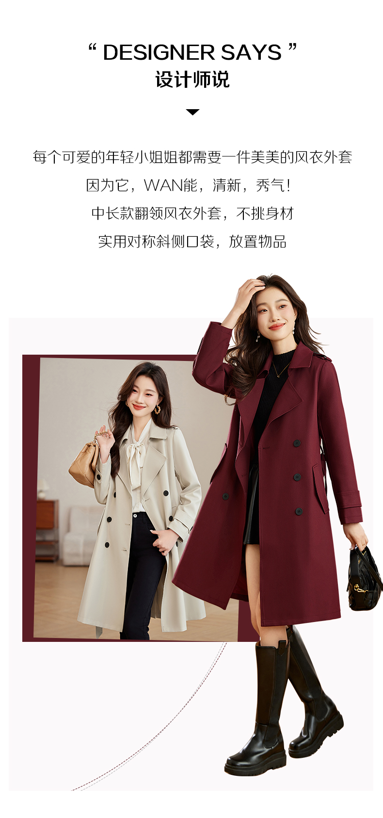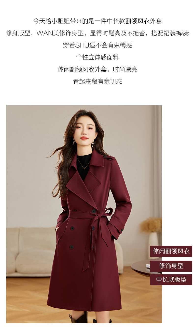 气质翻领长款系带,时尚外套女式风衣HR-ZYF2510