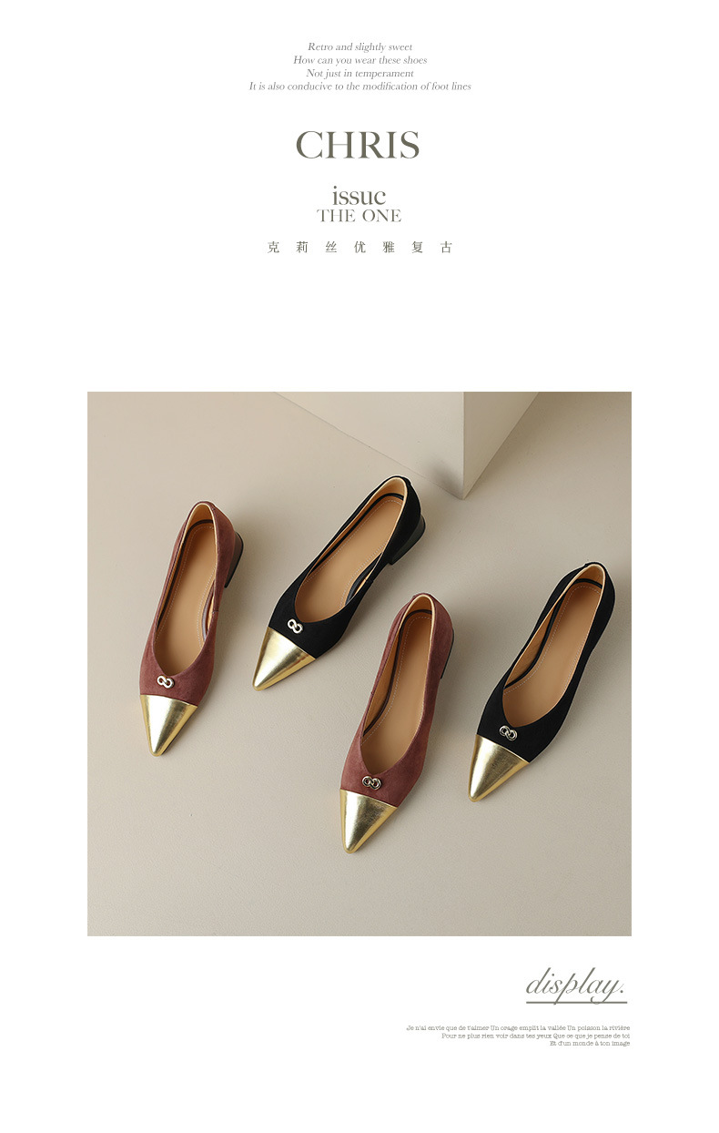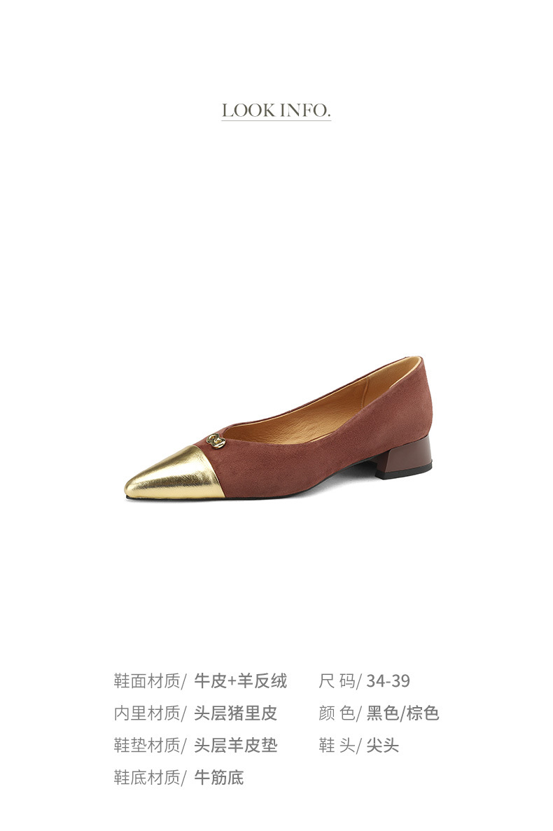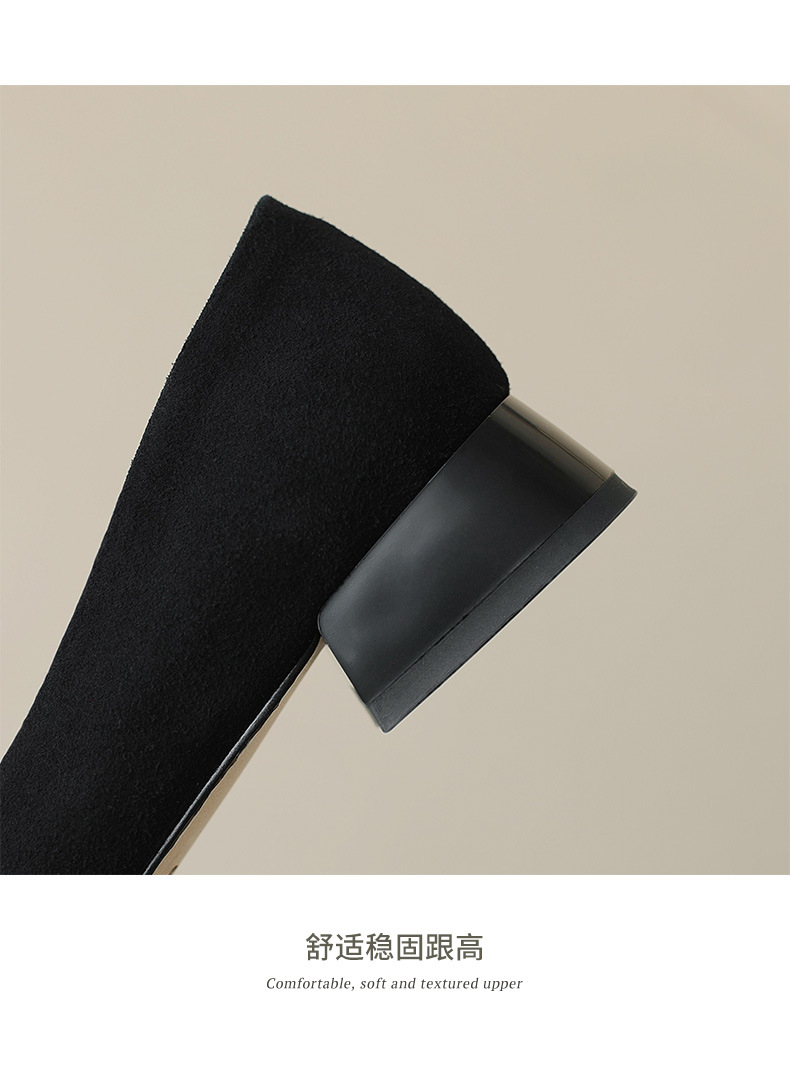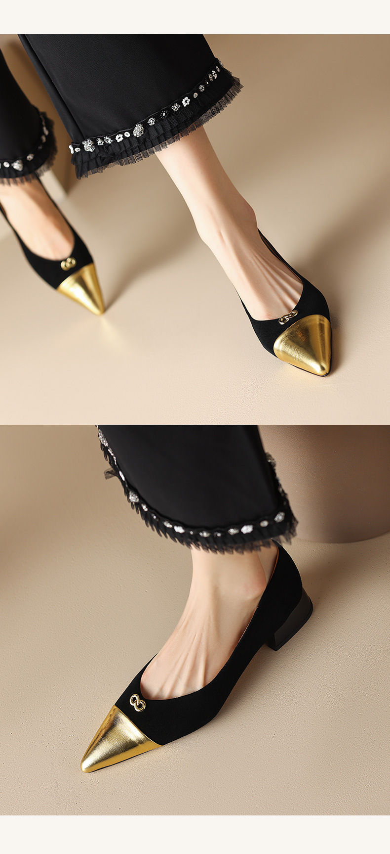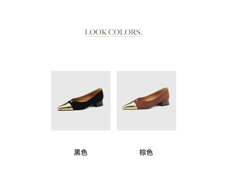 法式拼色低跟鞋,名媛风尖头粗跟浅口黑色单鞋HBP-5062