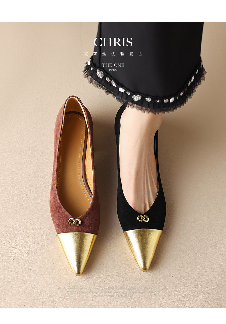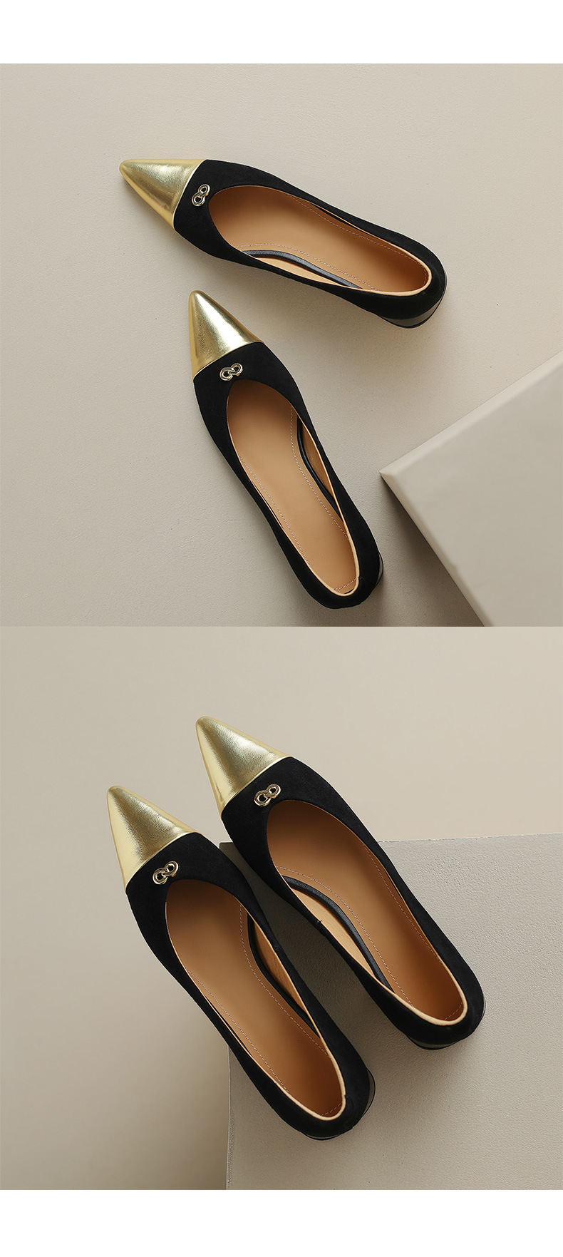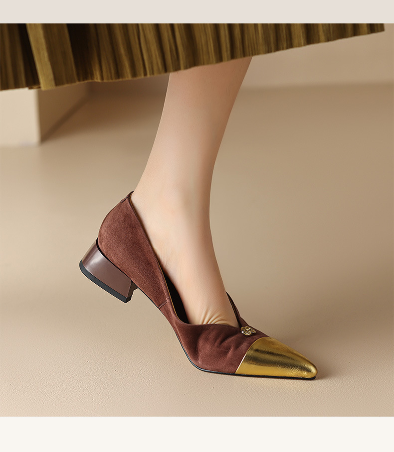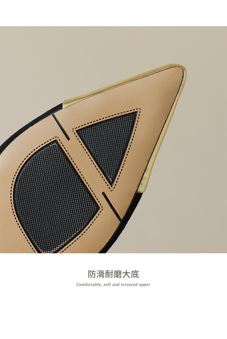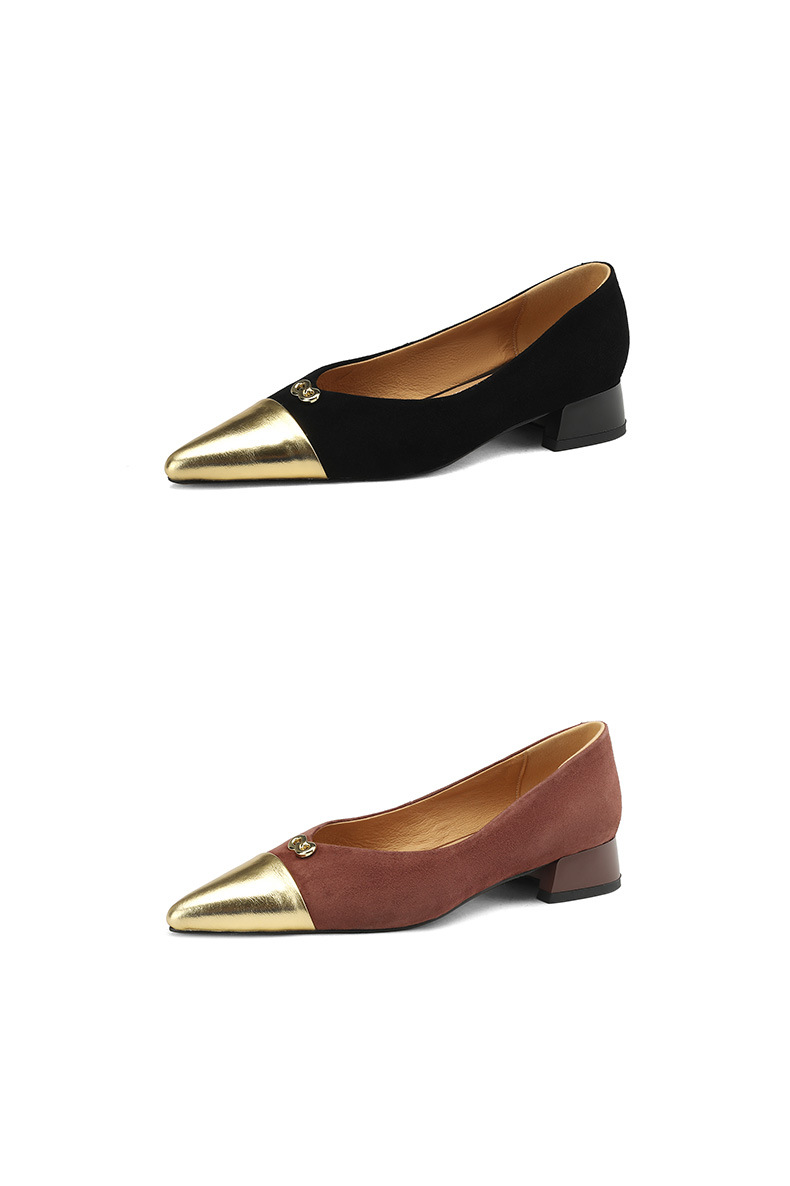法式拼色低跟鞋,名媛风尖头粗跟浅口黑色单鞋HBP-5062