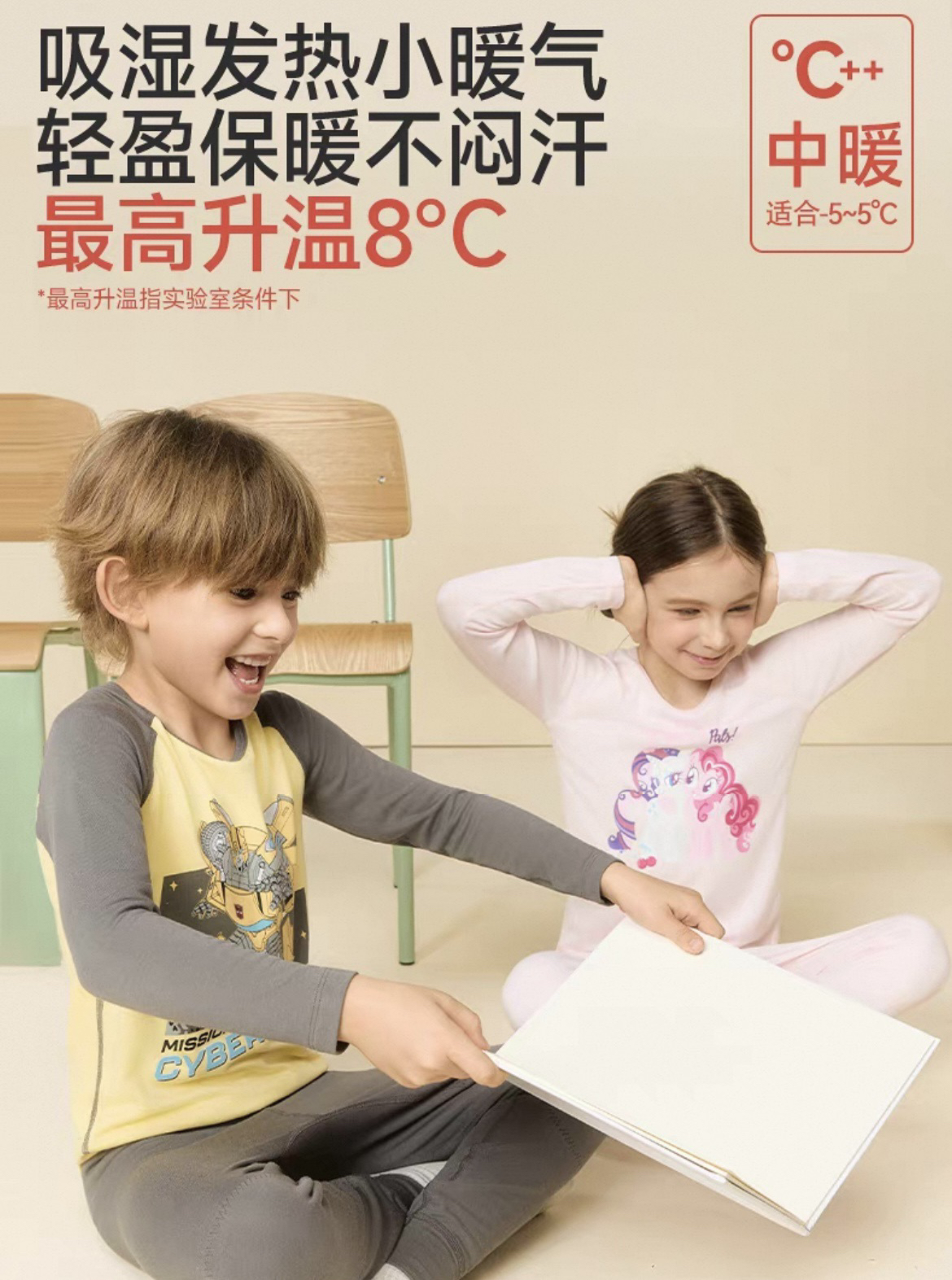 穿上就开始发热,身体立马能感觉到暖和,热量慢慢发散,全身均匀发热,保暖效果好的不得了,还能时刻让孩子保持体感干爽,穿着舒服,有一种被云朵包围的柔软感,舒服极了!