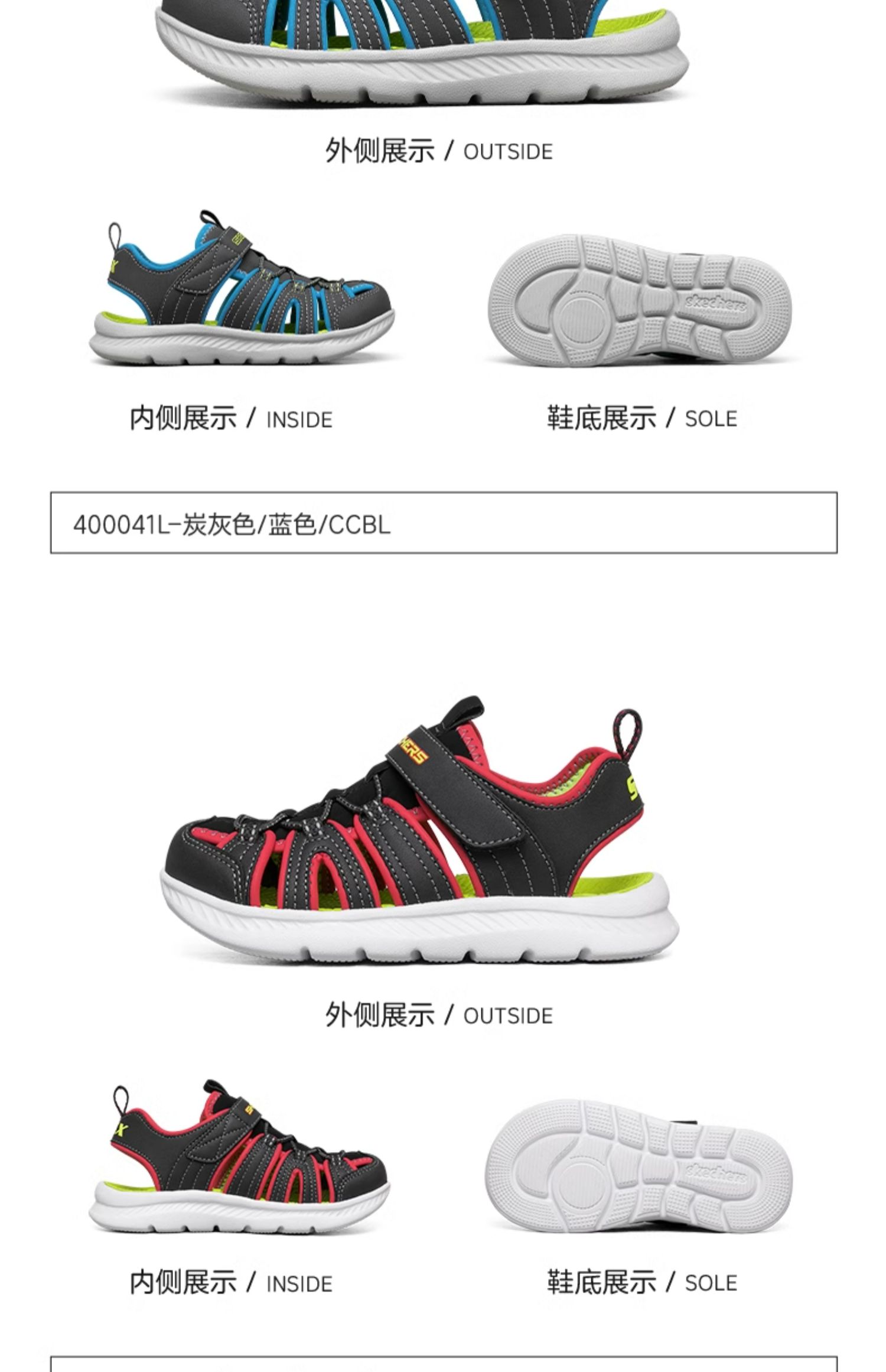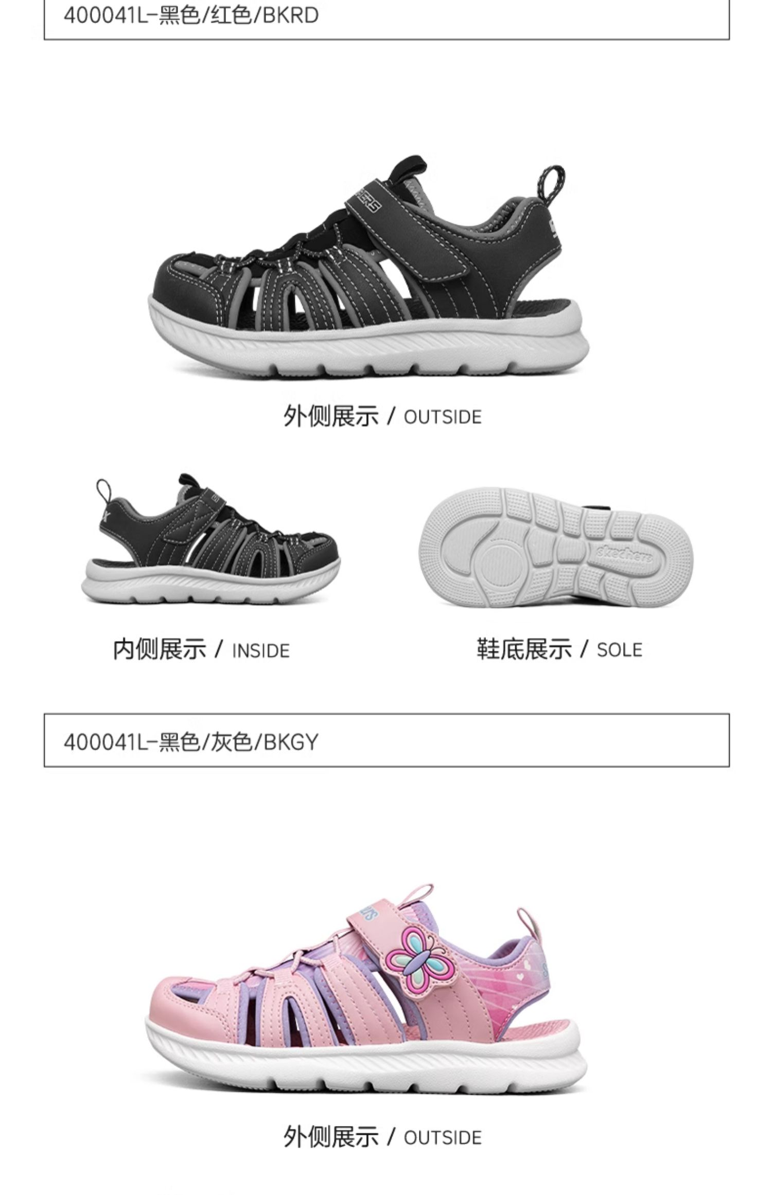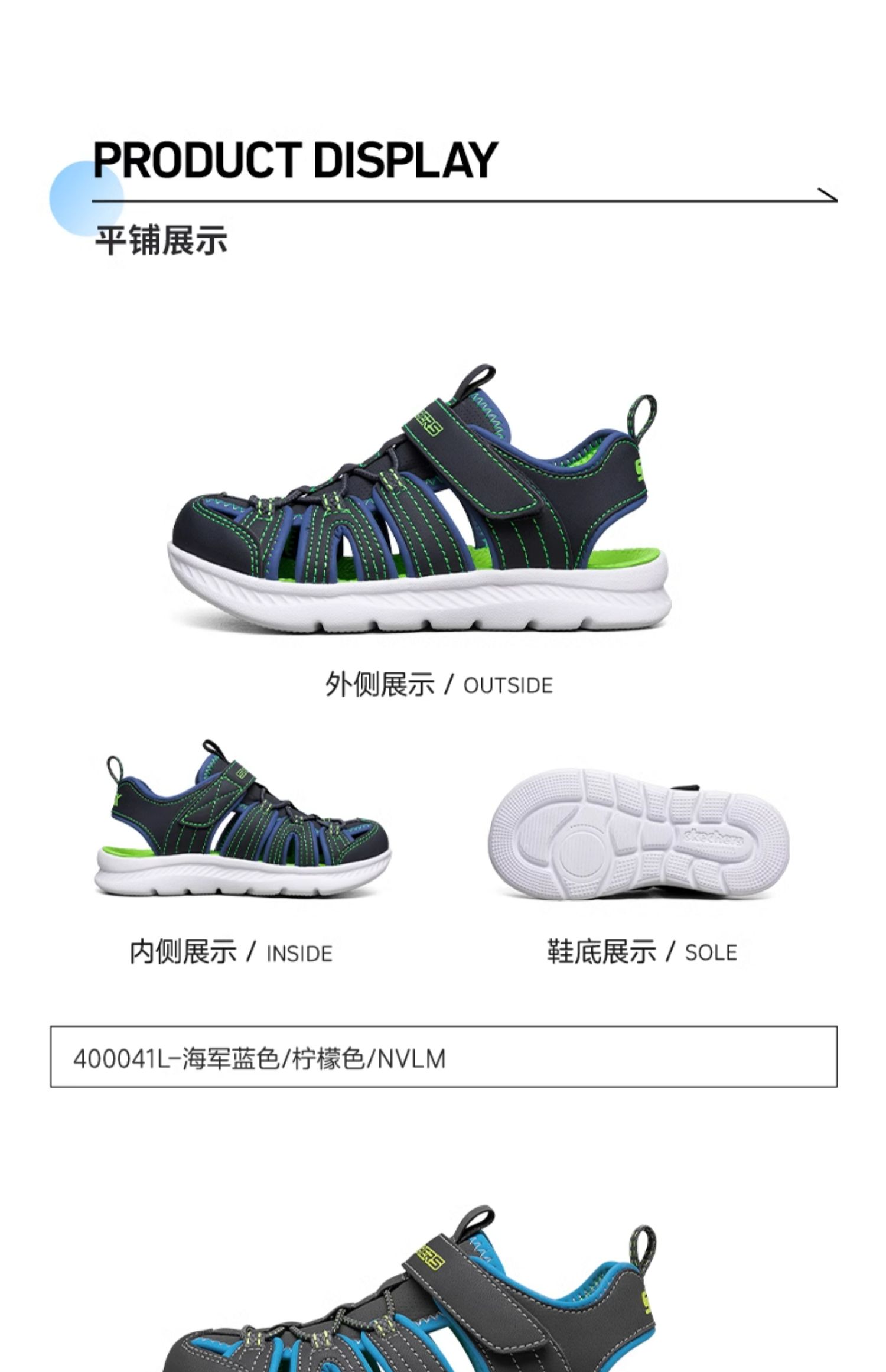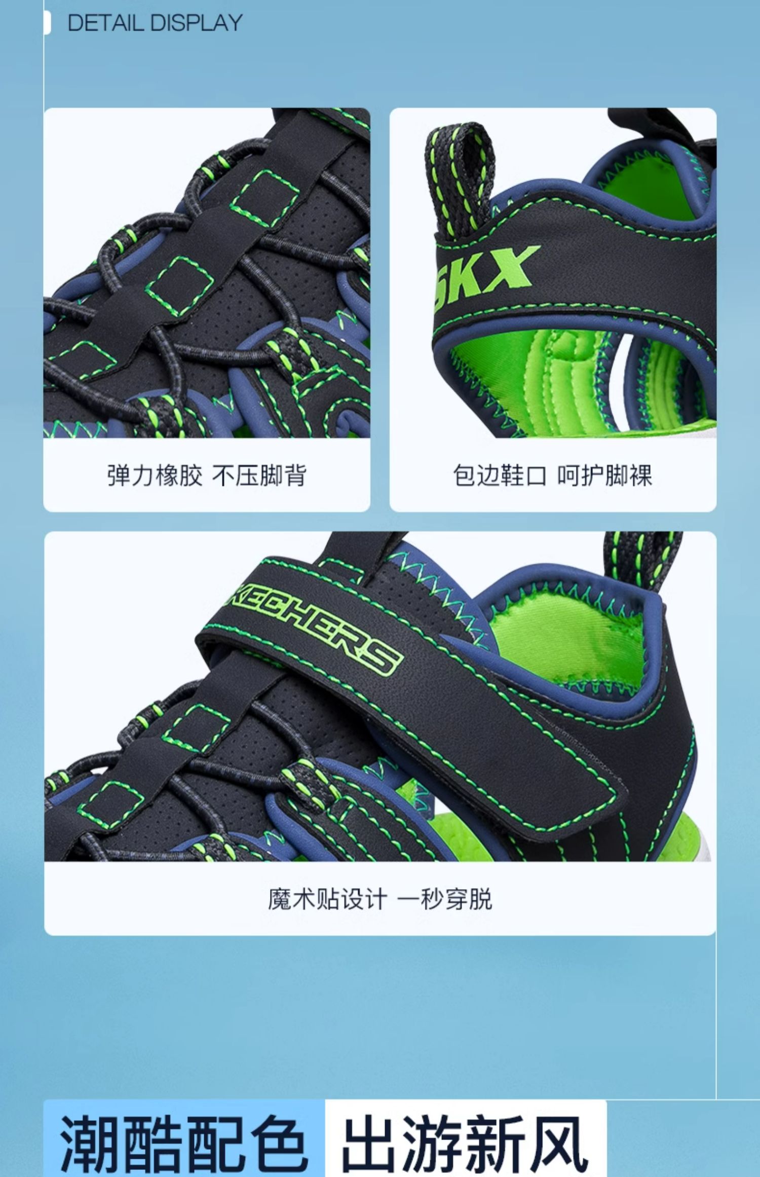 Skechers斯凯奇儿童包头夏季运动凉鞋男女童软底防滑中大童沙滩鞋400041L