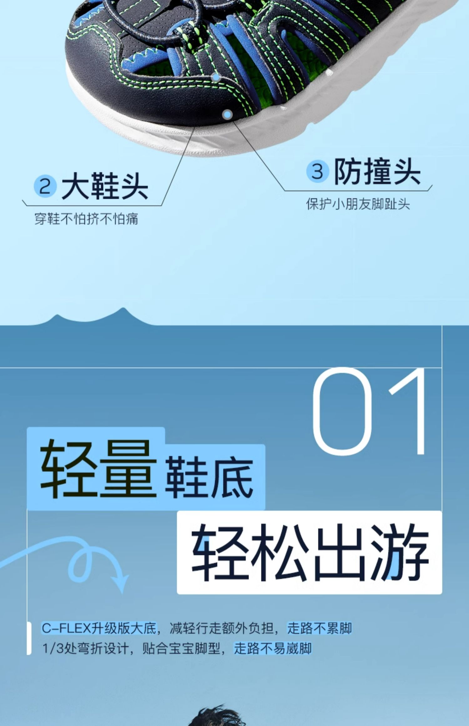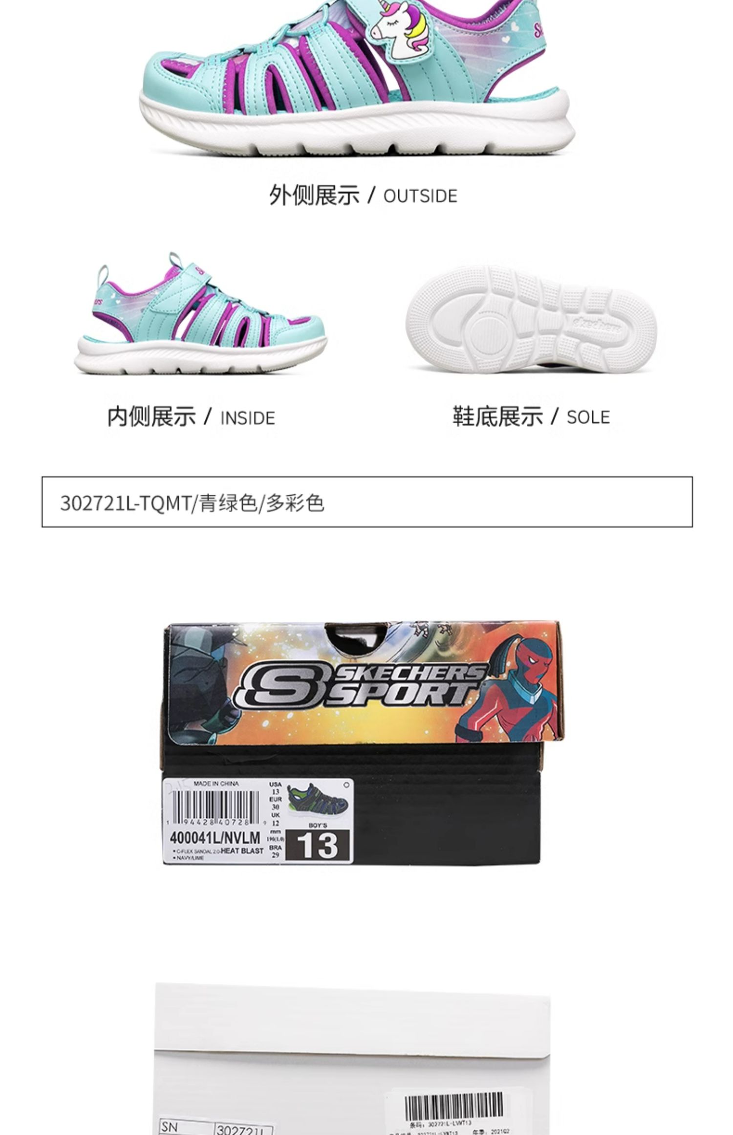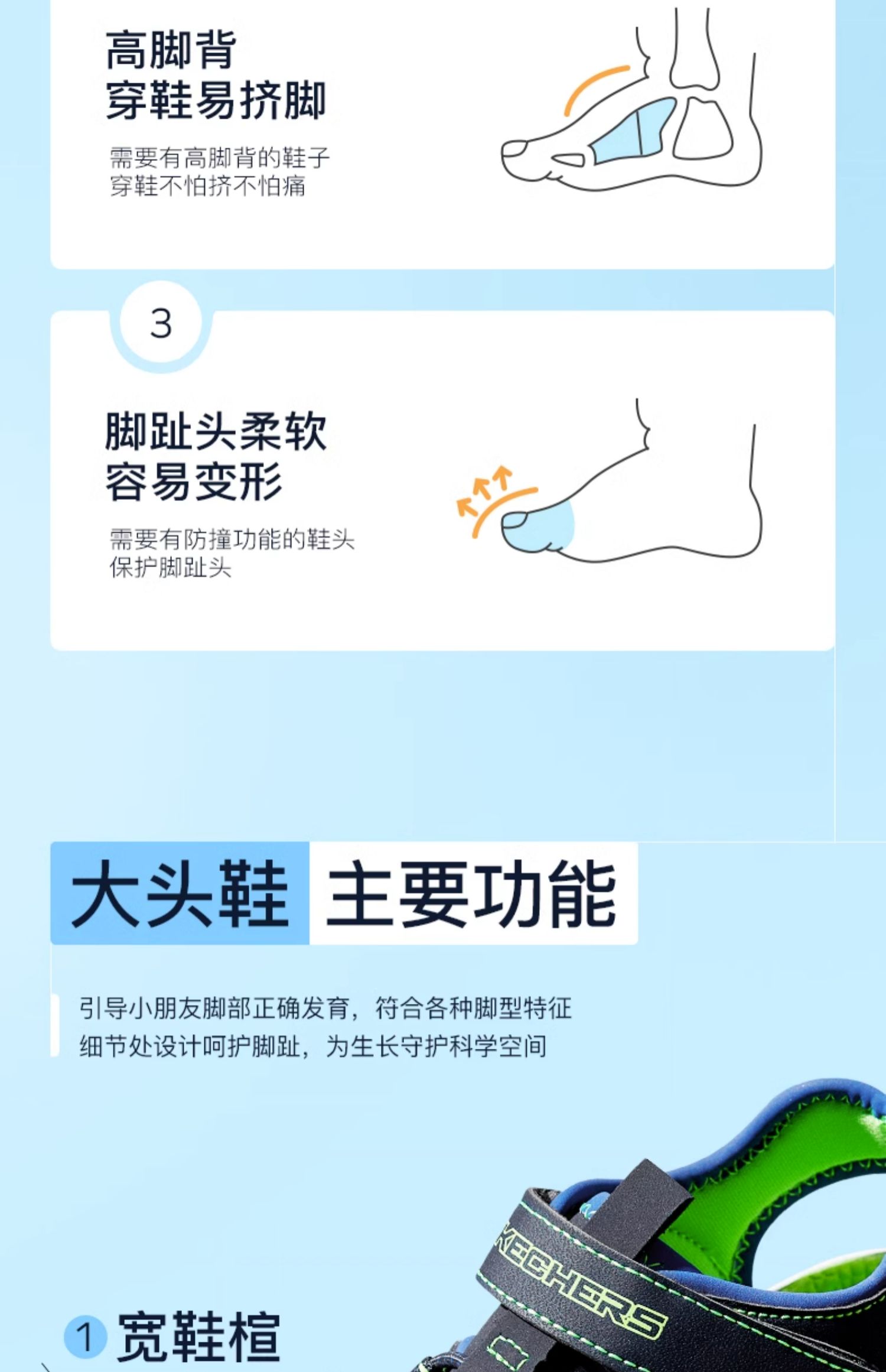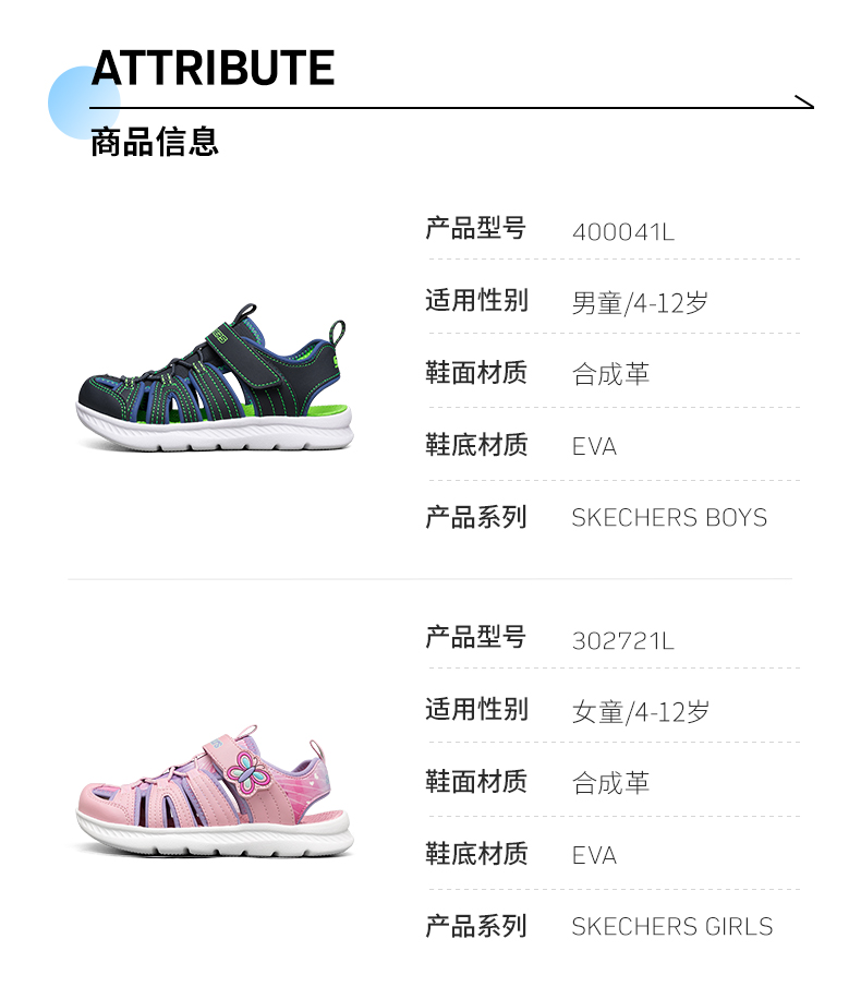 Skechers斯凯奇儿童包头夏季运动凉鞋男女童软底防滑中大童沙滩鞋400041L