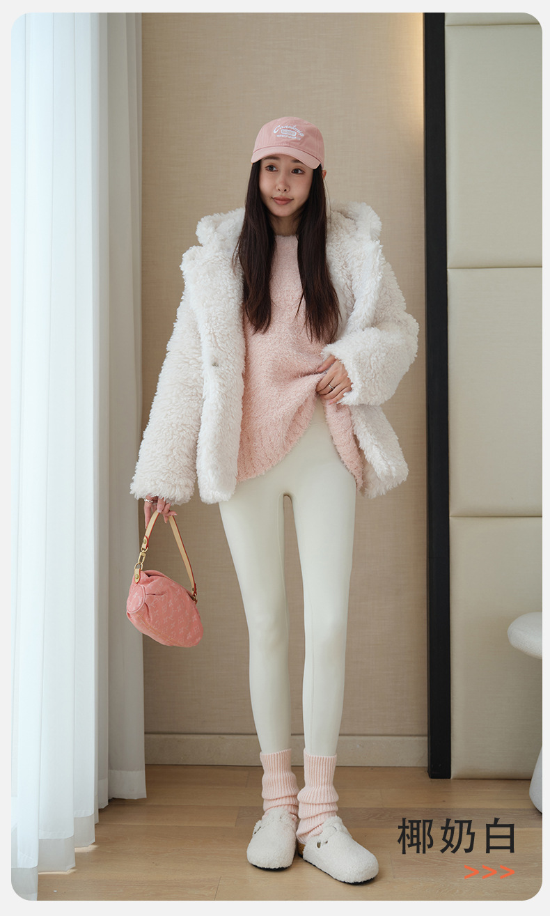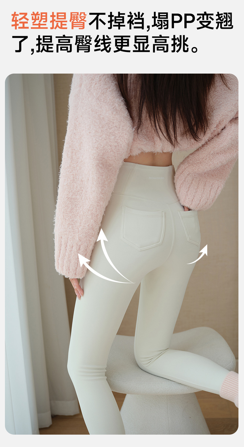 雀说 羊绒蚕丝口袋裤秋冬加绒瑜伽裤女加厚保暖打底裤662