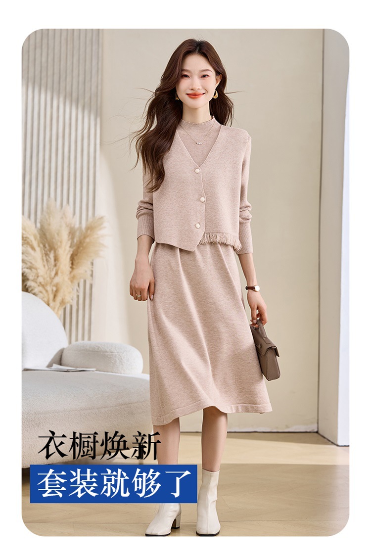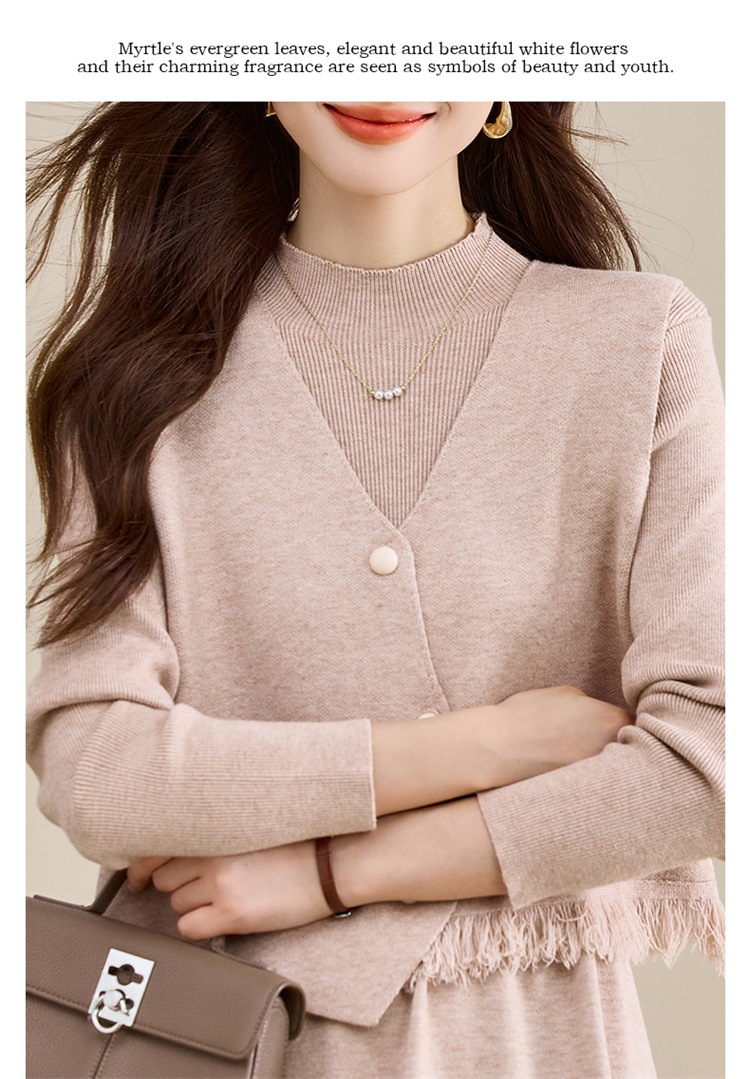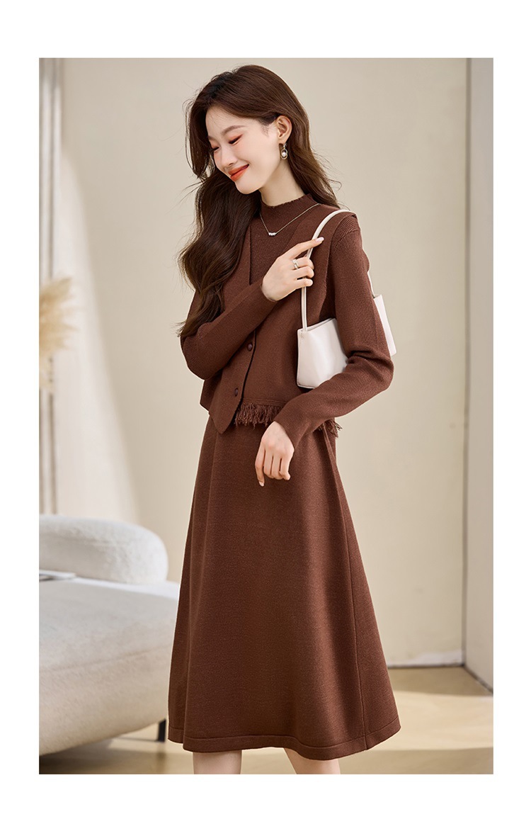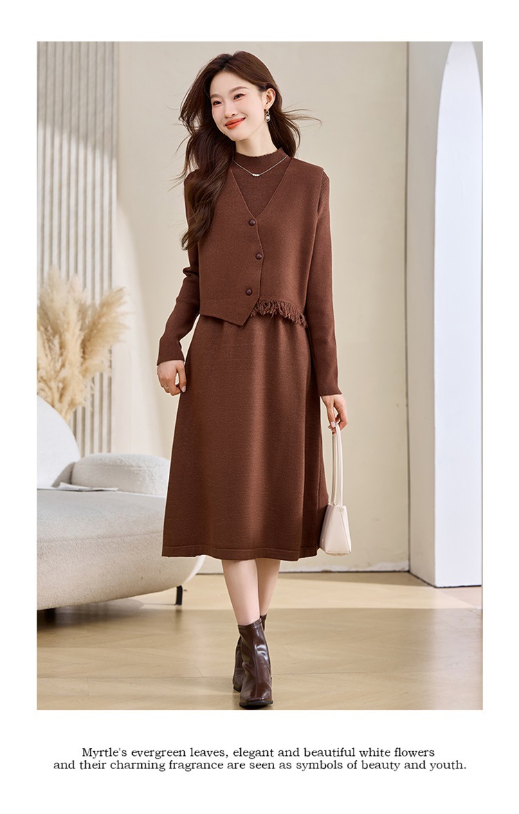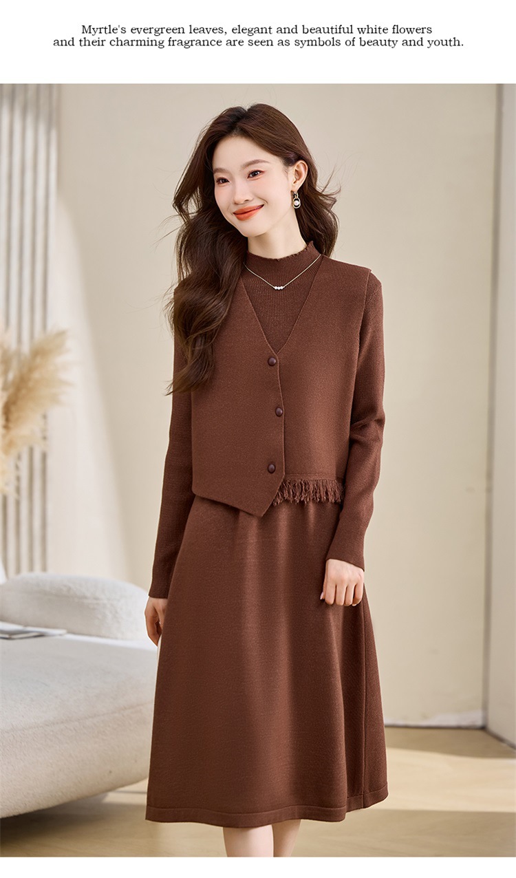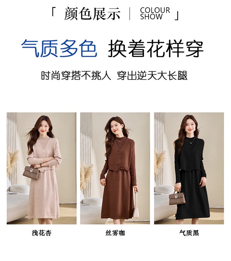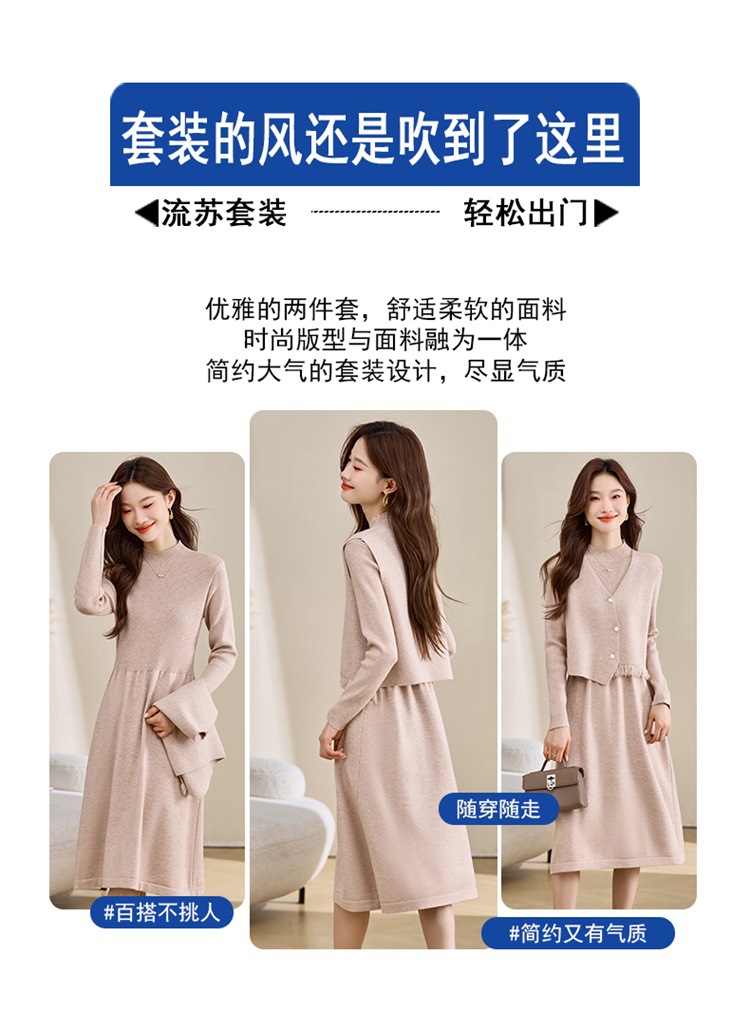 气质中长款过膝,半高领毛衣裙两件套打底AIMI1222