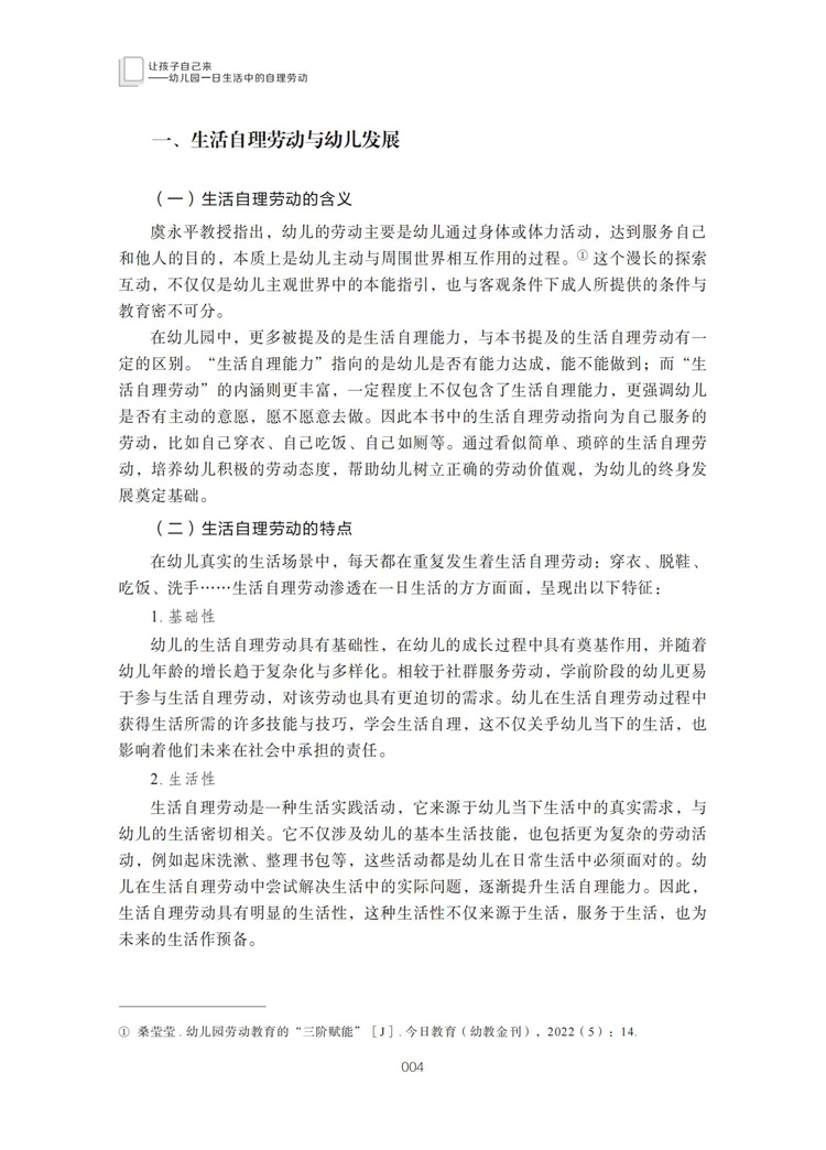 幼儿园劳动教育丛书 让孩子自己来 幼儿园一日生活中的自理劳动 江苏省十四五时期出版物出版规划项目 幼儿园教育用书
