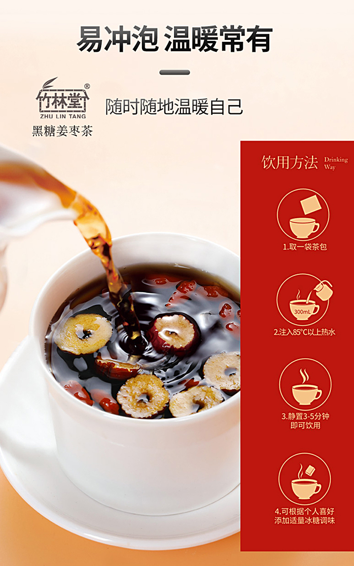 【红颜悦色】竹林堂黑糖姜枣茶250g/盒,省内包邮~