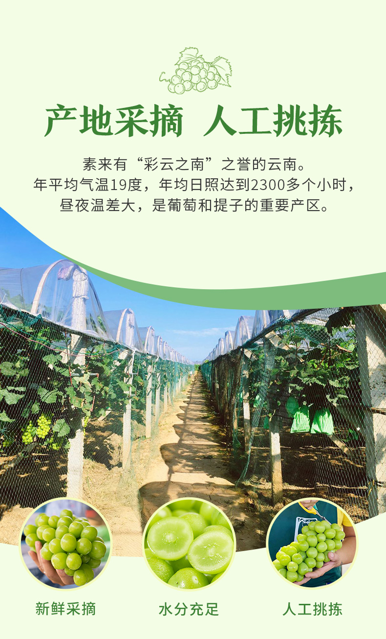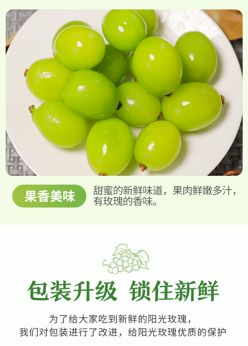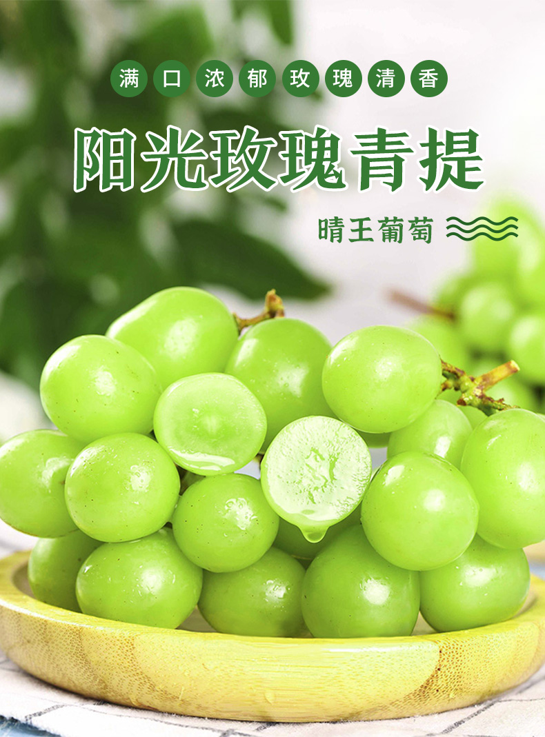 【阳光玫瑰】云南晴王玫瑰葡萄无籽青提皮薄肉厚水润多汁连皮食用2斤/3斤精品颗粒装