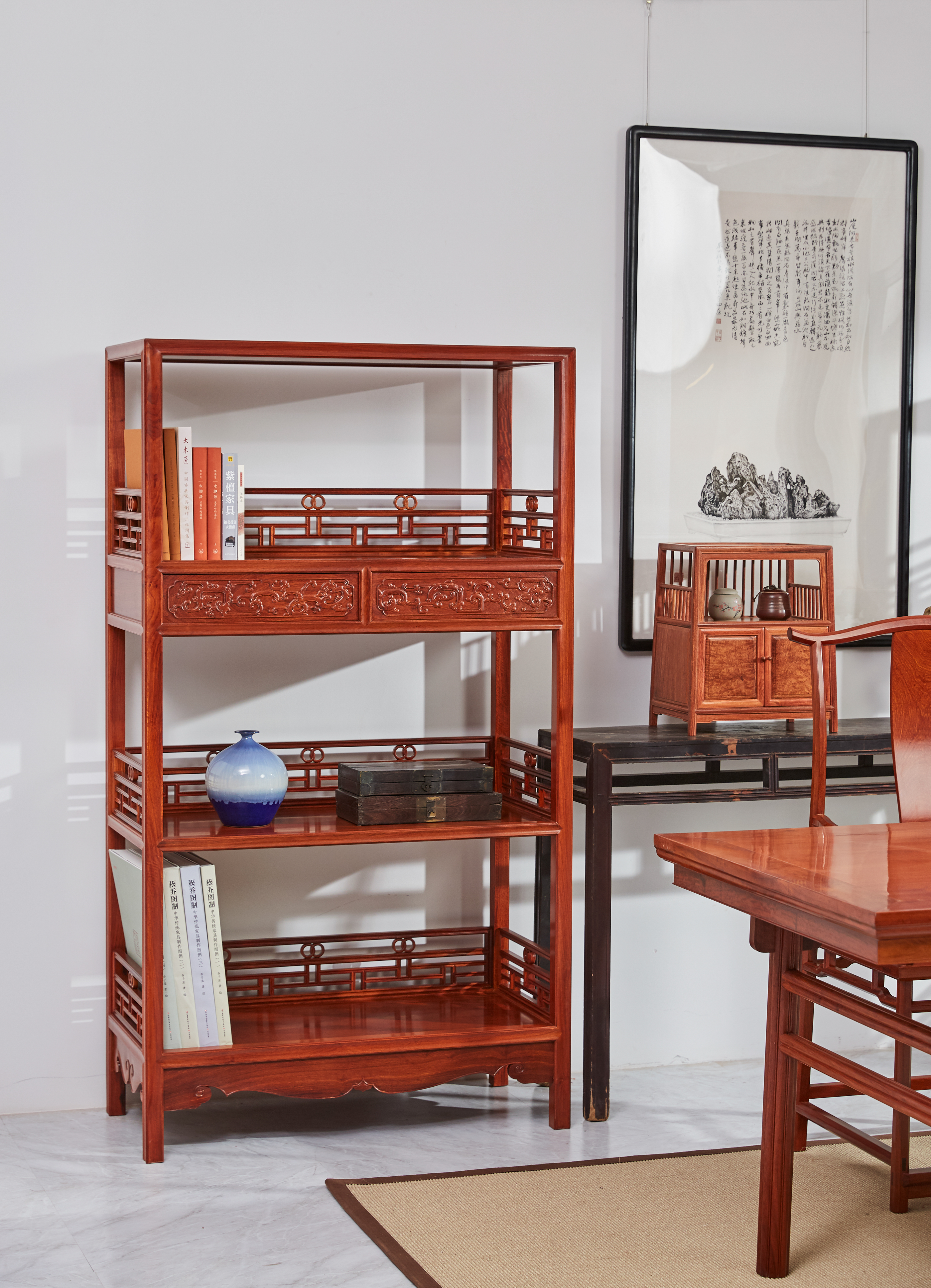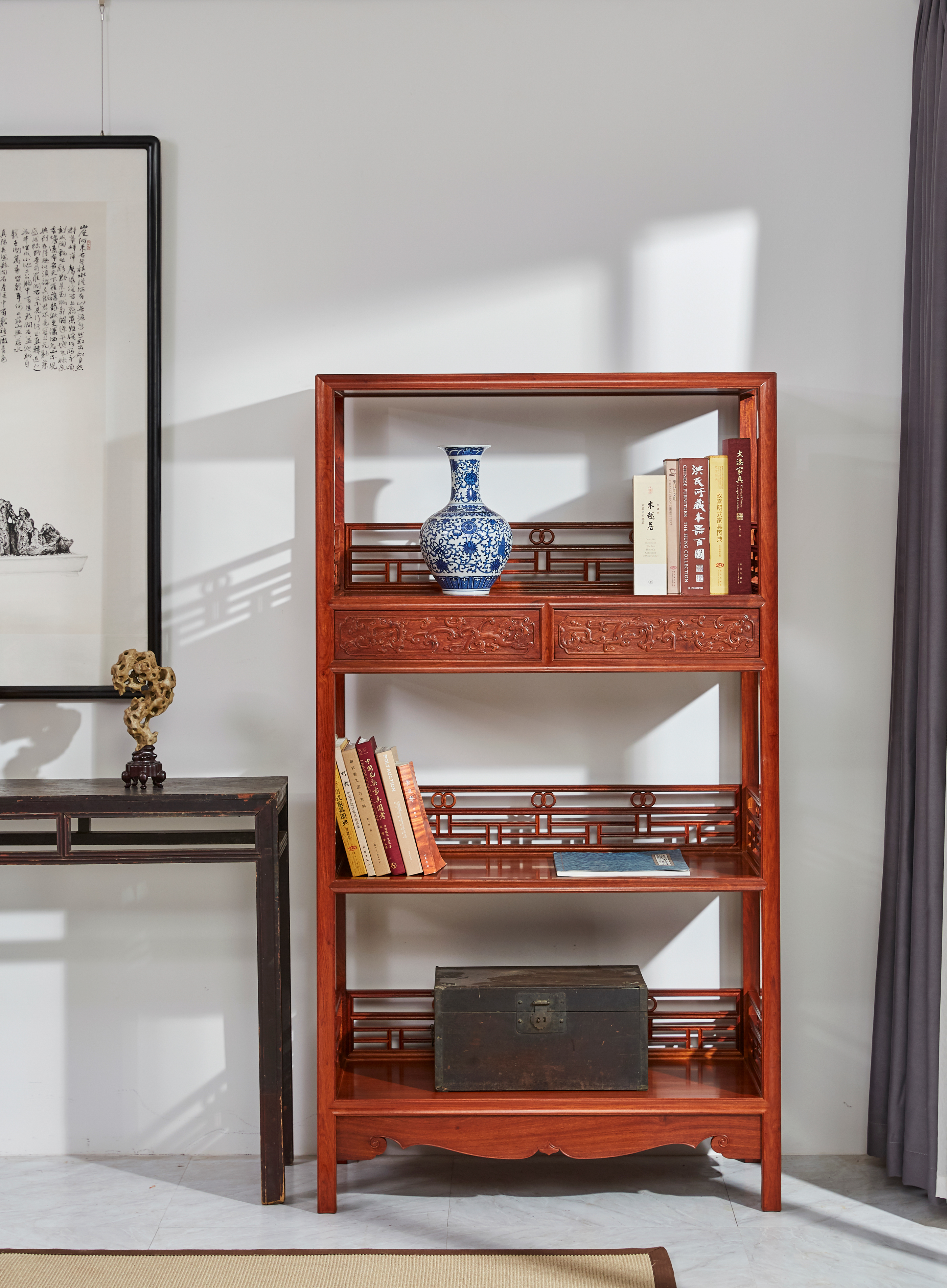 书架是根正苗红的文人家具,起置物、陈设、拓展空间之用。