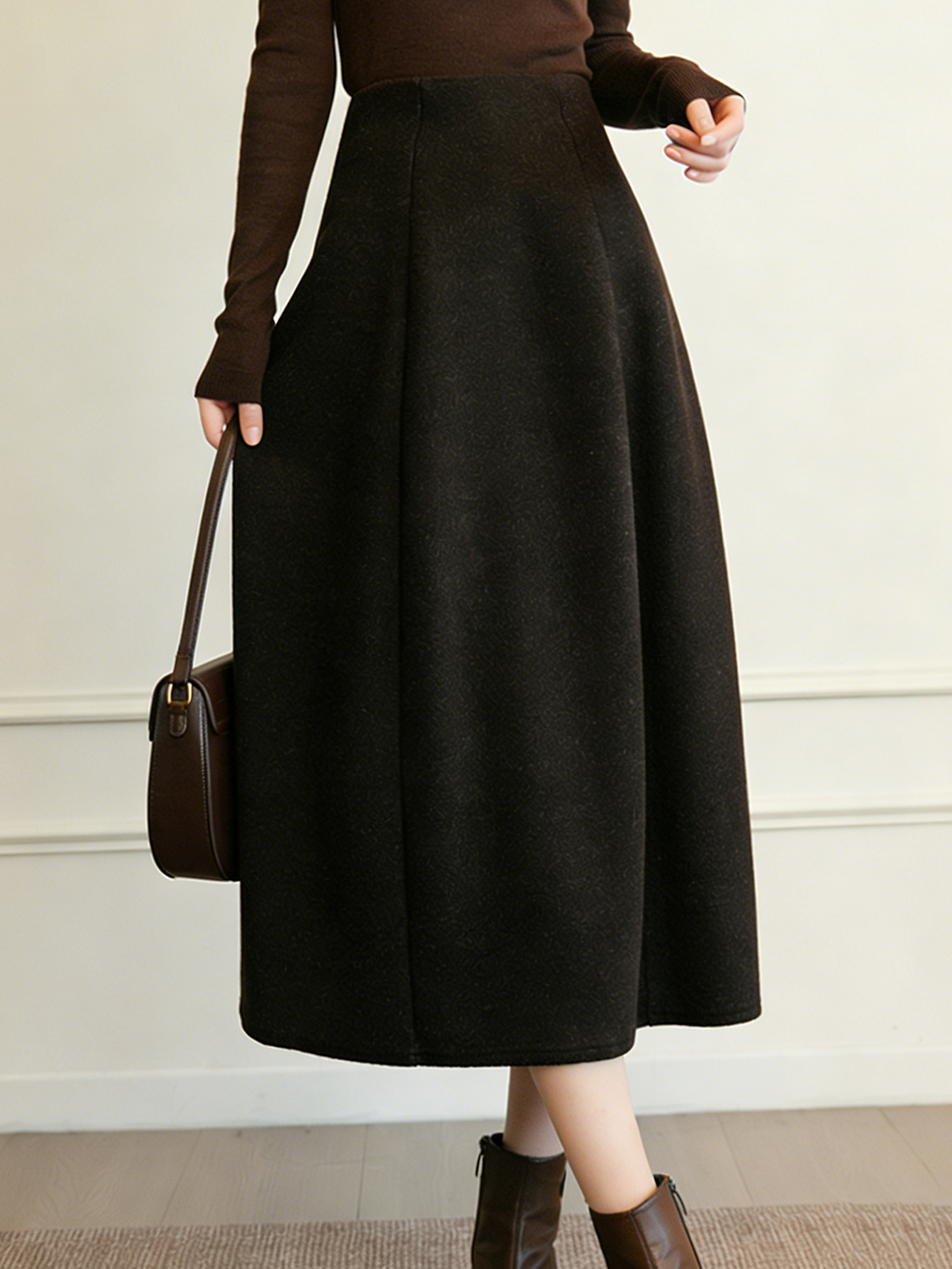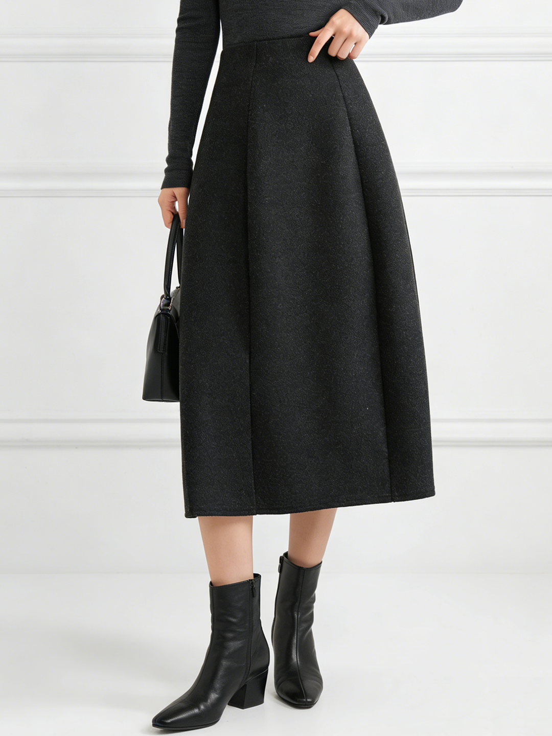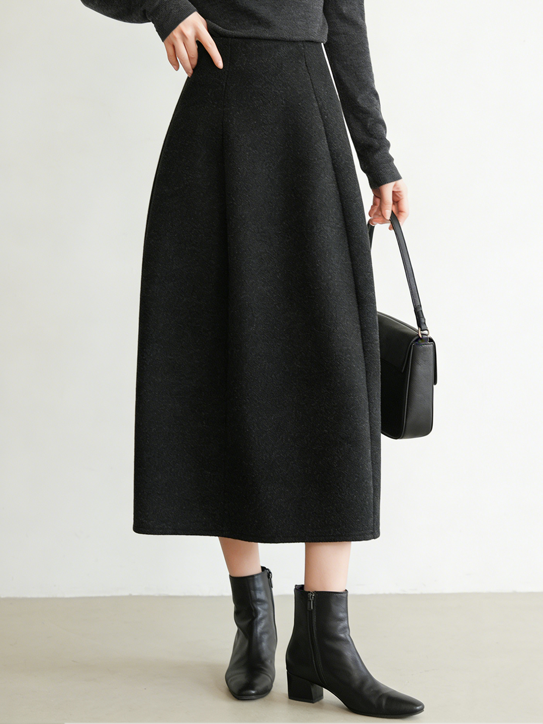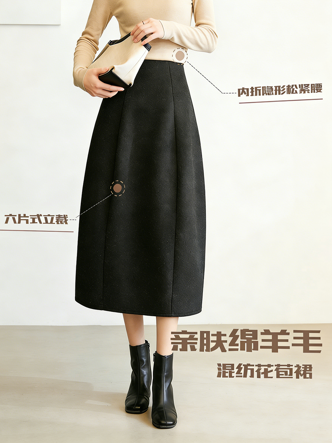 臣禾 【立裁花苞裙】羊毛混纺百搭显瘦A字松紧腰半身裙 JZ254030275
