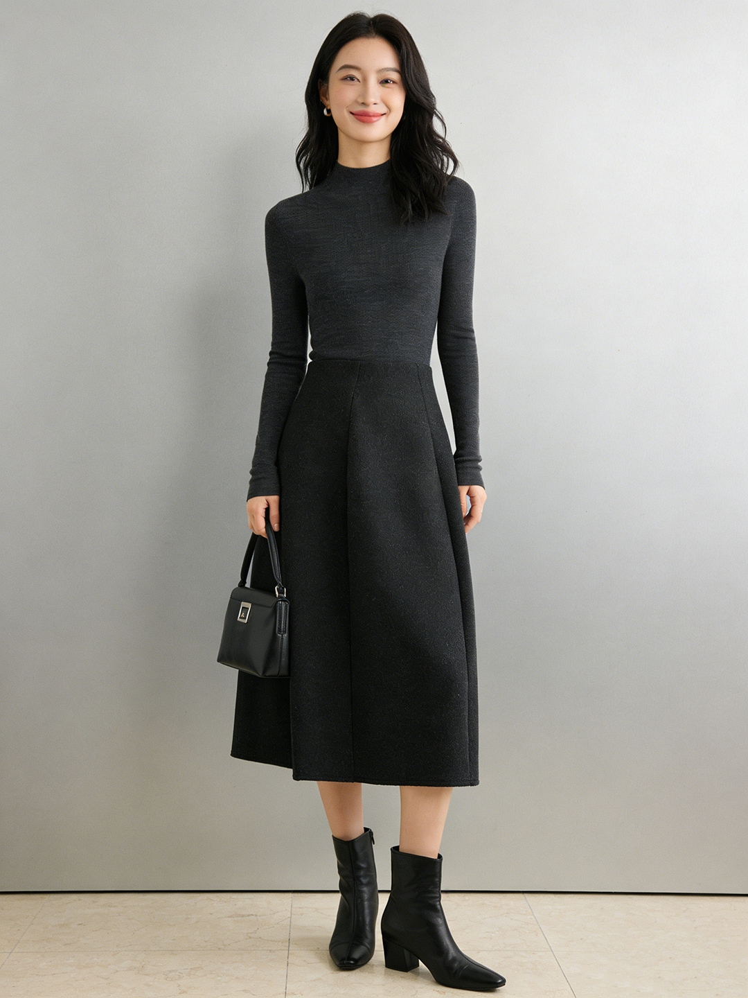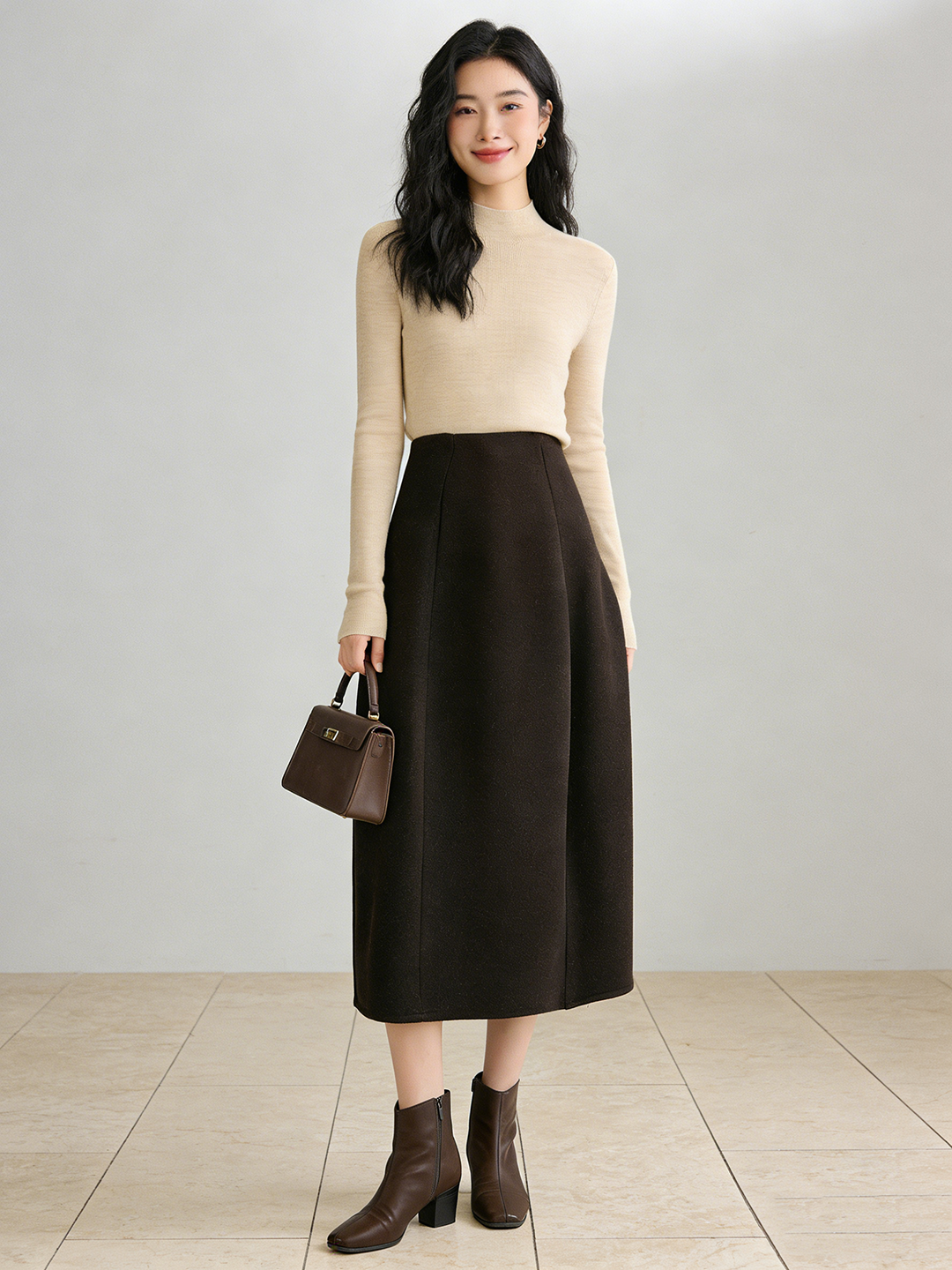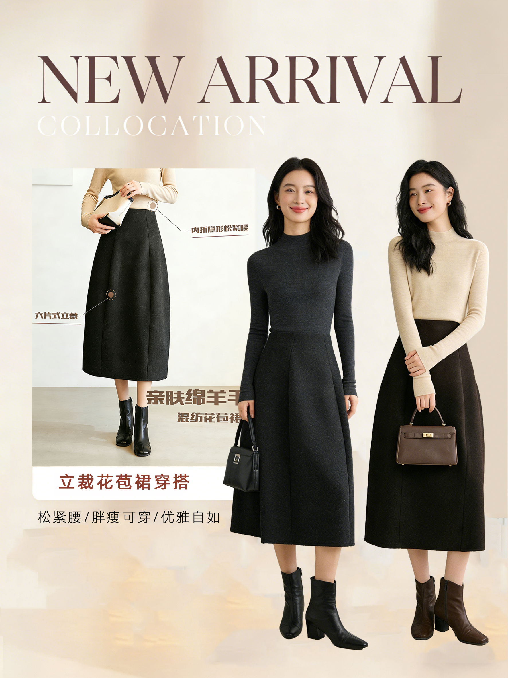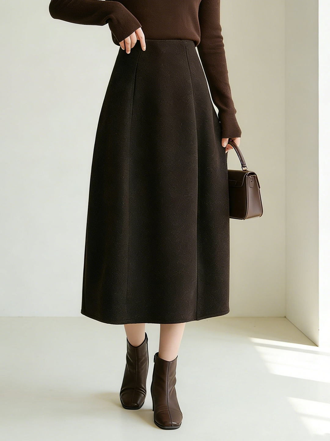 臣禾 【立裁花苞裙】羊毛混纺百搭显瘦A字松紧腰半身裙 JZ254030275