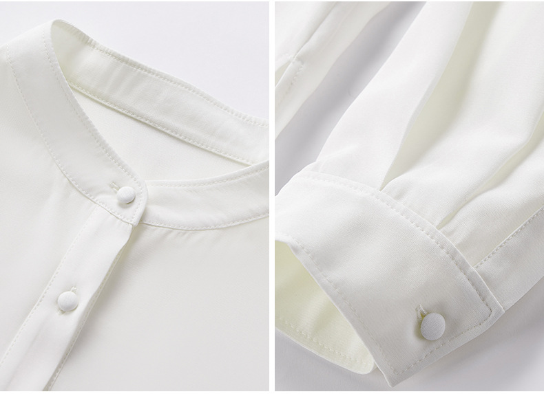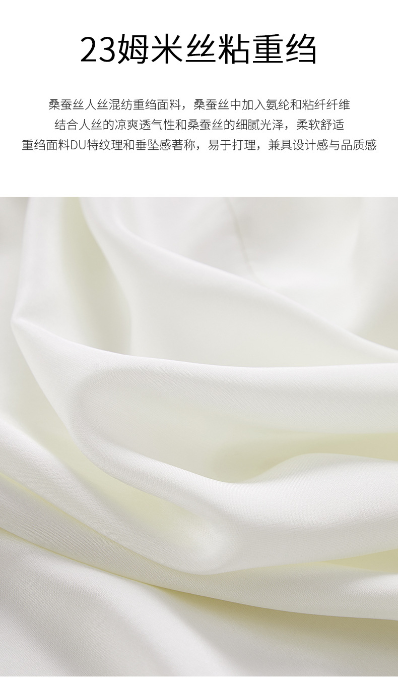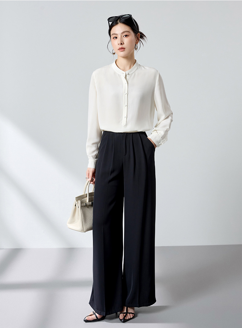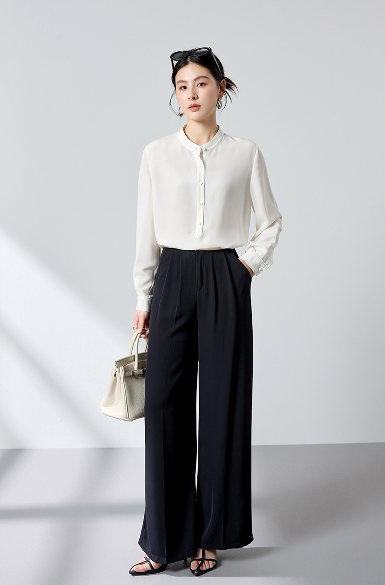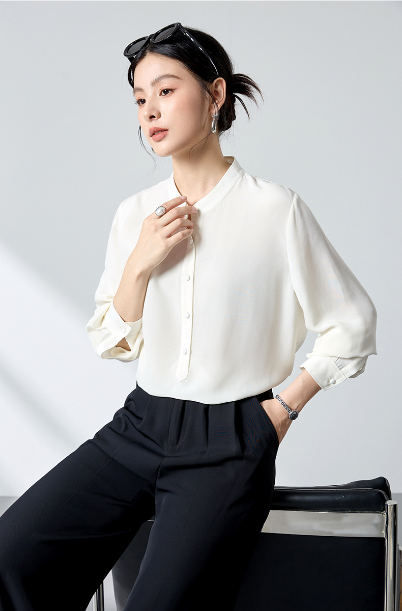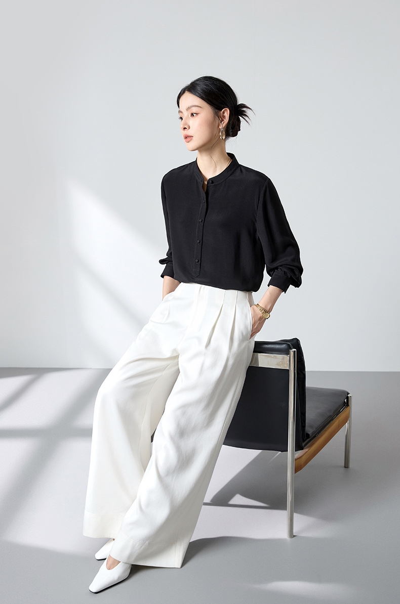 QS春简约通勤衬衫23姆米丝粘重绉立领垂坠显瘦蚕丝上衣2167