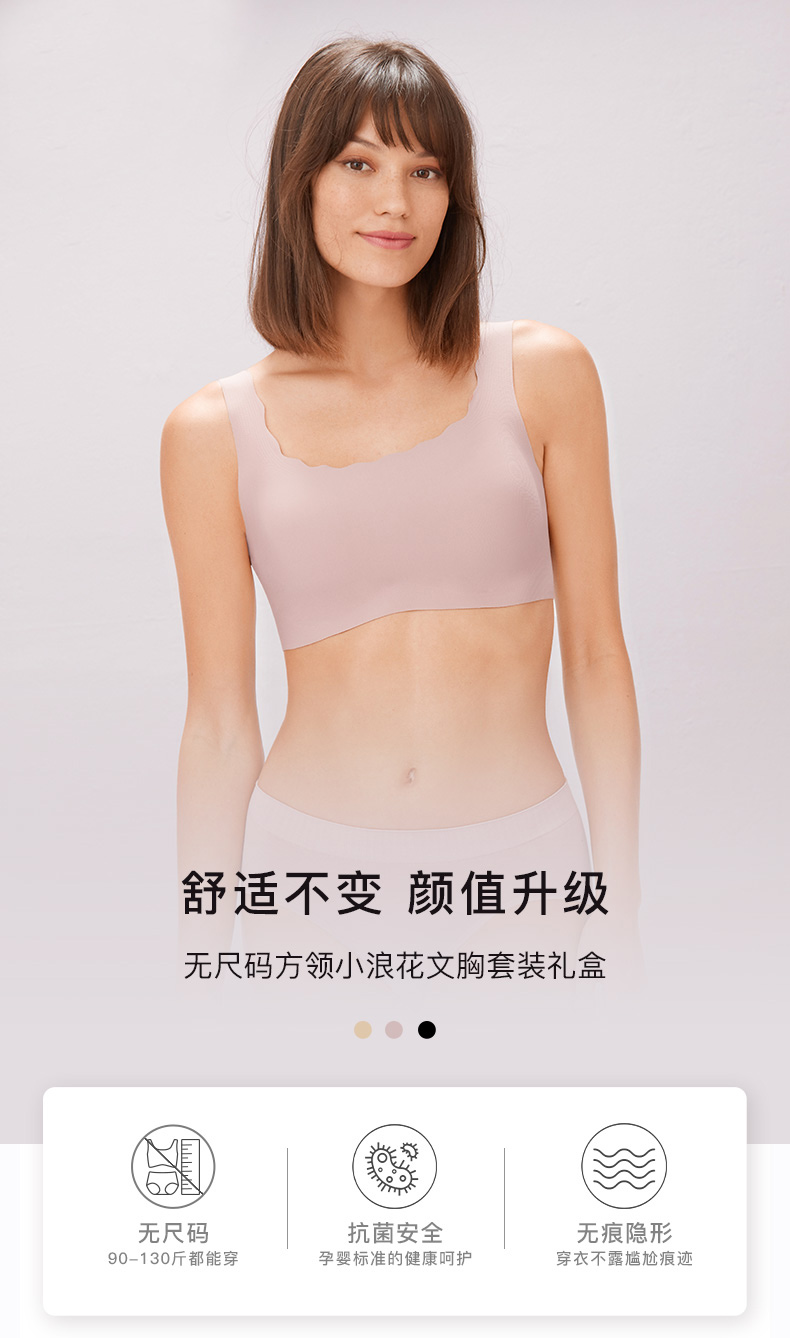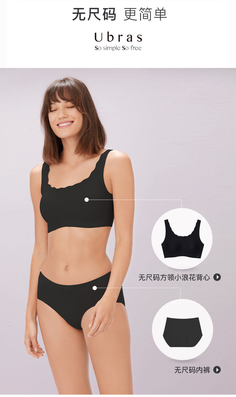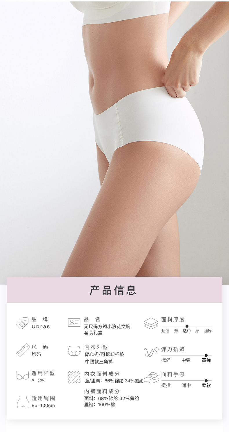 Ubras无尺码方领小浪花文胸套装礼盒内衣女文胸内裤套装礼盒