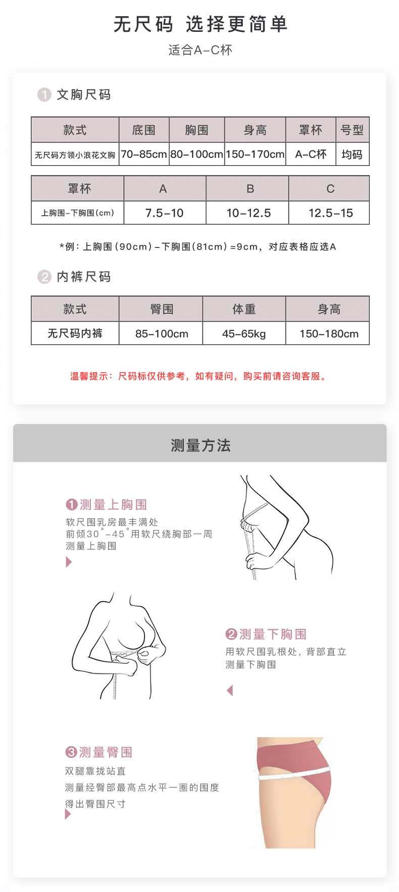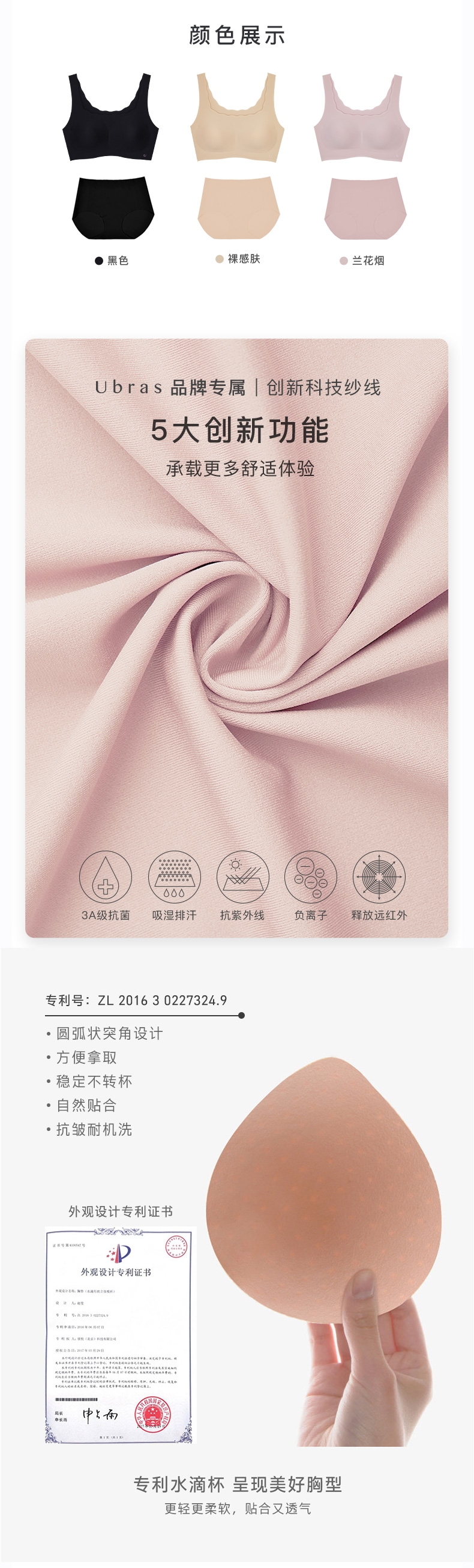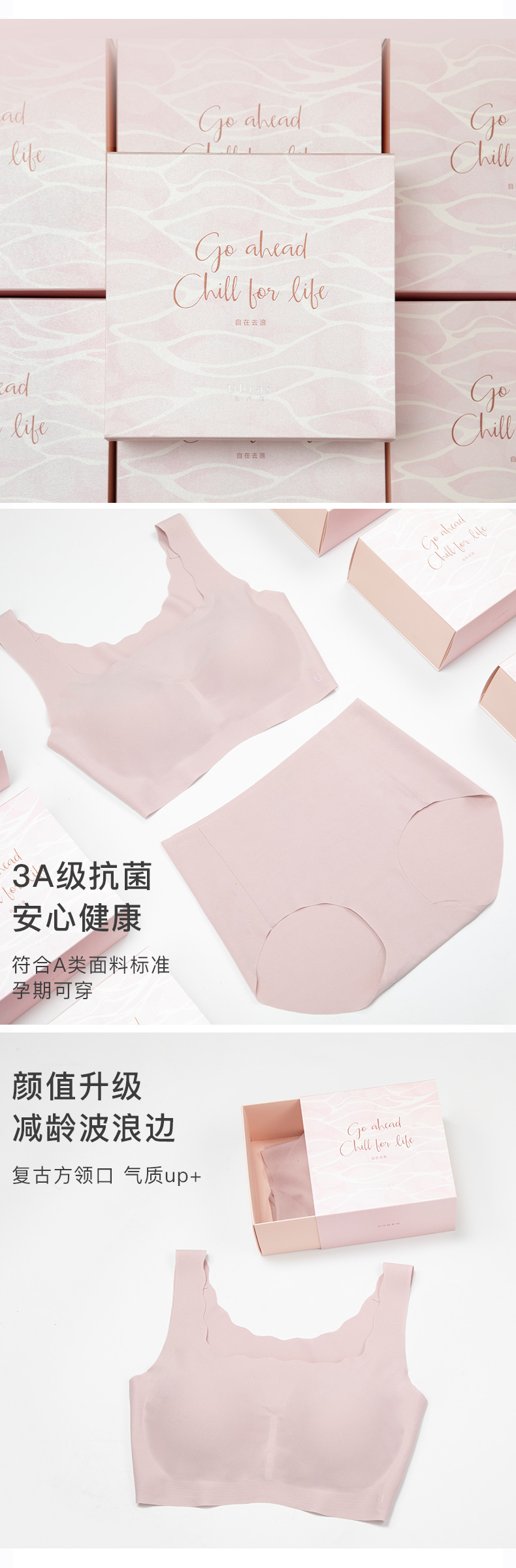 Ubras无尺码方领小浪花文胸套装礼盒内衣女文胸内裤套装礼盒