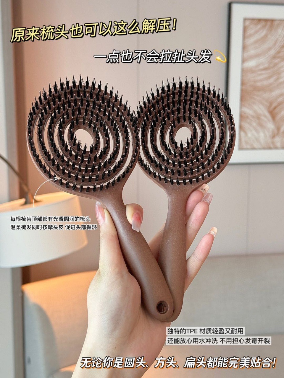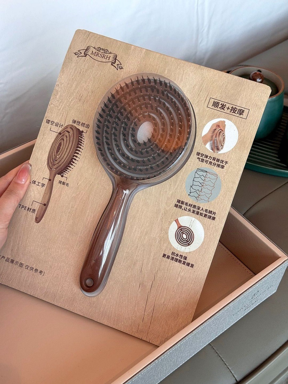 【镂空猪美梳,按摩梳~】韩国yao家用按摩蓬松便携造型顺发镂空猪鬃梳子 美发梳按摩梳养护-QQ