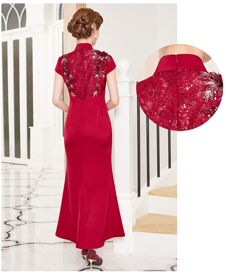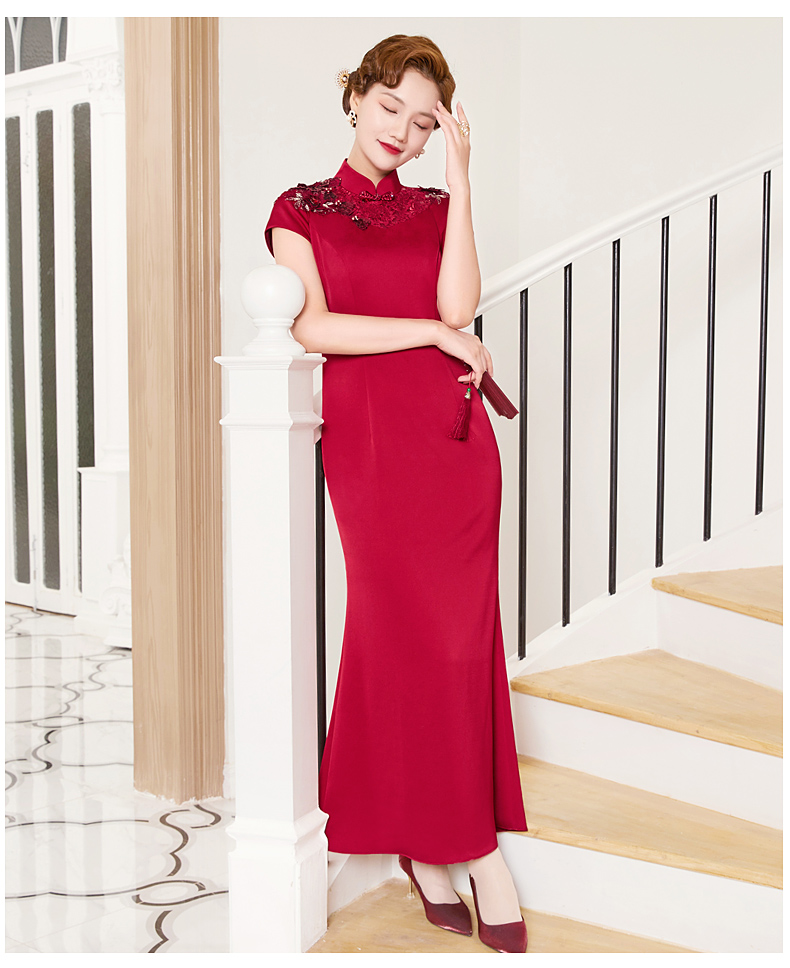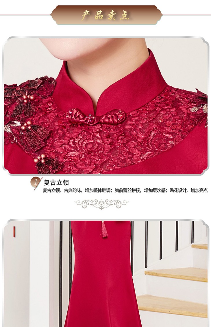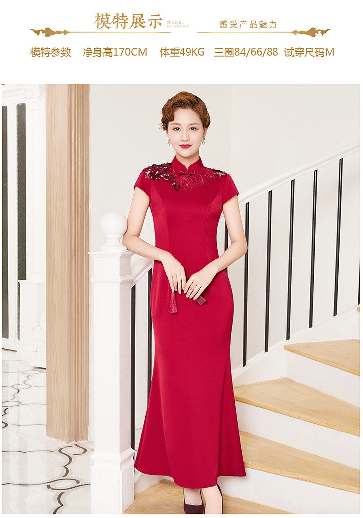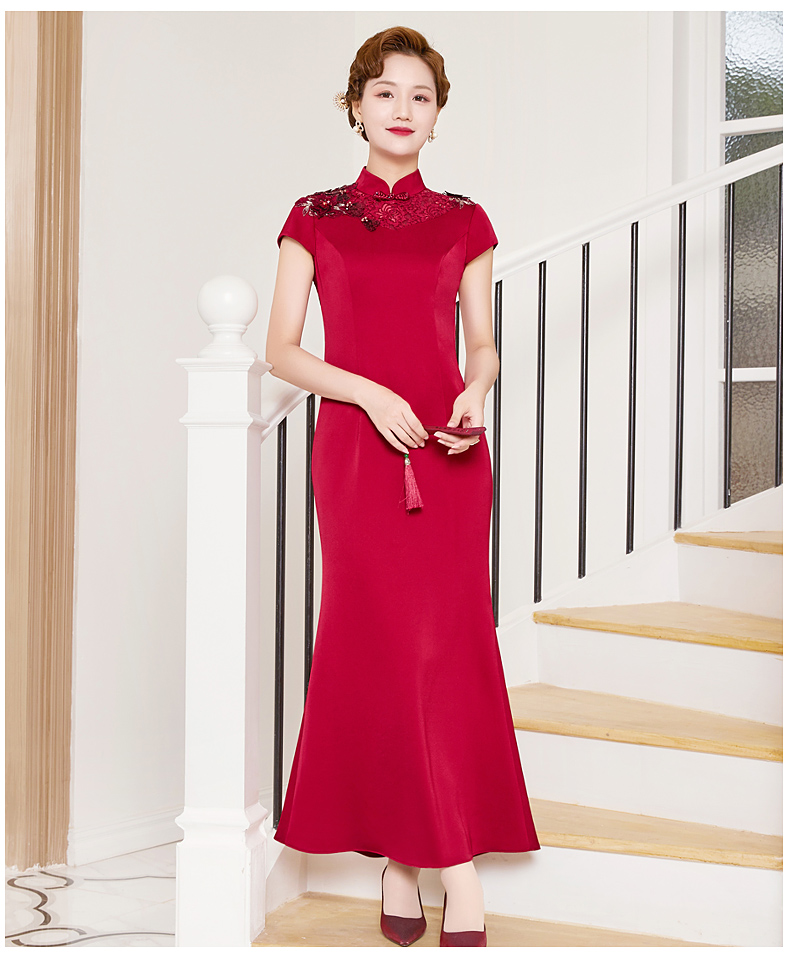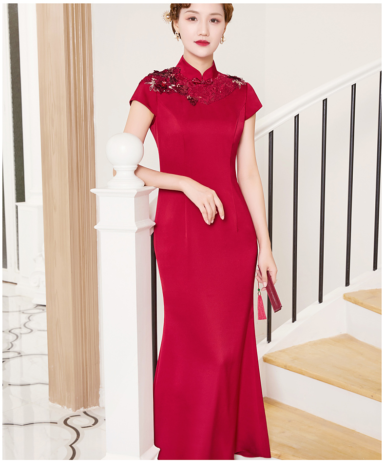 DLQ-A2998新款优雅气质修身显瘦立领短袖长款刺绣礼服裙