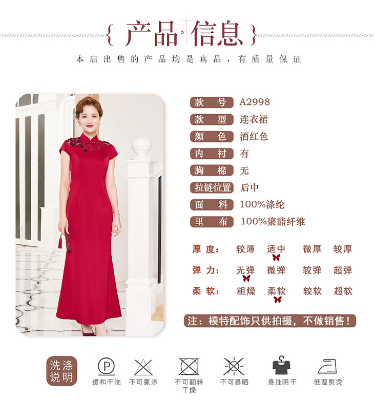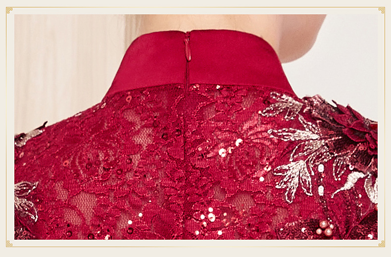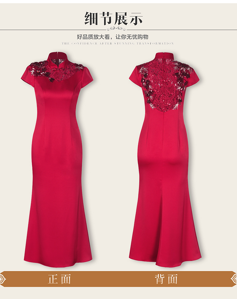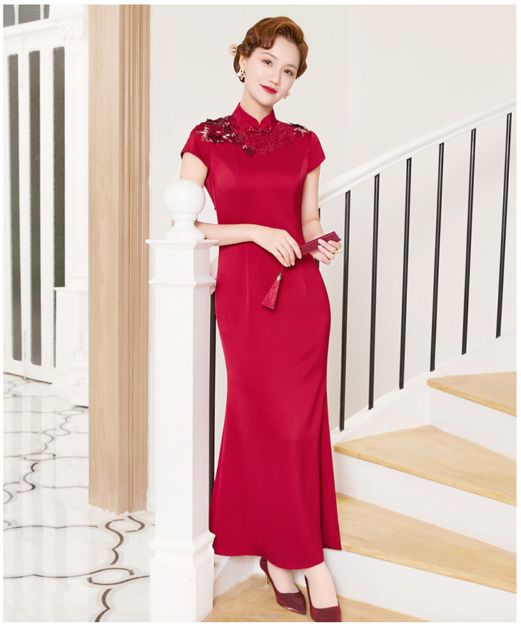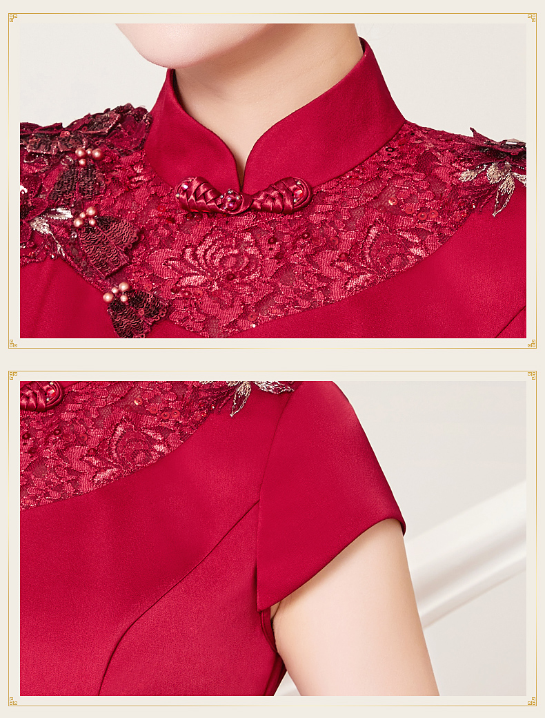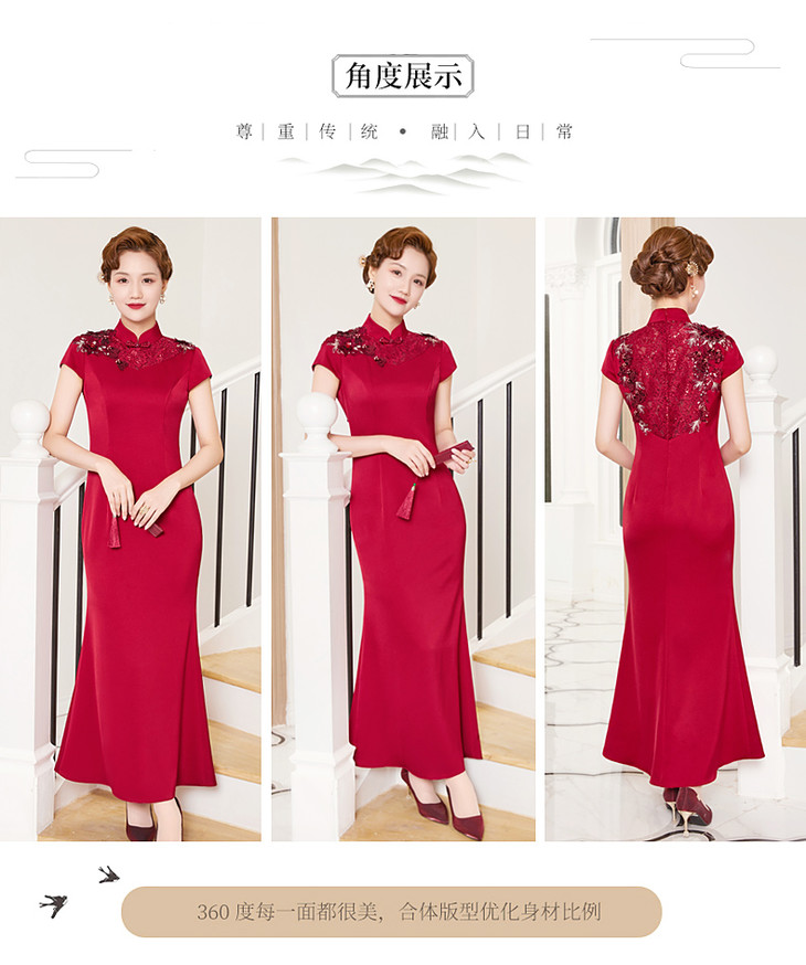 DLQ-A2998新款优雅气质修身显瘦立领短袖长款刺绣礼服裙