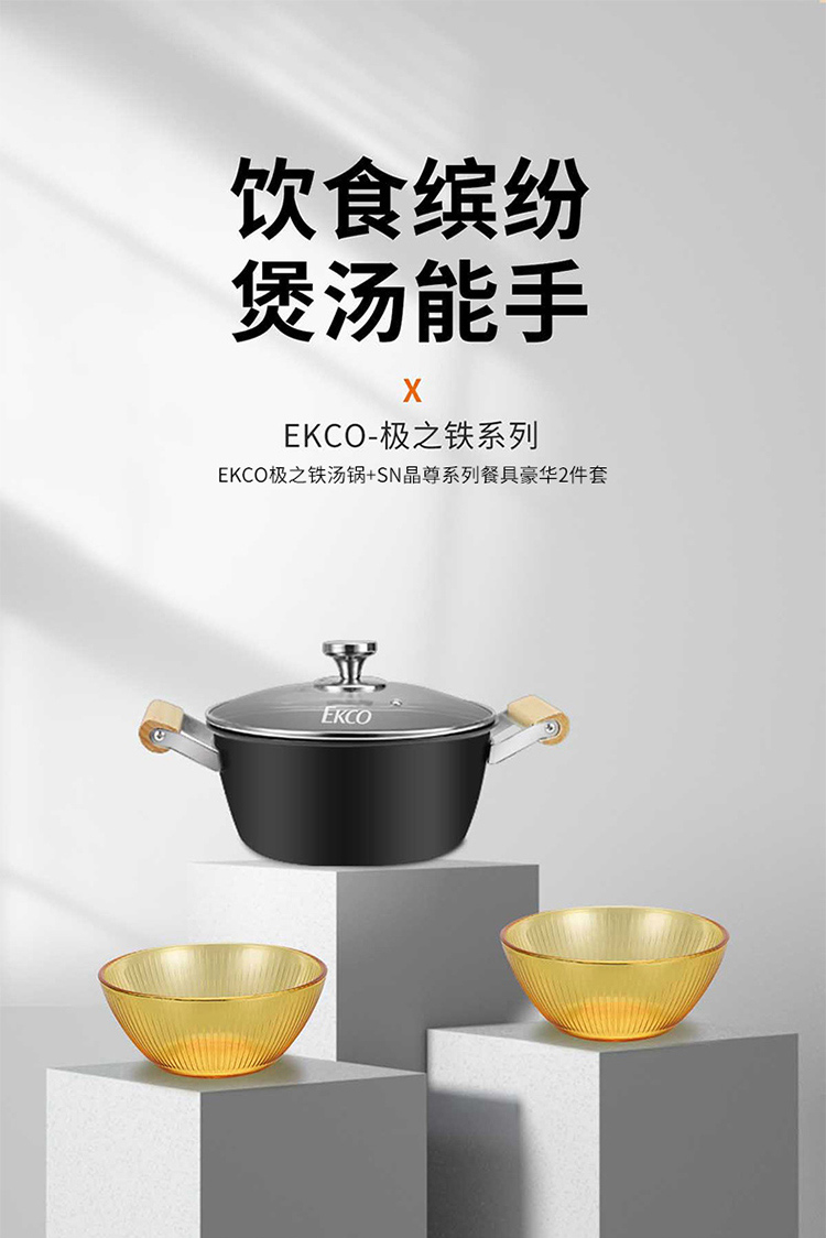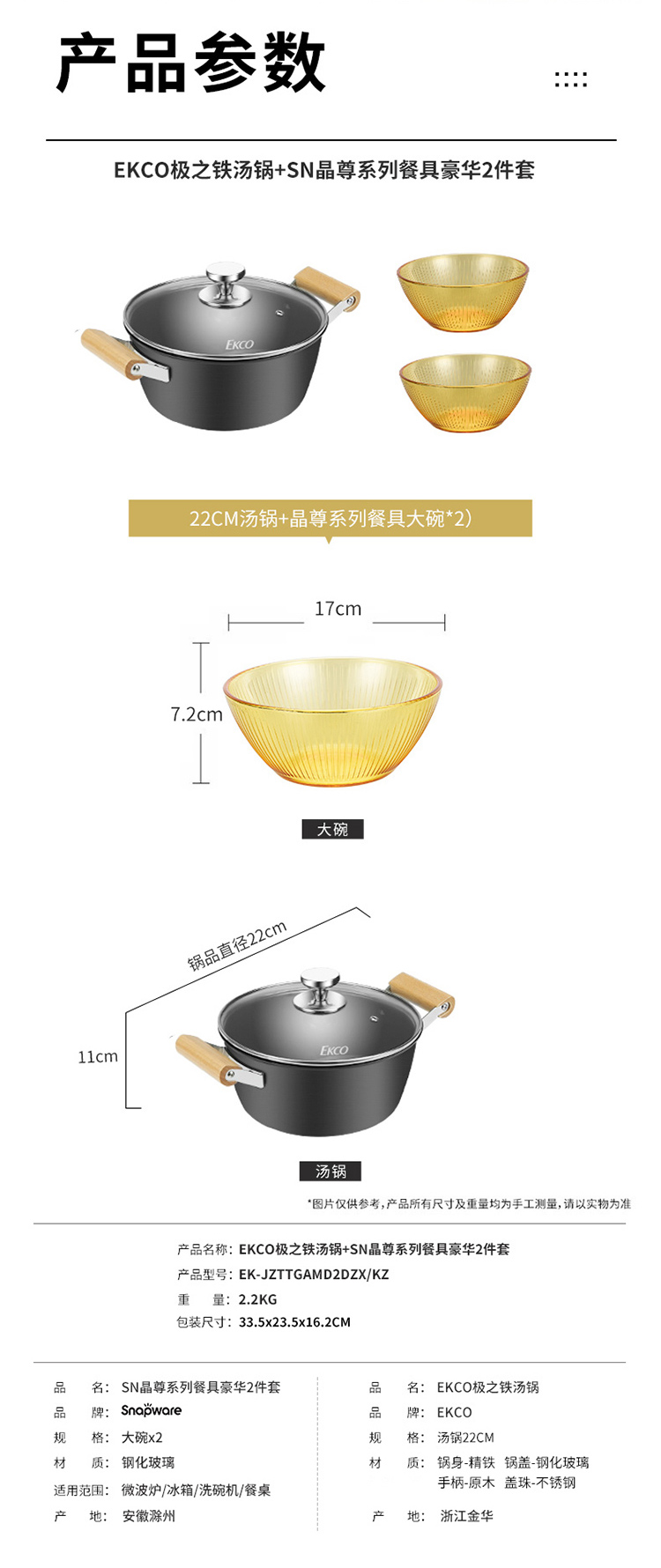 杞冠臻选 | 康宁 极之铁汤锅22cm+晶尊餐具3.3L*2 豪华套装 美国百年品牌 Corelle Brands EK-JZTTGAMD2DZX/KZ