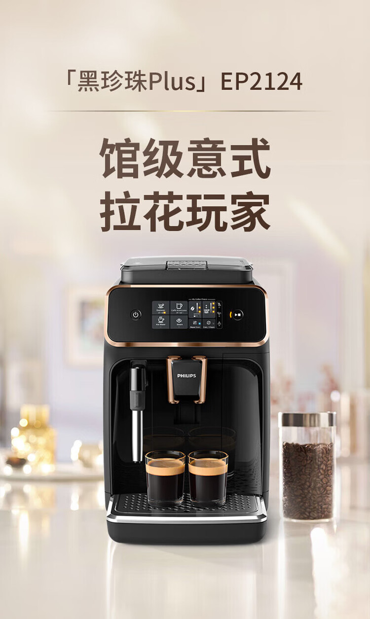 PHILIPS飞利浦黑珍珠Plus奶泡研磨一体意式全自动咖啡机(EP2124)