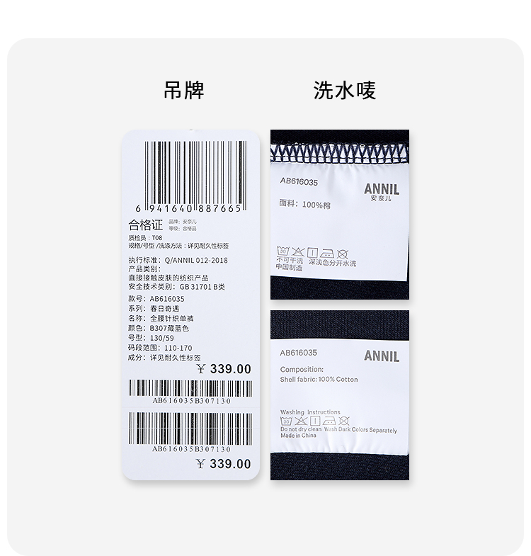 【实体店同款】男童全腰针织单裤春季新款安奈儿童装AB616035