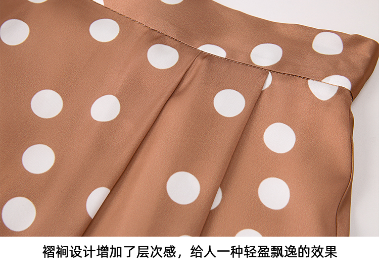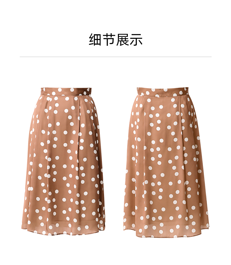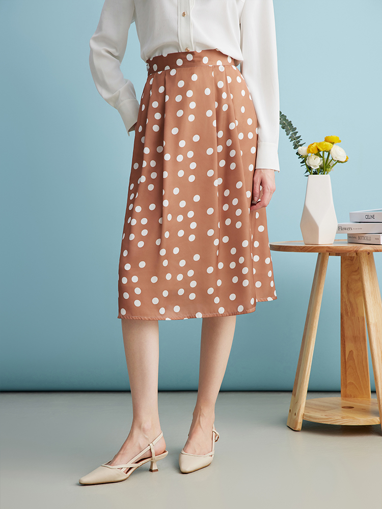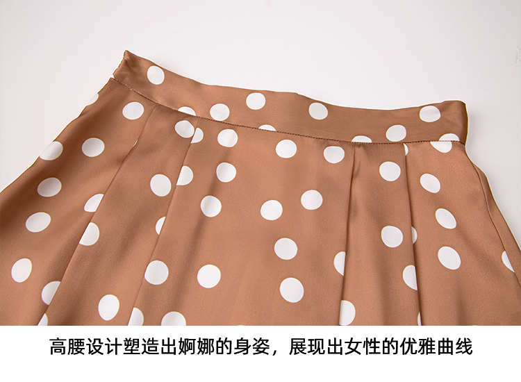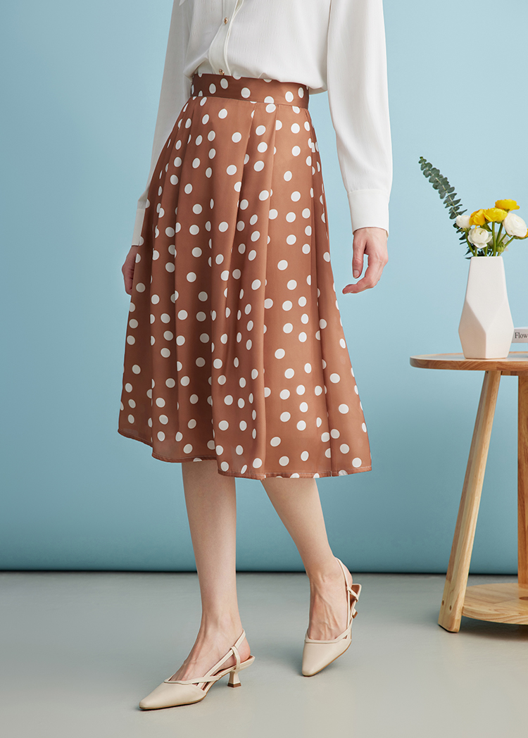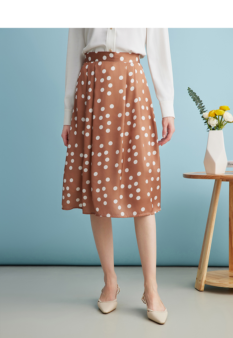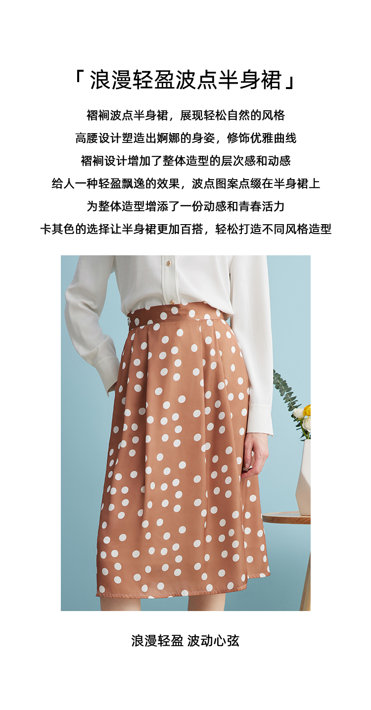 EITIE爱特爱时尚卡其色高腰复古波点a字压褶半身裙夏季新款B2406316