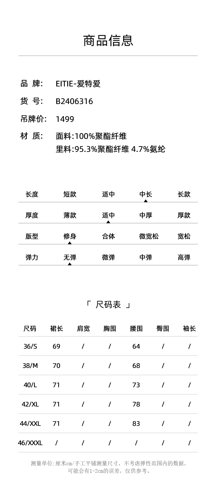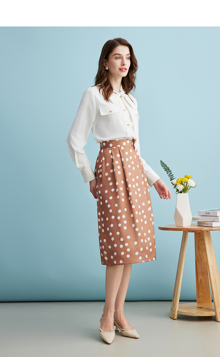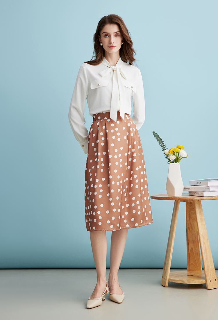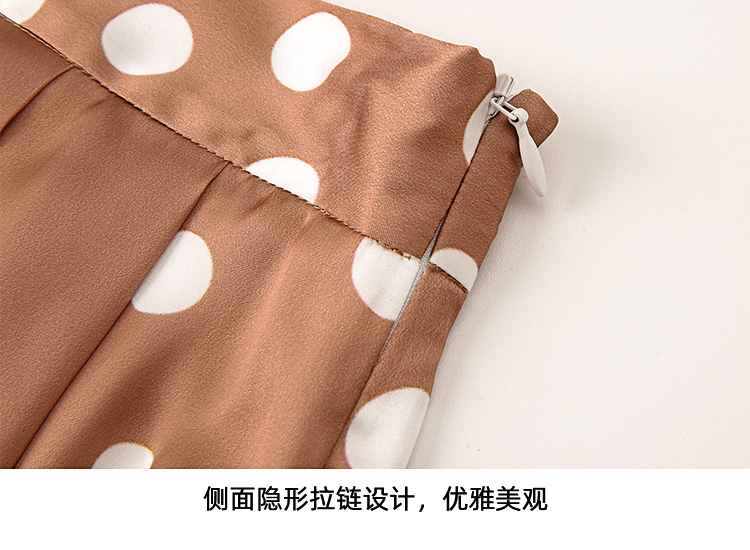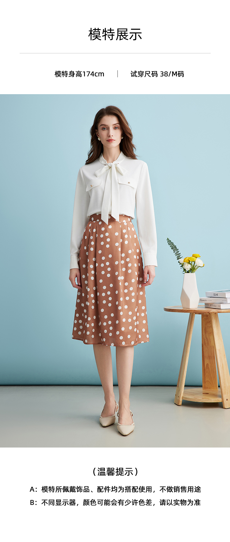 EITIE爱特爱时尚卡其色高腰复古波点a字压褶半身裙夏季新款B2406316