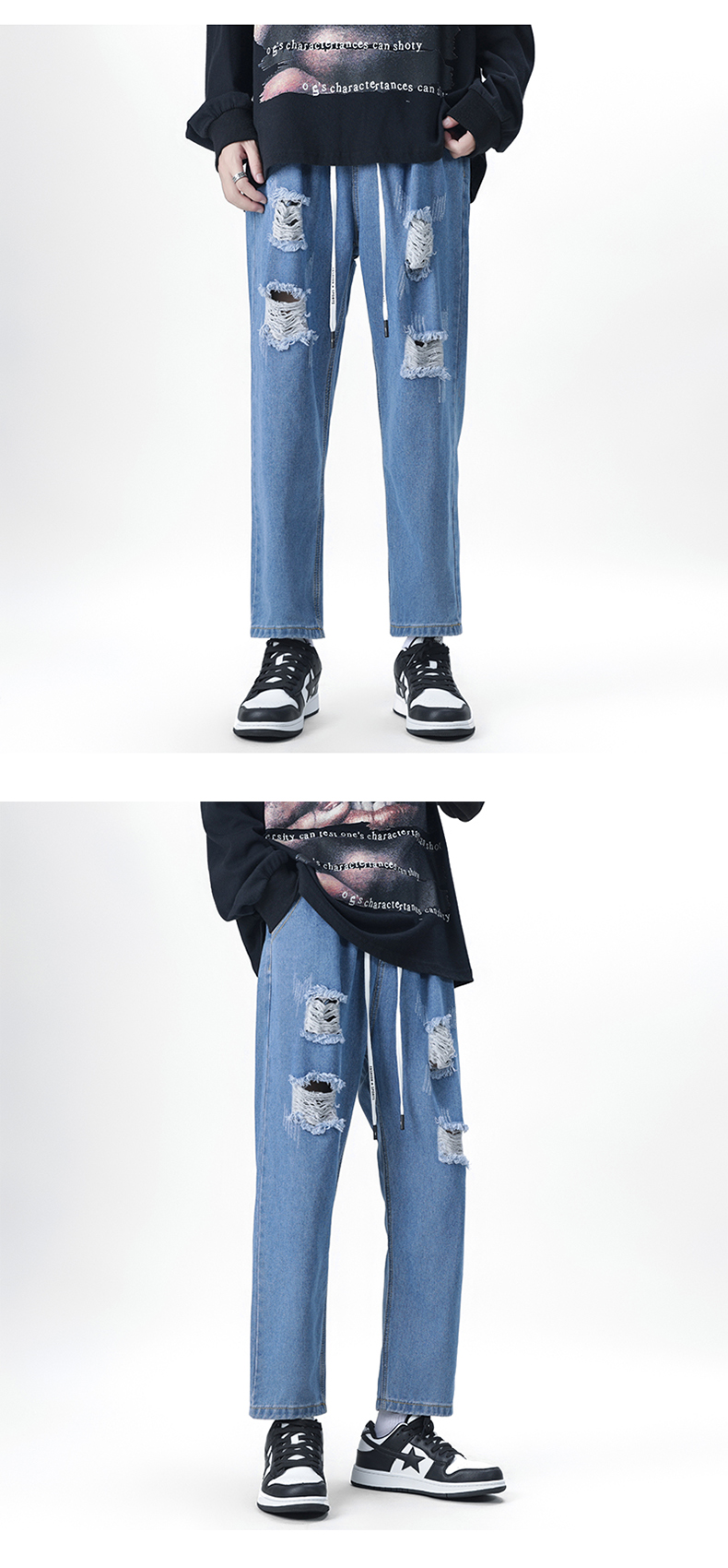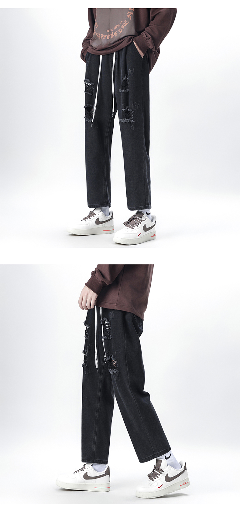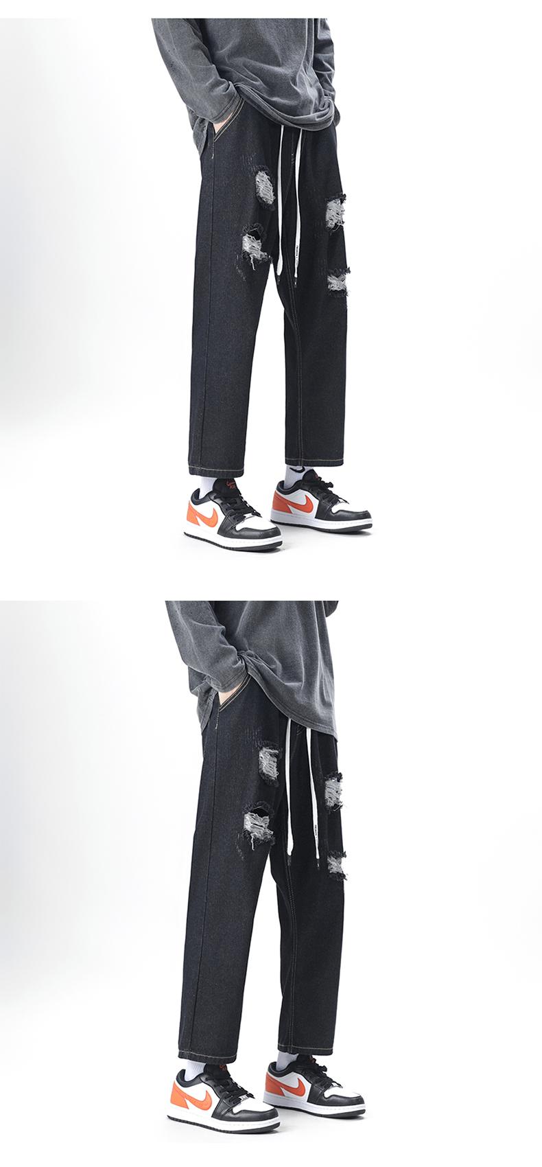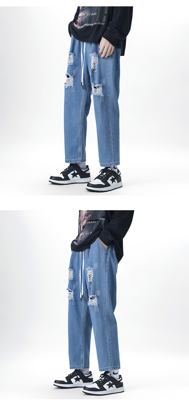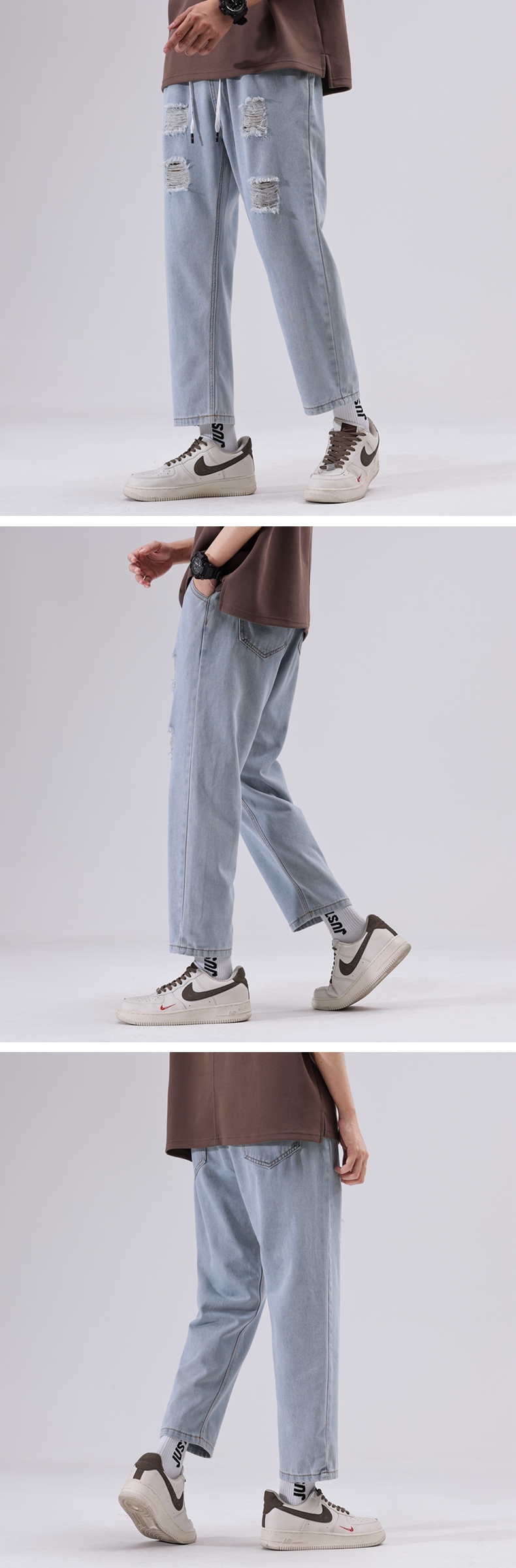 【DDJ】大依优型大码松紧腰潮款直筒牛仔裤九分裤男舒适休闲简约百搭加肥加大男装