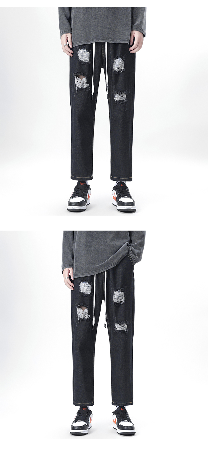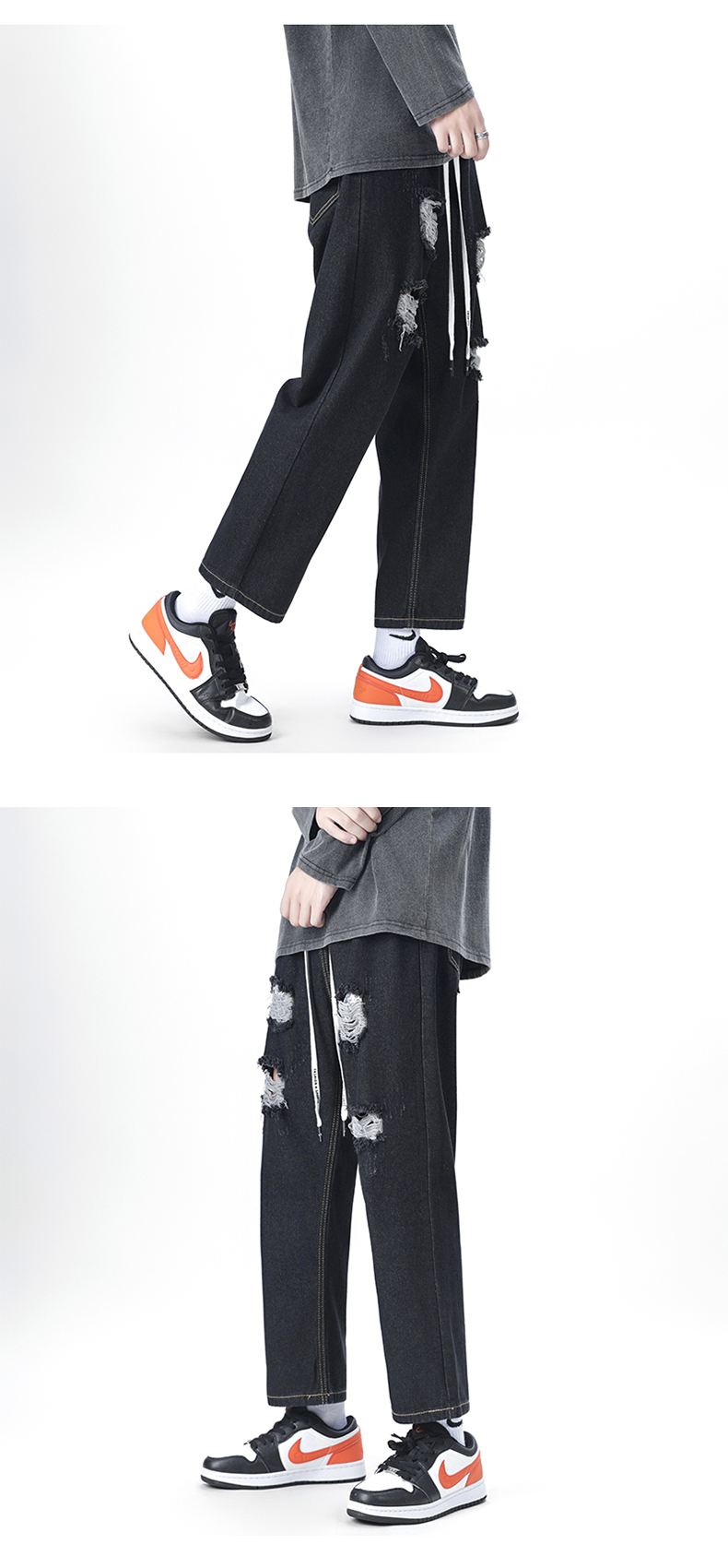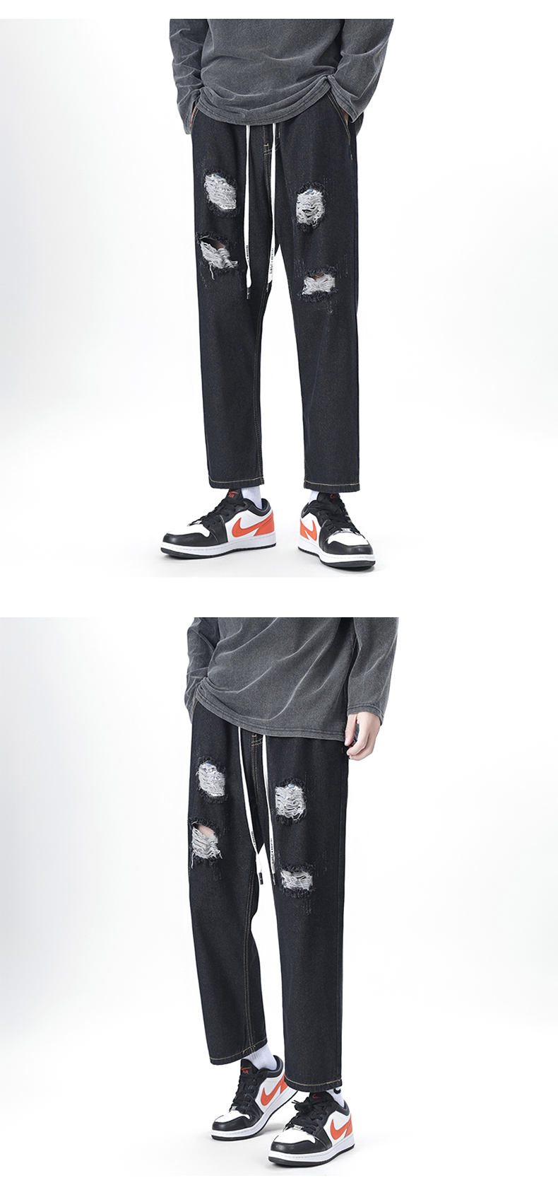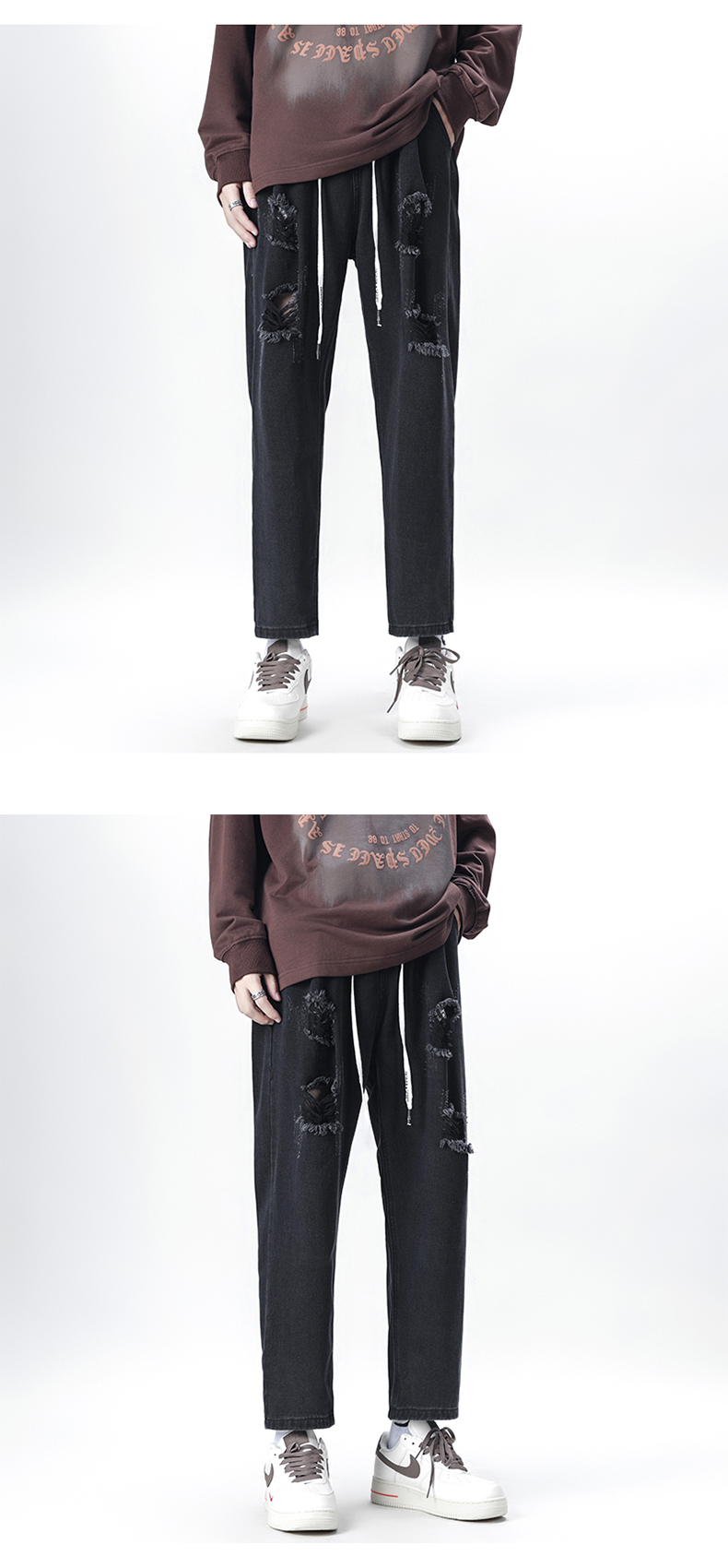 【DDJ】大依优型大码松紧腰潮款直筒牛仔裤九分裤男舒适休闲简约百搭加肥加大男装