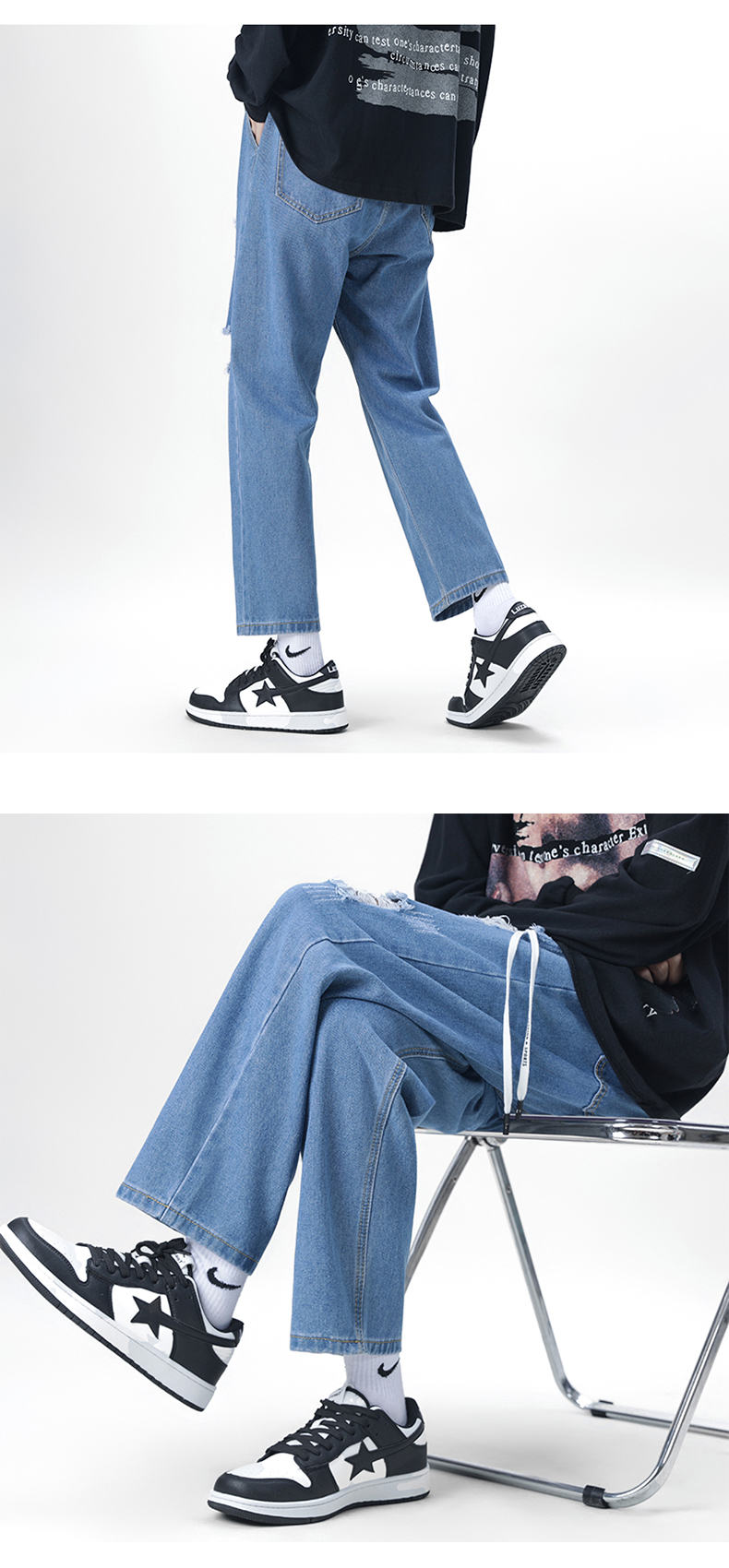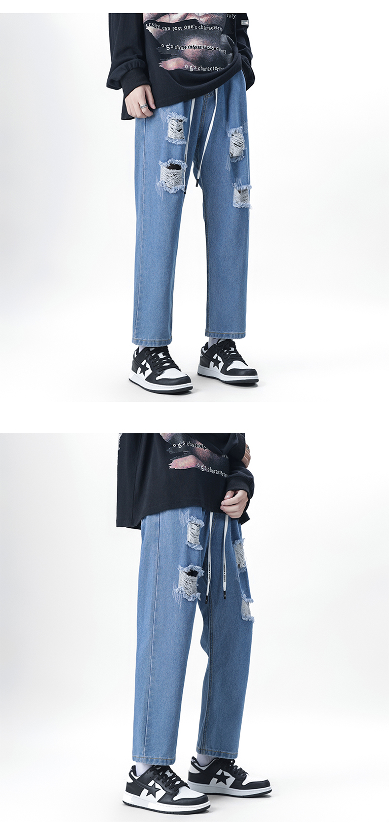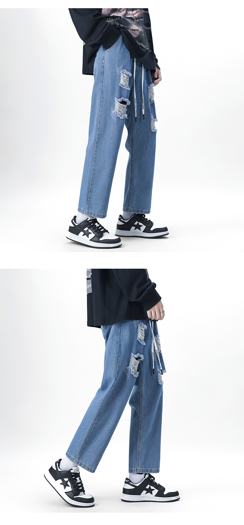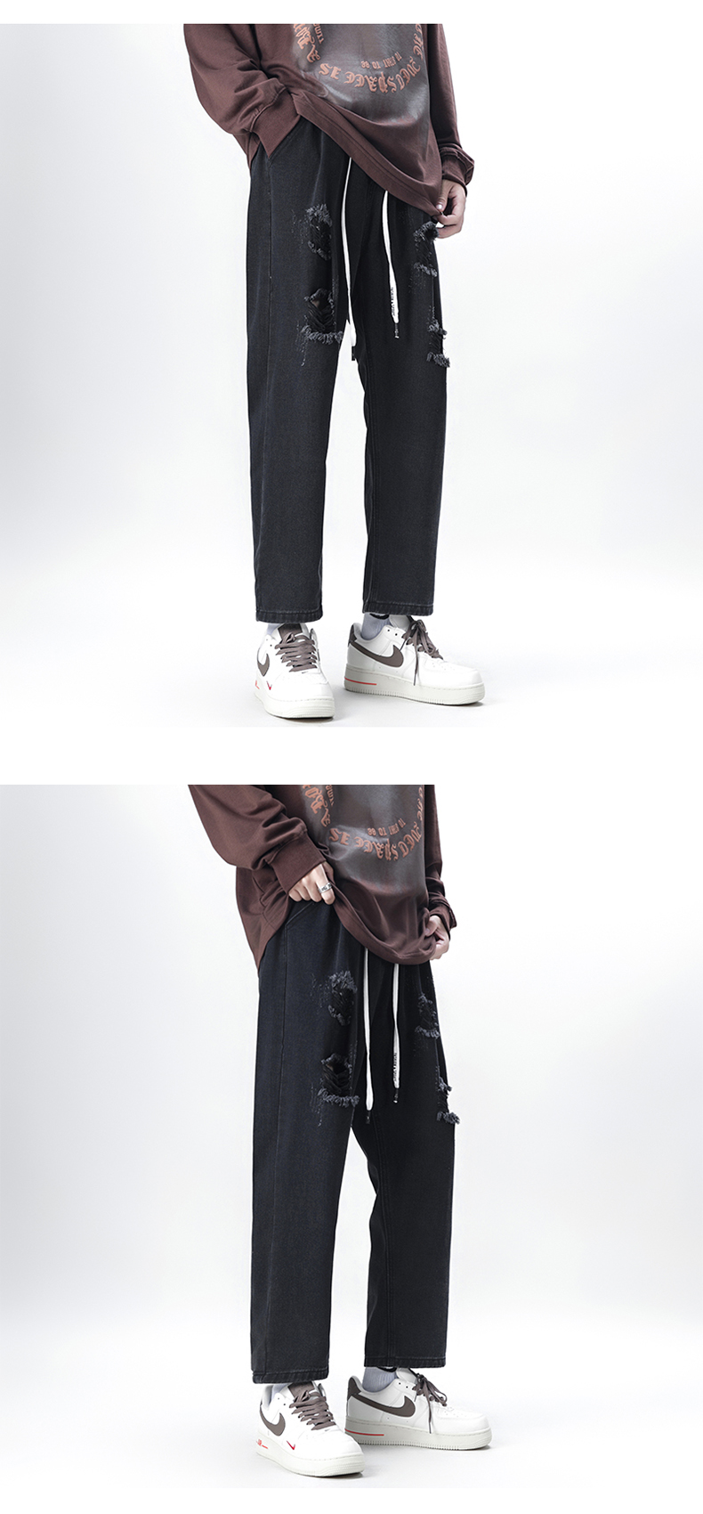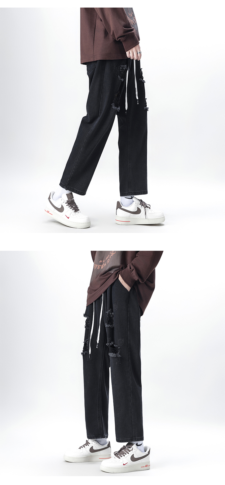 【DDJ】大依优型大码松紧腰潮款直筒牛仔裤九分裤男舒适休闲简约百搭加肥加大男装