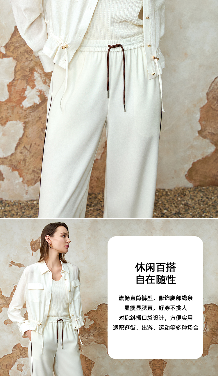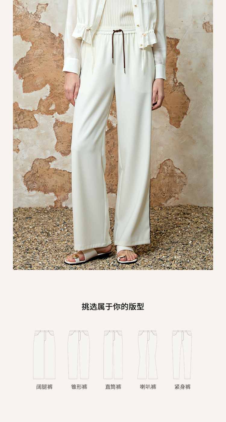 EITIE爱特爱夏季新款舒适垂坠显瘦松紧高腰休闲裤8205903