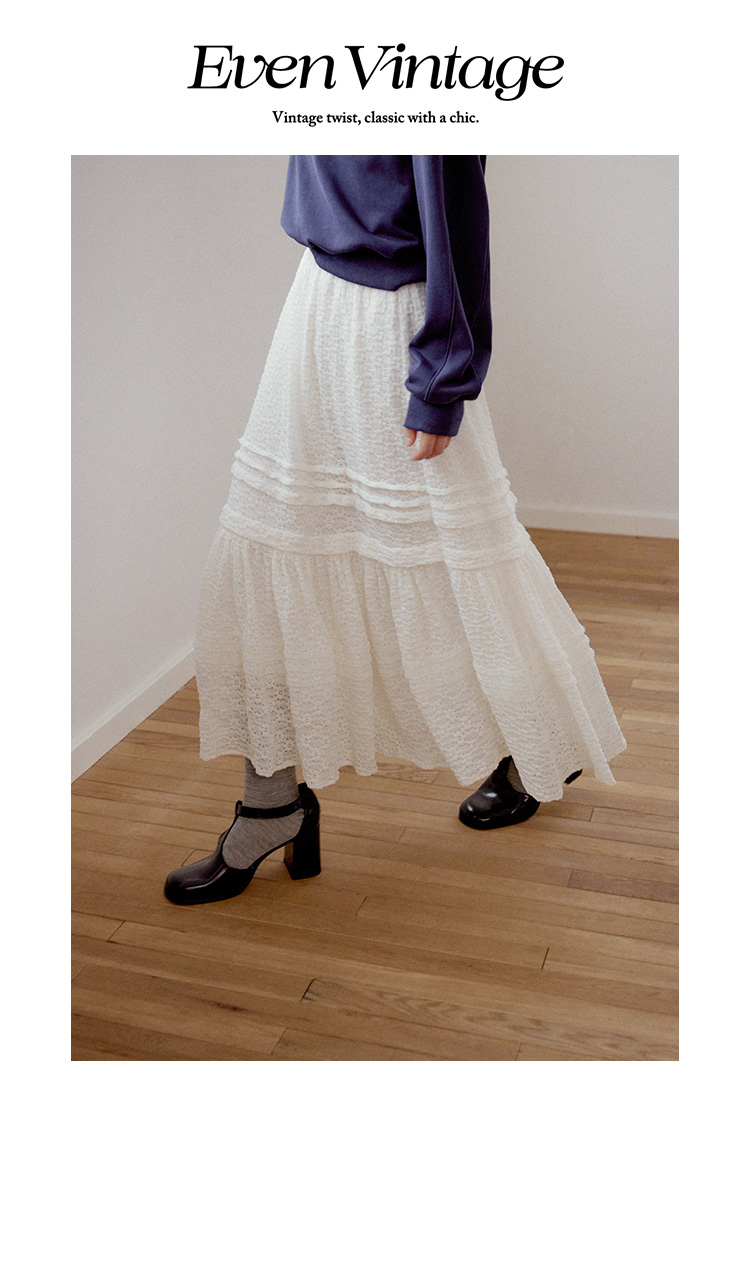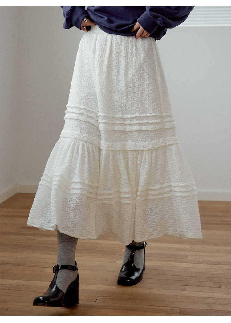 【现货】Even Vintage|浪漫法式风 泡泡提花立体编制工艺温柔百搭白色半裙