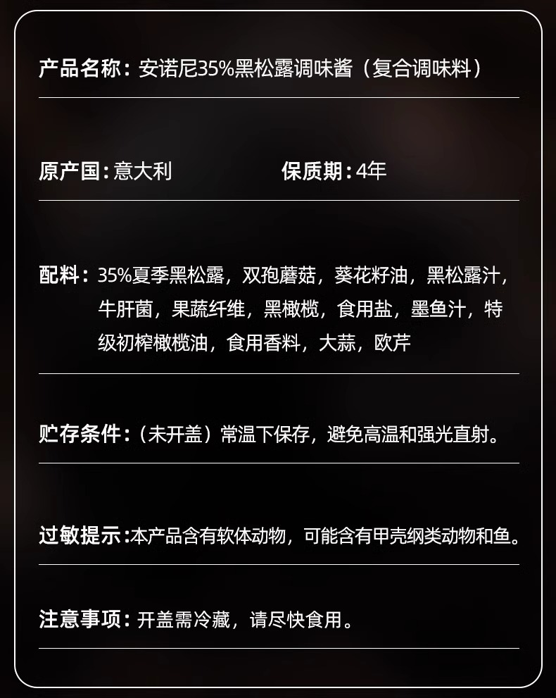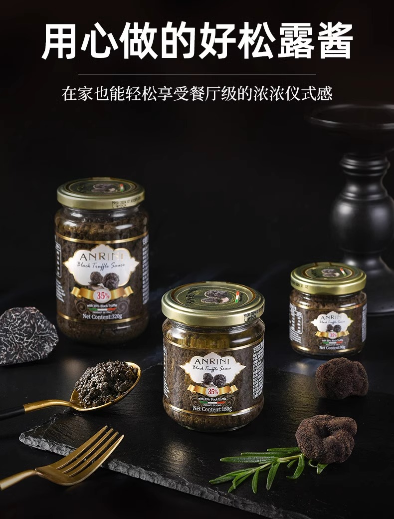 安诺尼35%黑松露酱意大利进口黑菌酱意面披萨牛排商用西餐调味酱
