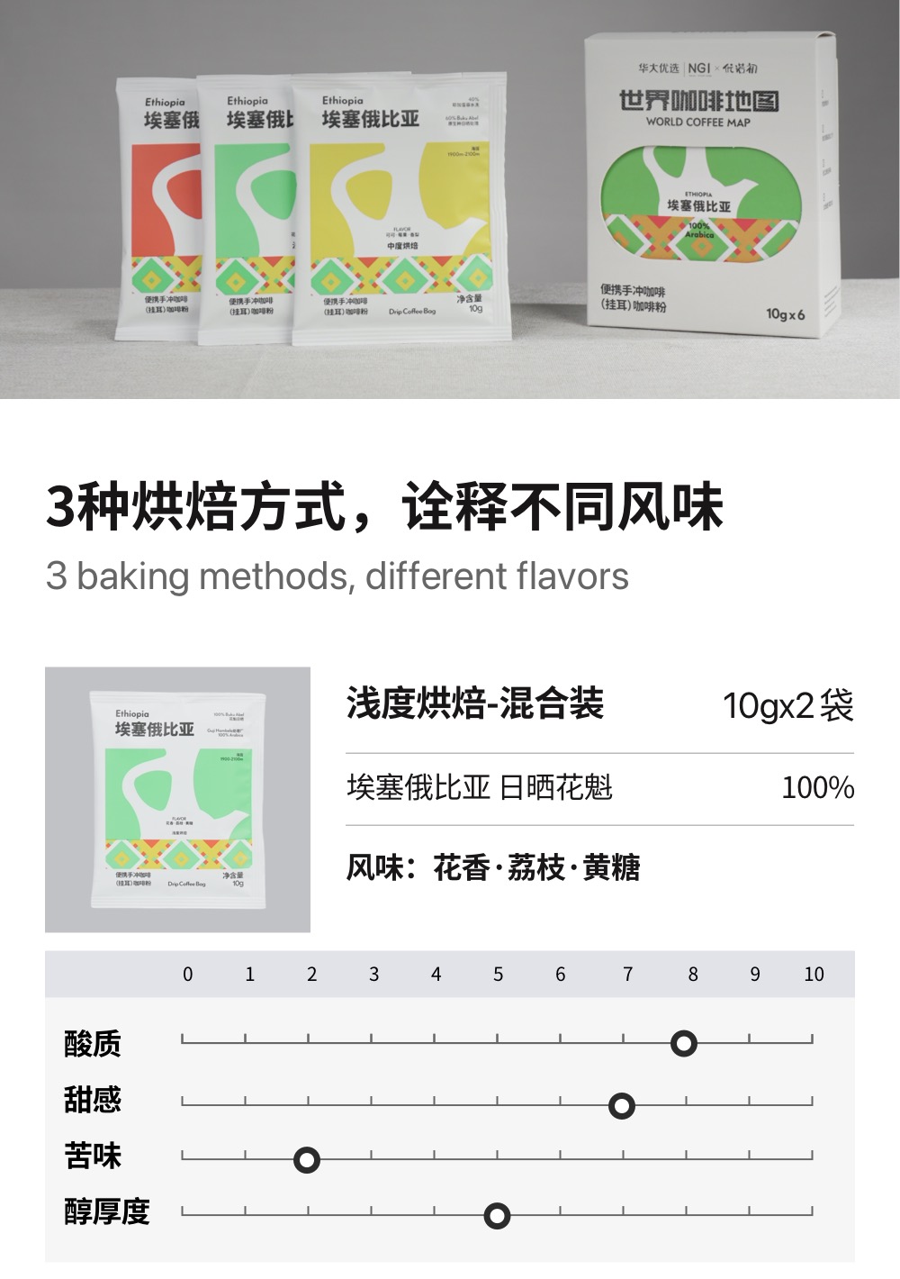 【混合装挂耳咖啡】优诺初华大优选埃塞俄比亚单品挂耳咖啡60g 6袋3种混合口味 热卖款