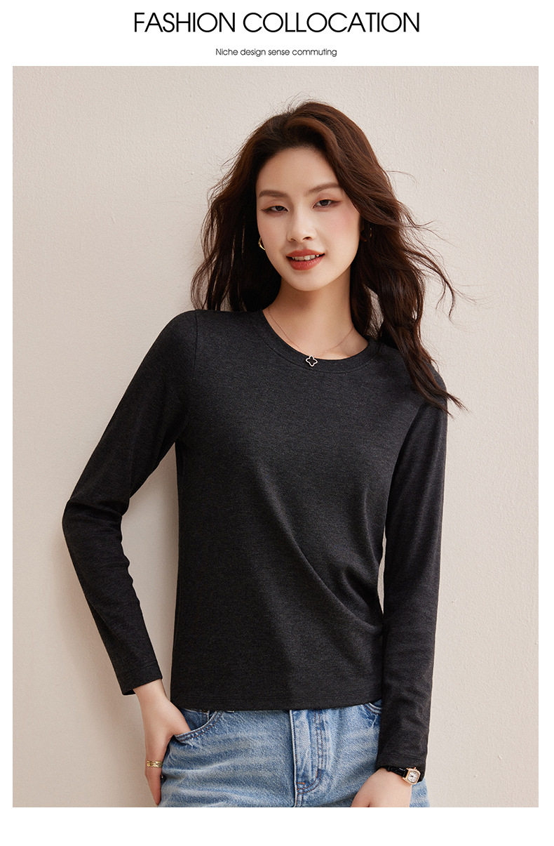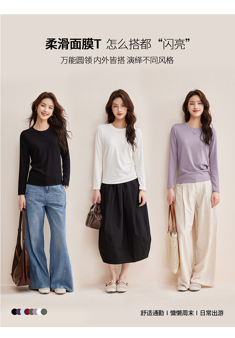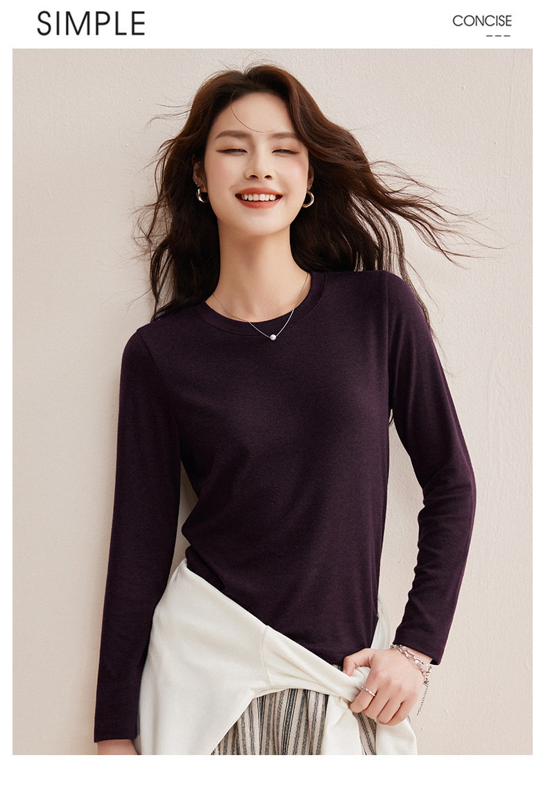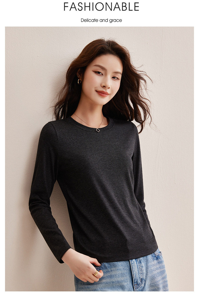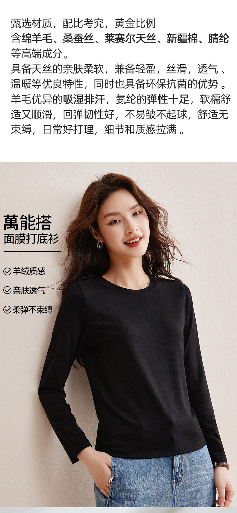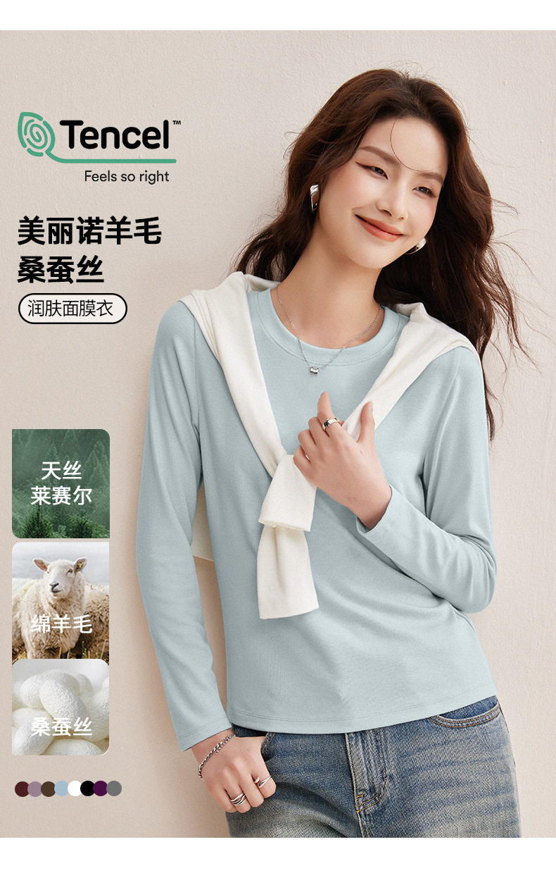 「自j」全新升级【铂金会员128/天猫169/差价41】(03230)洛诗琳天丝羊毛打底衫2026春季新款圆领纯色长袖T恤