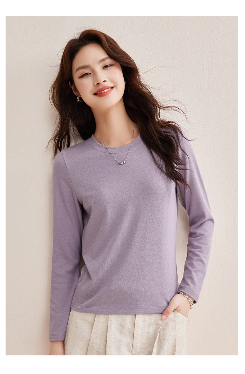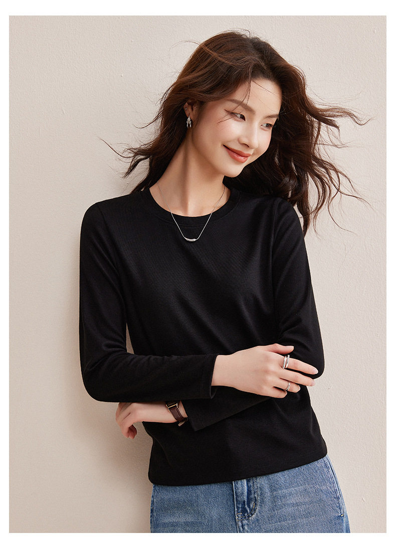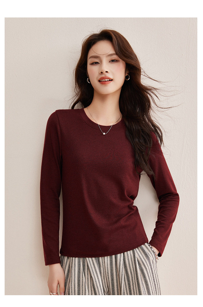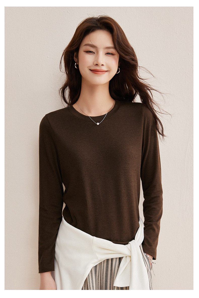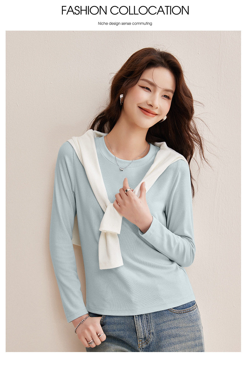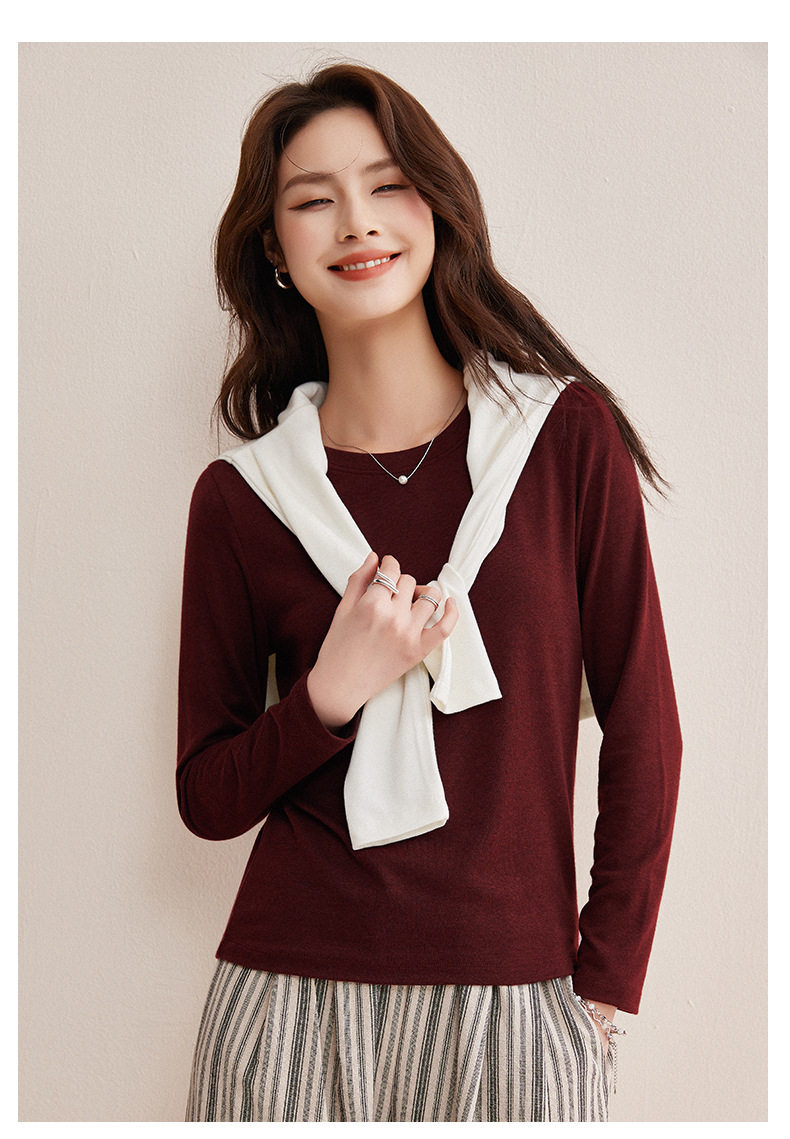 「自j」全新升级【铂金会员128/天猫169/差价41】(03230)洛诗琳天丝羊毛打底衫2026春季新款圆领纯色长袖T恤