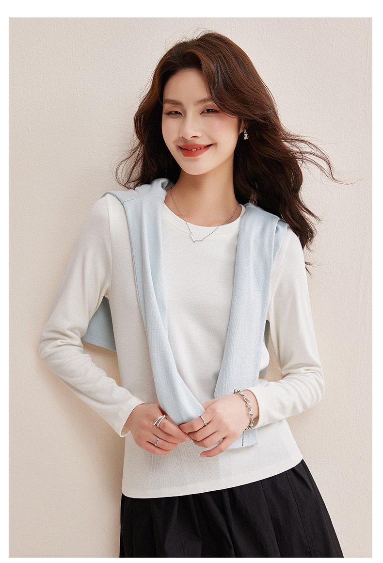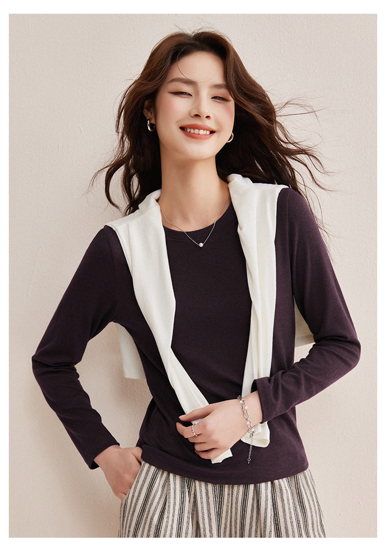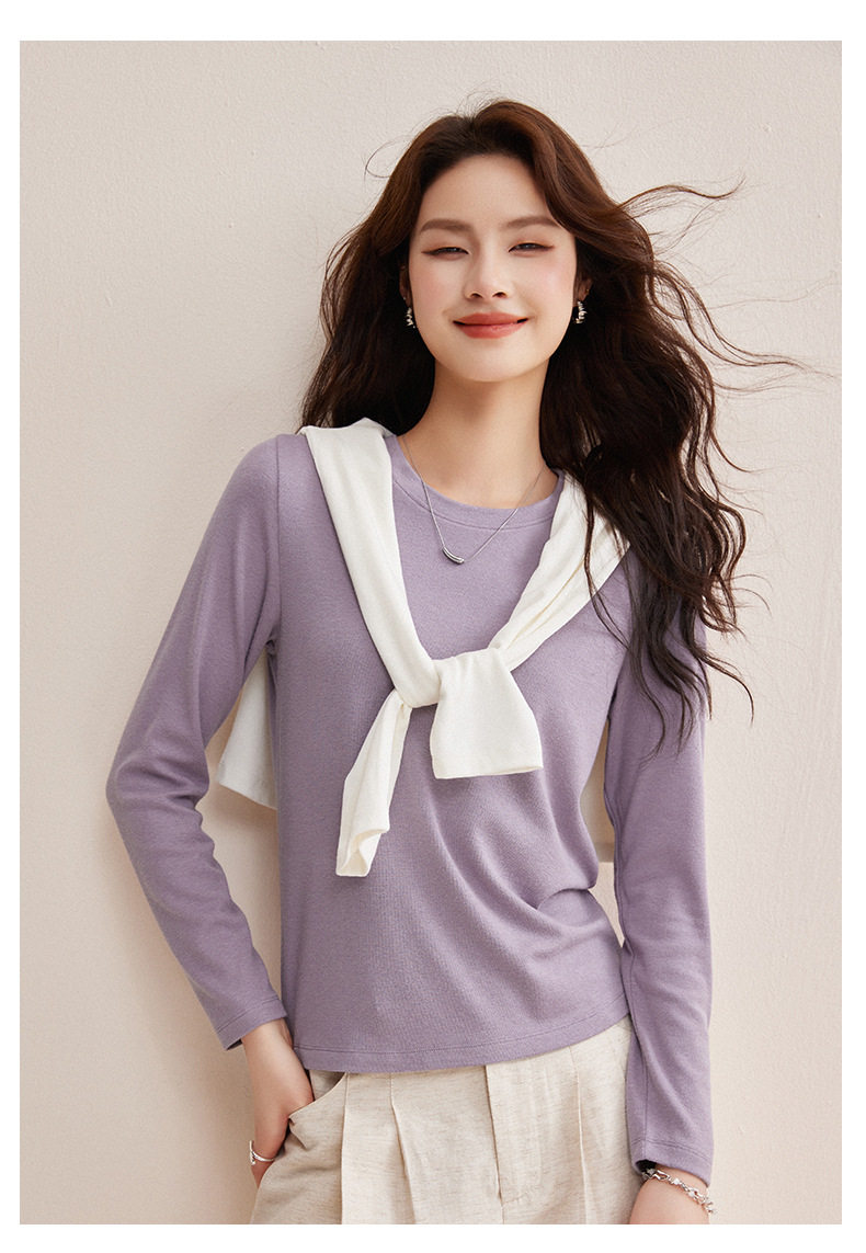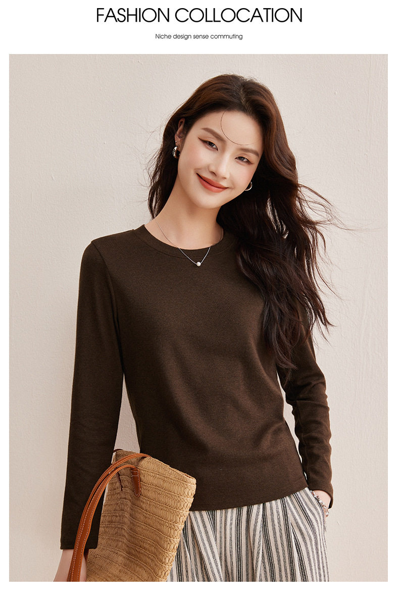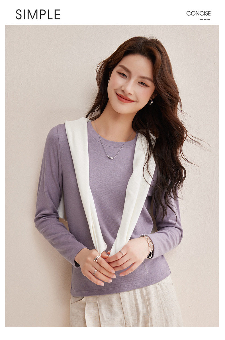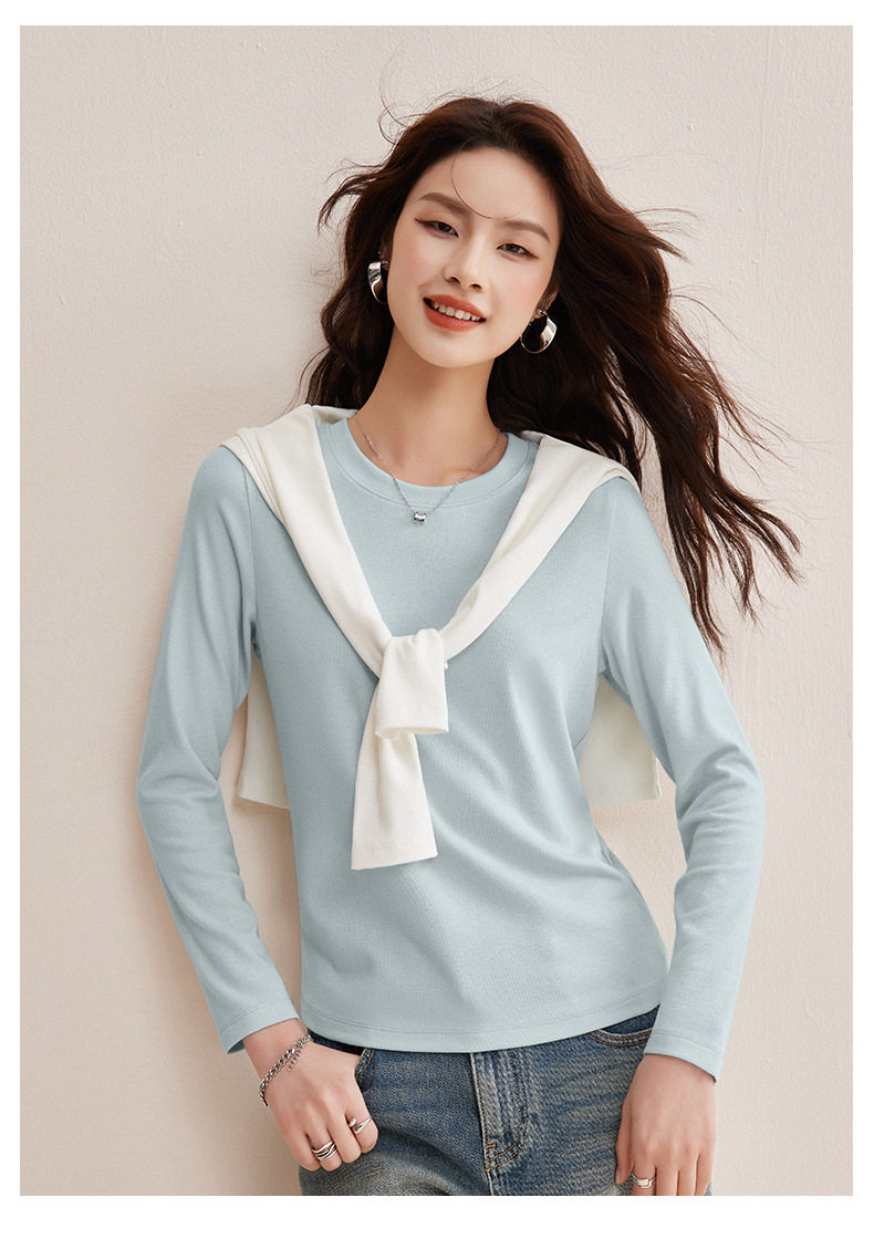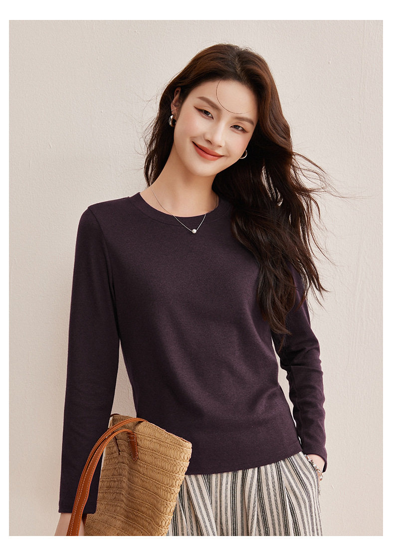 「自j」全新升级【铂金会员128/天猫169/差价41】(03230)洛诗琳天丝羊毛打底衫2026春季新款圆领纯色长袖T恤