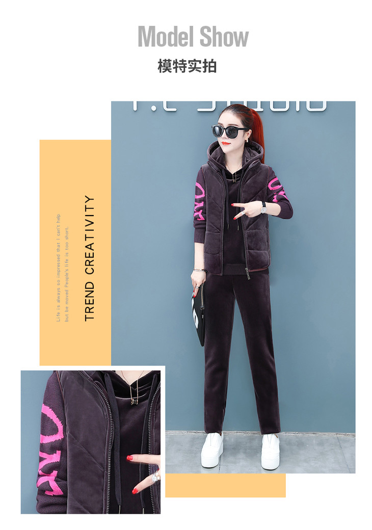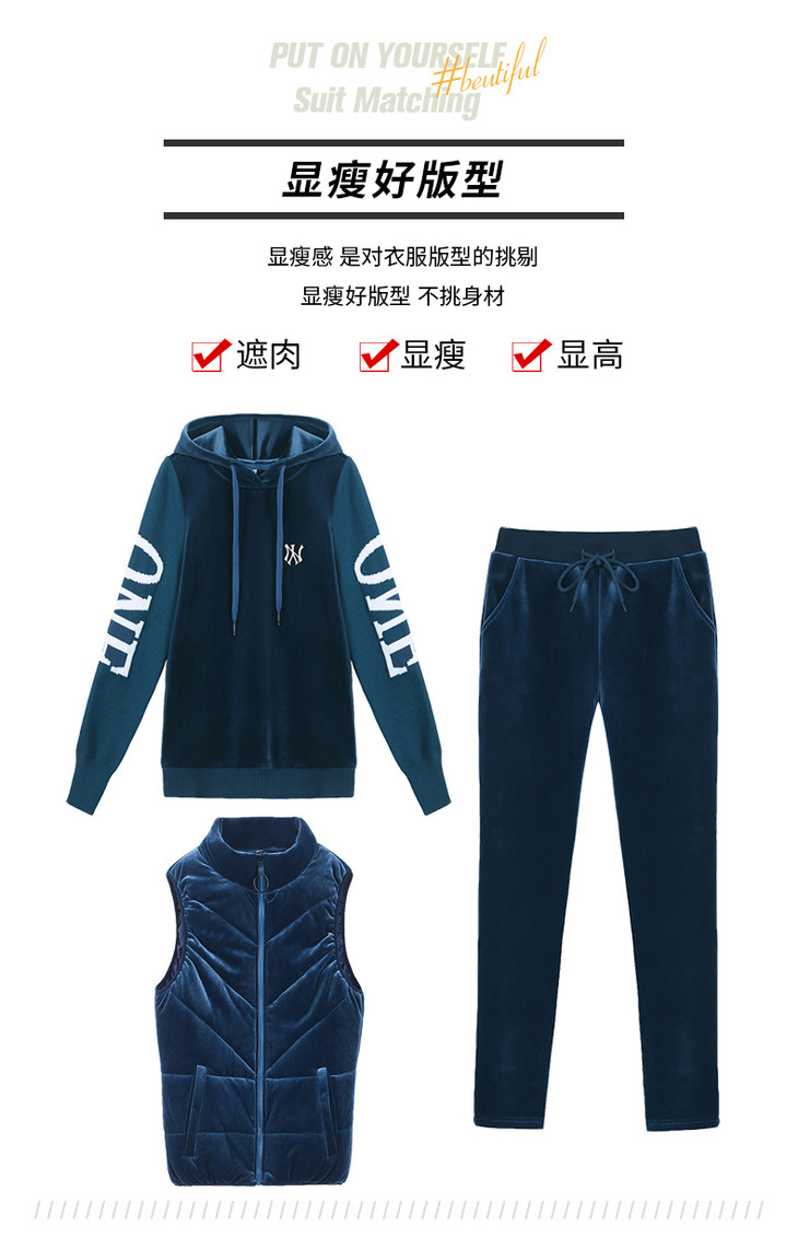 SP-LMS653701秋冬季新款时尚休闲加绒加厚运动服套装