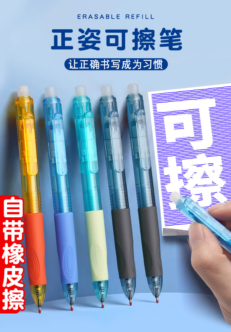 开学季【超值赠送橡皮和40支笔芯】学生正姿按动热可擦笔可擦中性笔芯小学生专用三年级黑色晶蓝摩易擦笔。ra