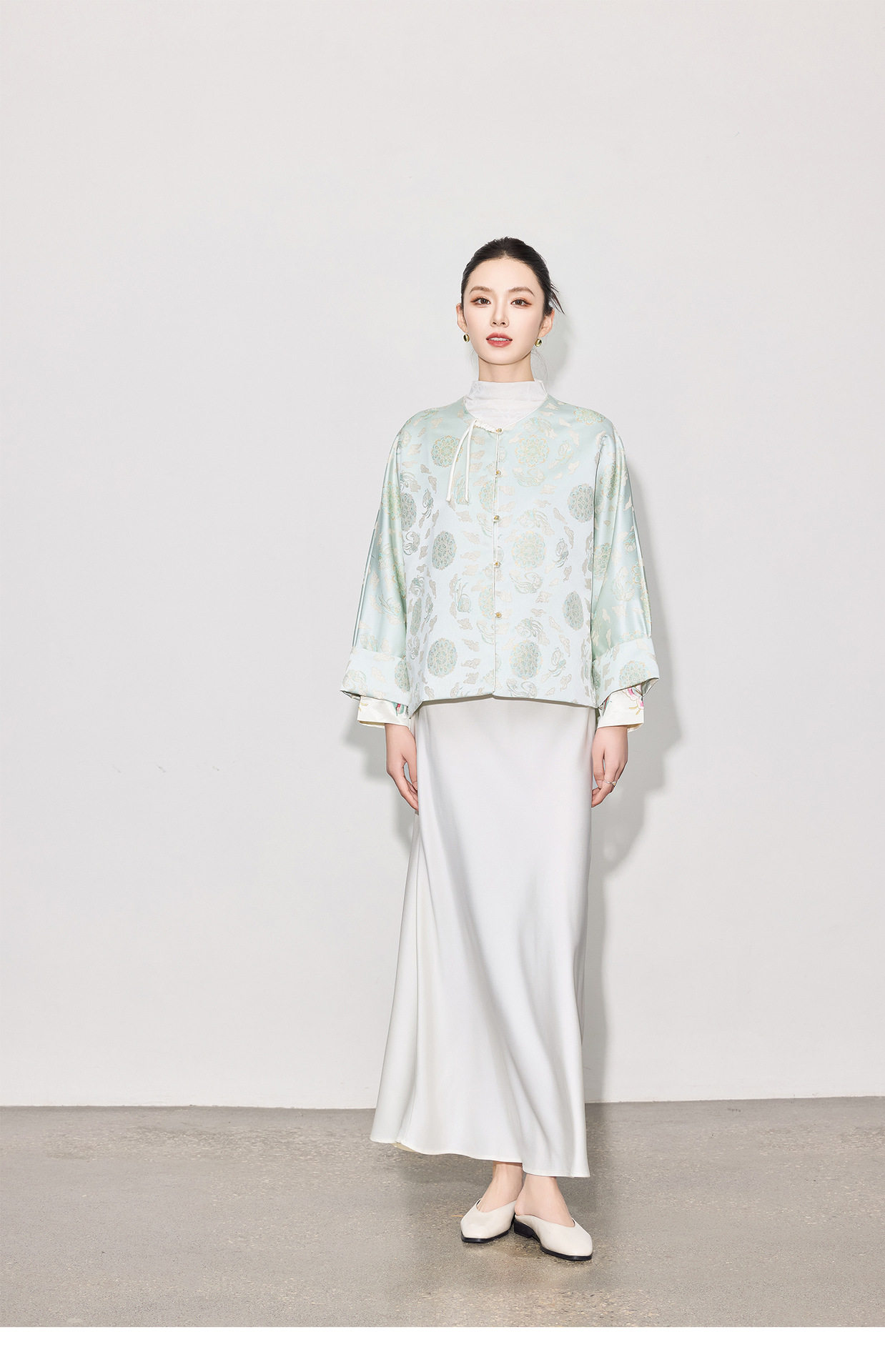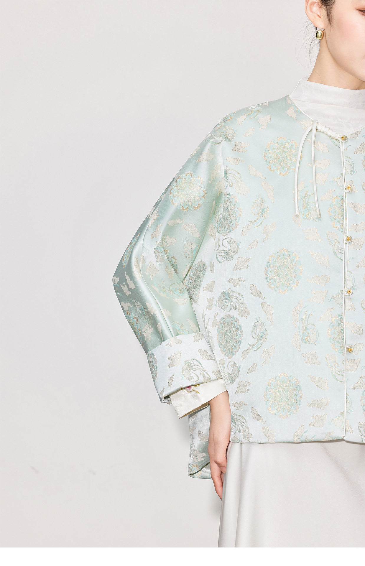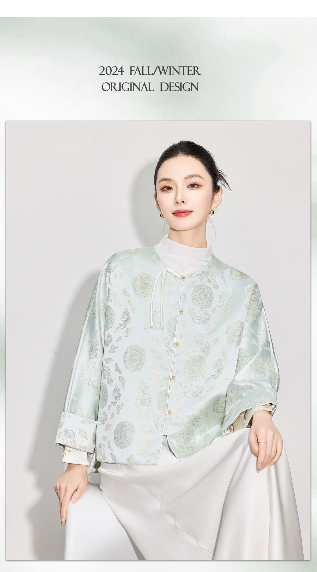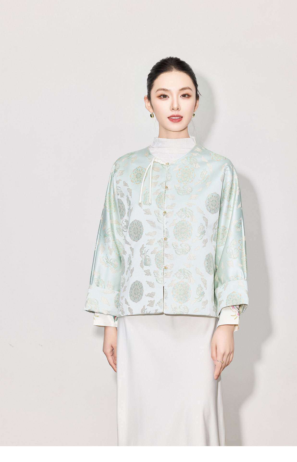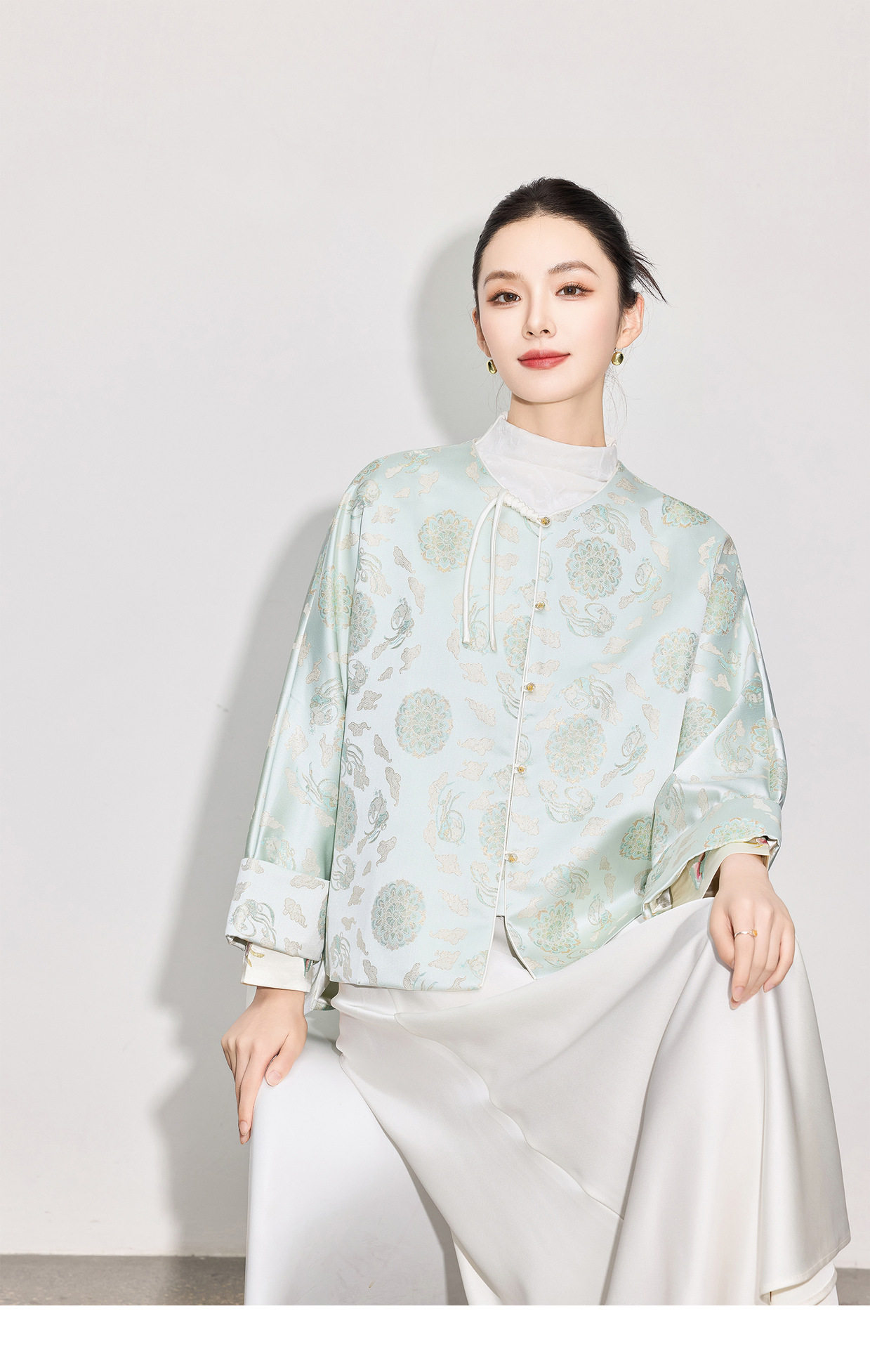 「自」全新升级【铂金会员330/天猫439/差价109】(13407)洛诗琳新中式提花盘扣外套女2026新款气质复古圆领国风上衣