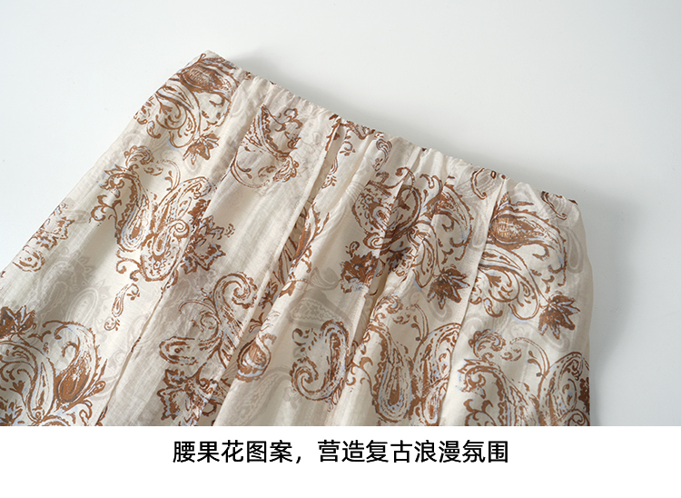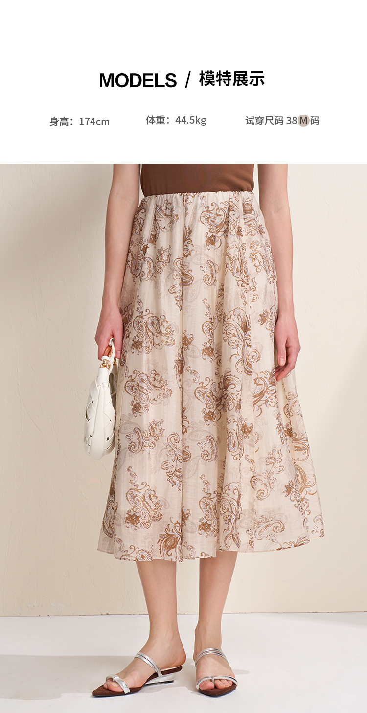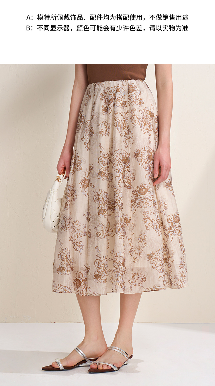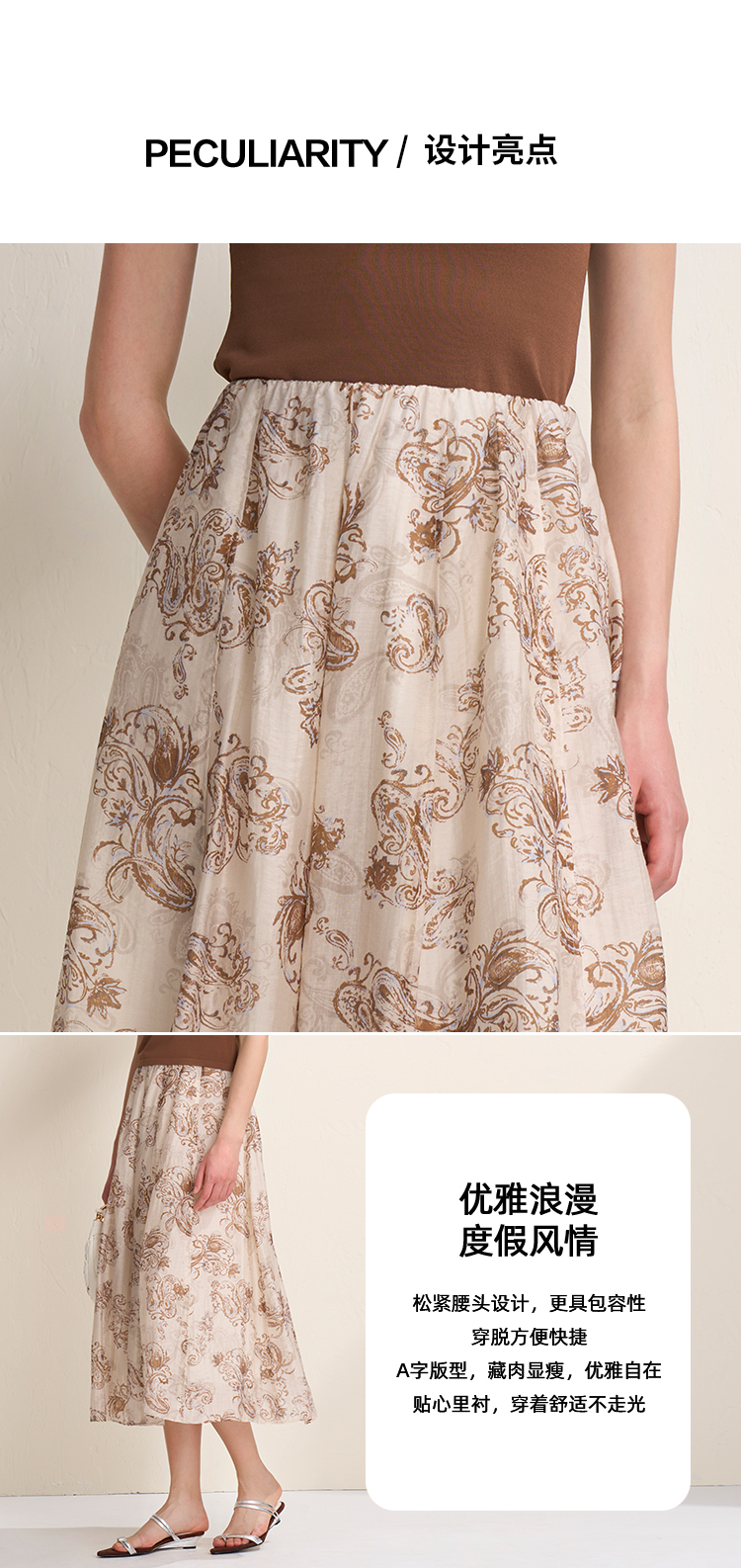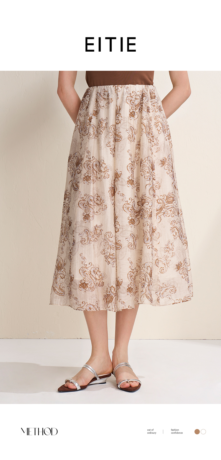 EITIE爱特爱复古褐色印花莱赛尔混纺A字松紧腰半身裙2026夏季新款B2606210