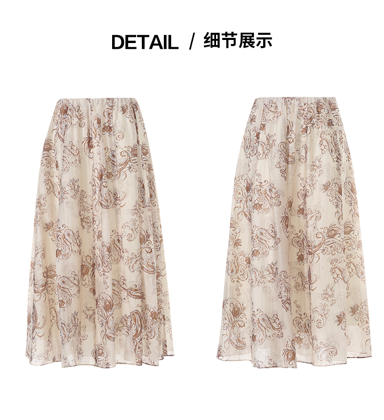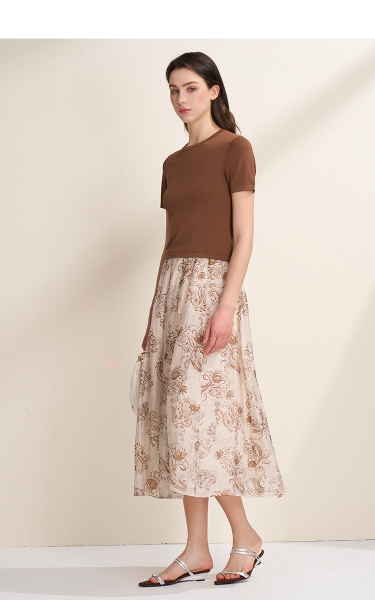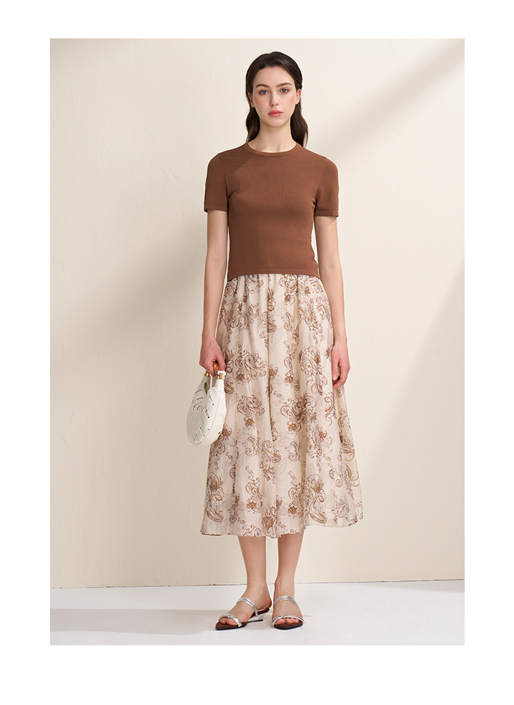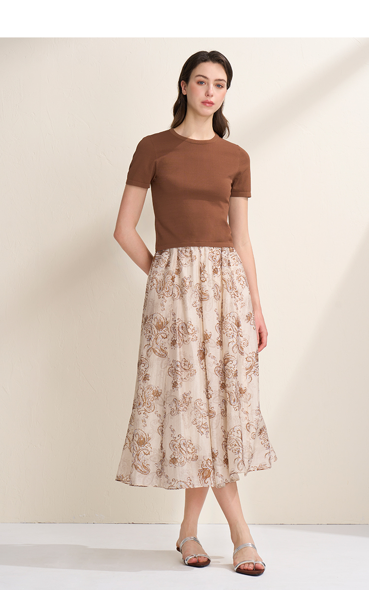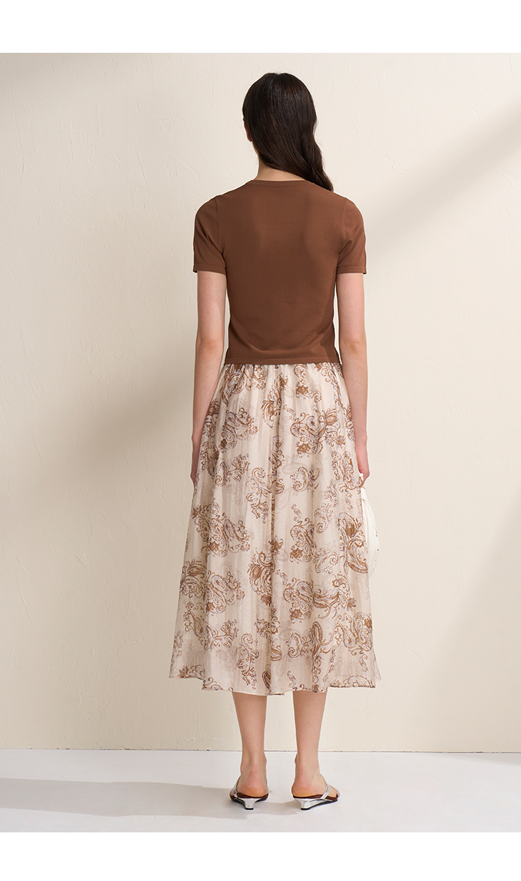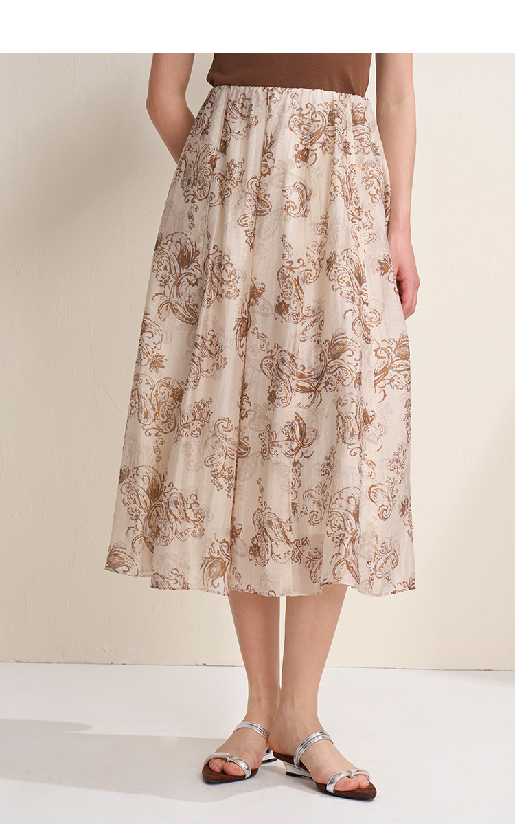 EITIE爱特爱复古褐色印花莱赛尔混纺A字松紧腰半身裙2026夏季新款B2606210